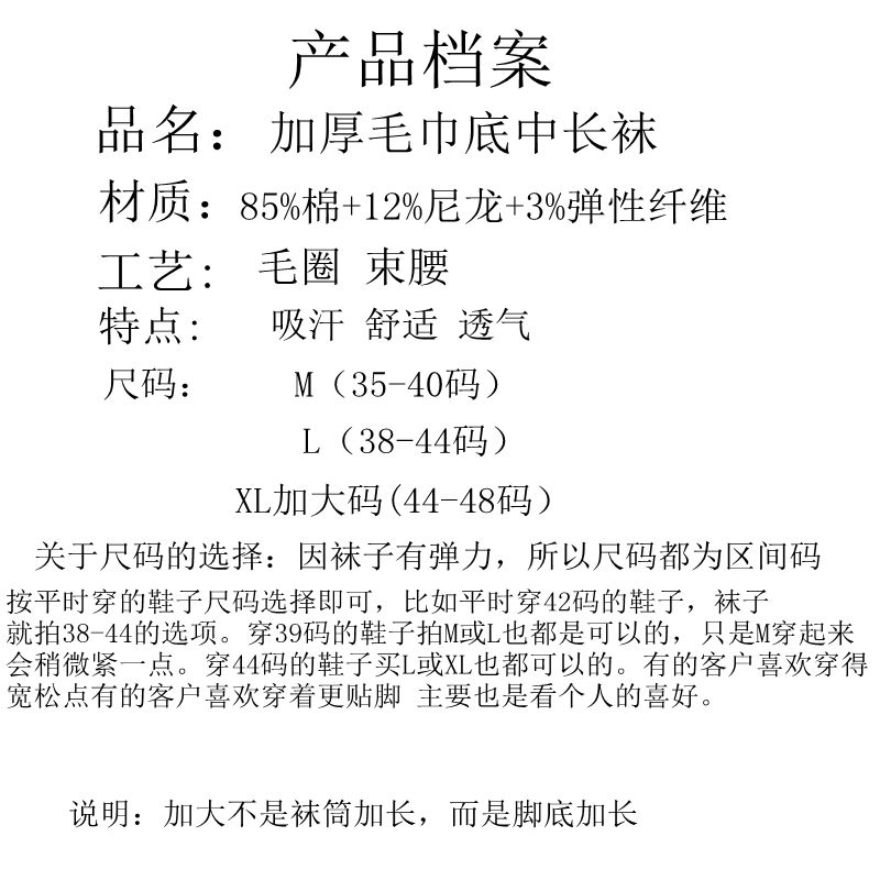 特別說明:寫毛巾底的襪子是底部加厚,襪子底部比較厚,常規款爲正常棉襪厚度的襪子,底部不是毛圈,比毛巾底的薄一些。