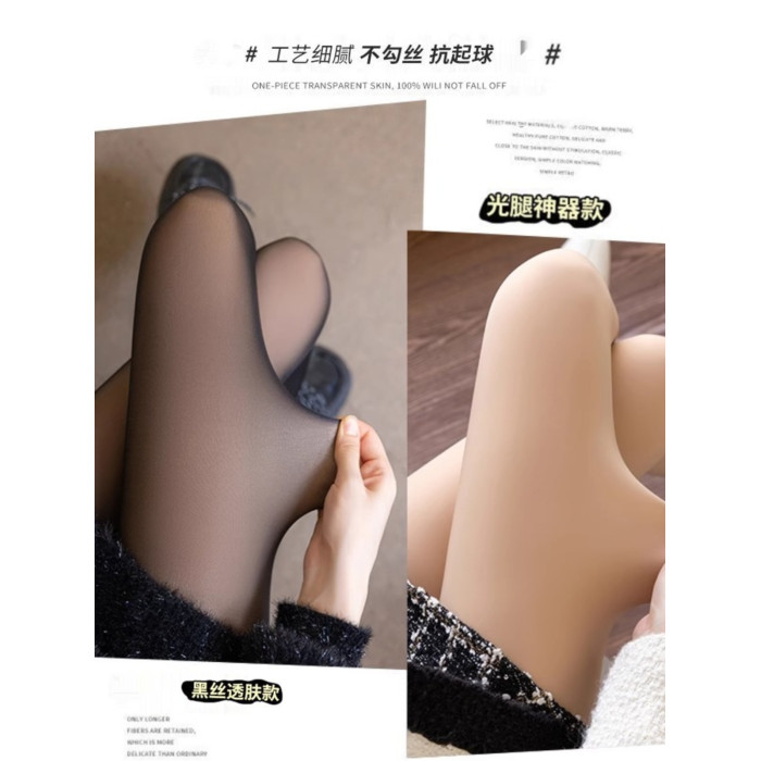 秋冬光腿神器單層一體打底褲黑透膚外穿加絨裸感自然黑絲連褲襪女