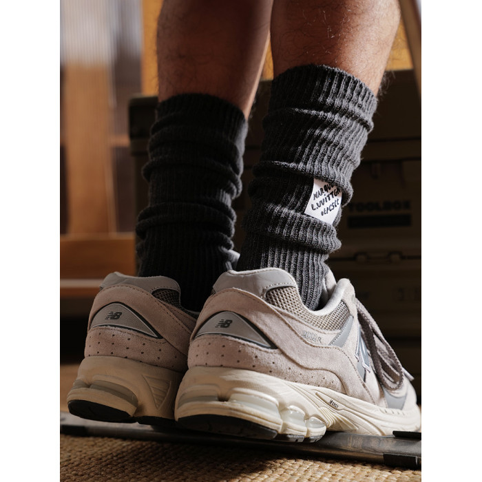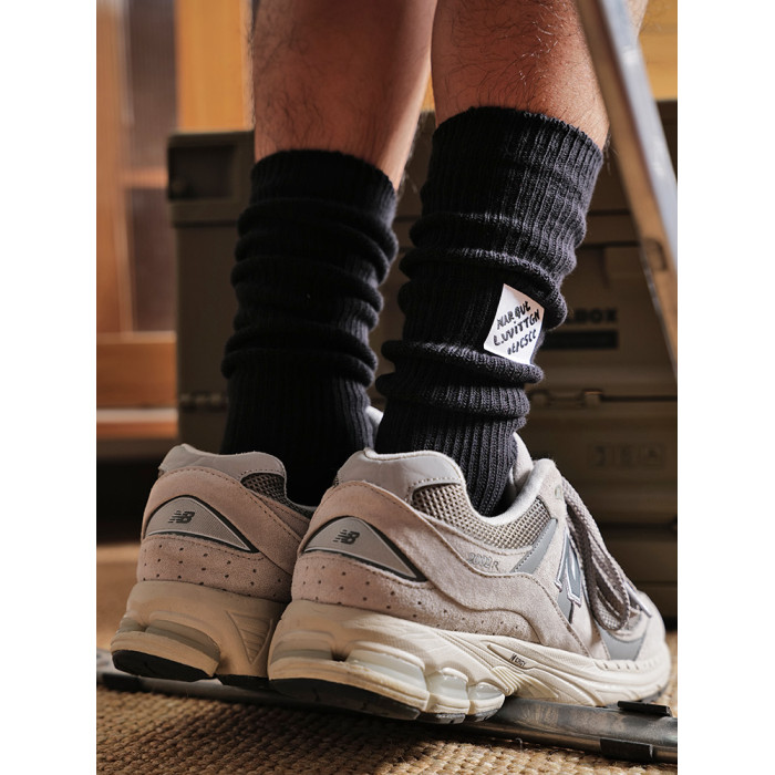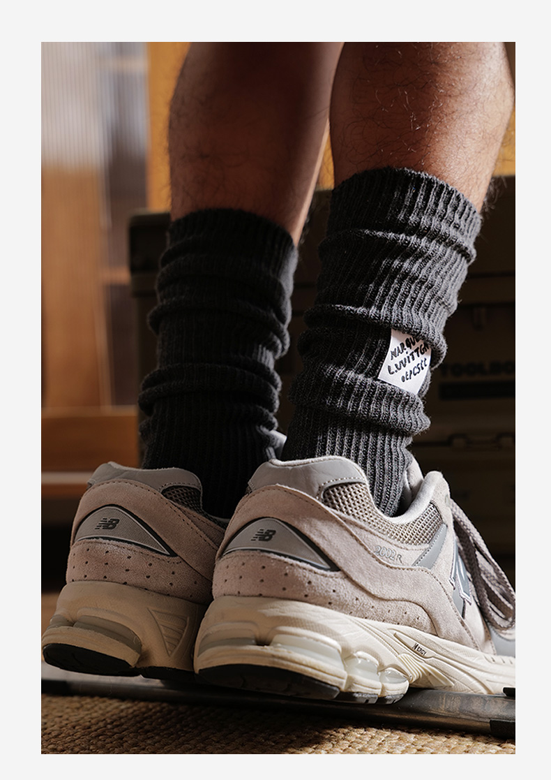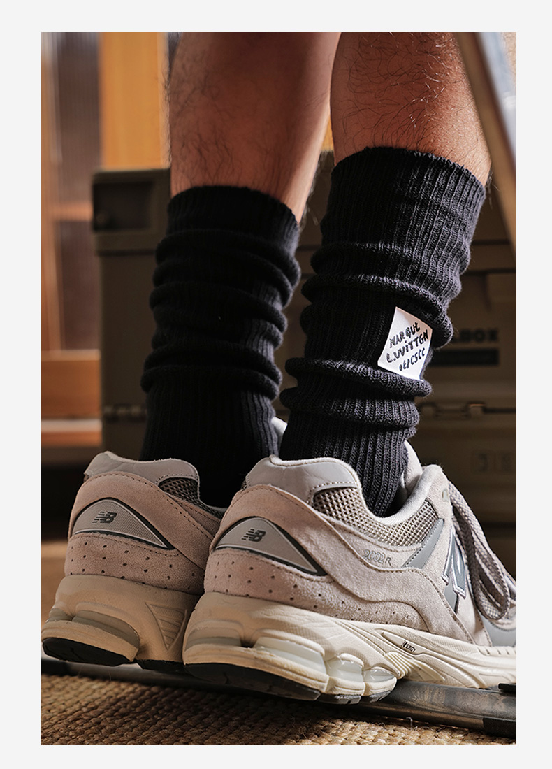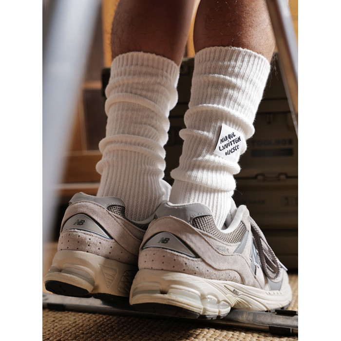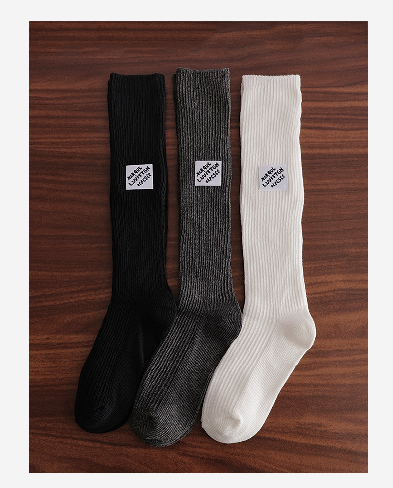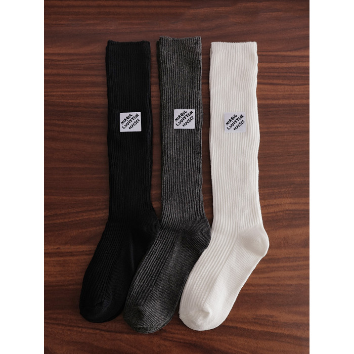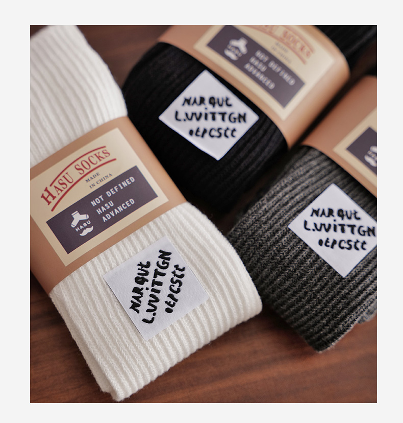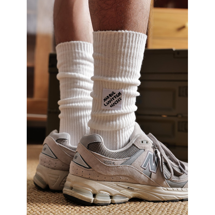 潮牌男士高幫高筒布標小腿襪個性雙針堆堆襪白色日系潮流長筒長襪