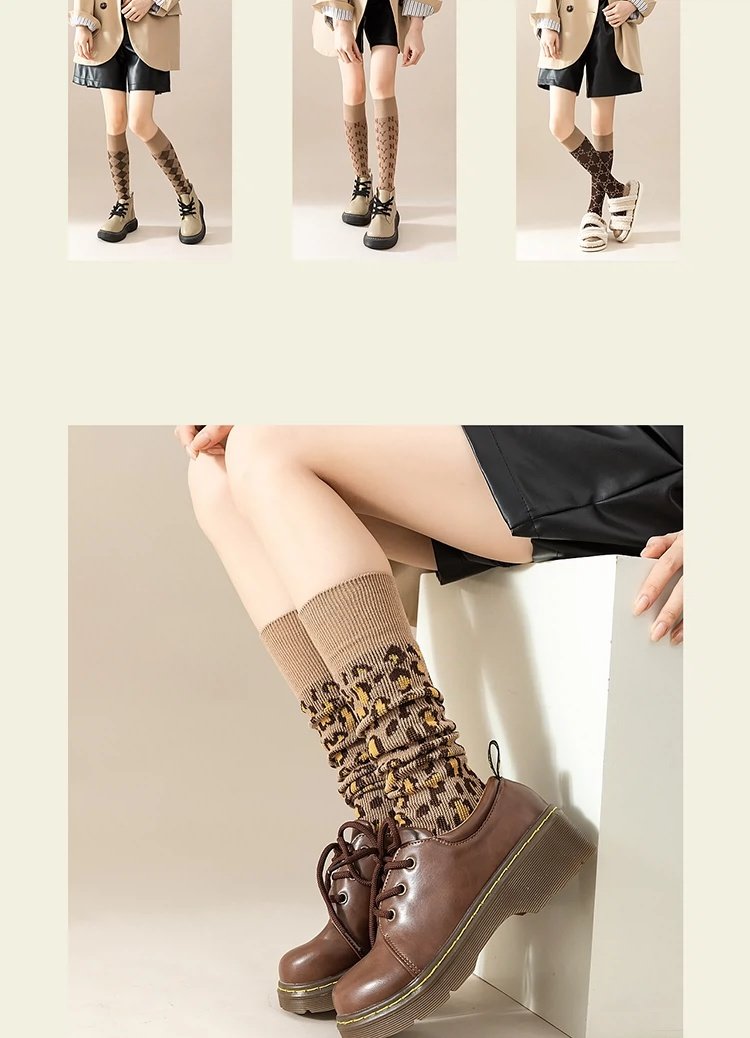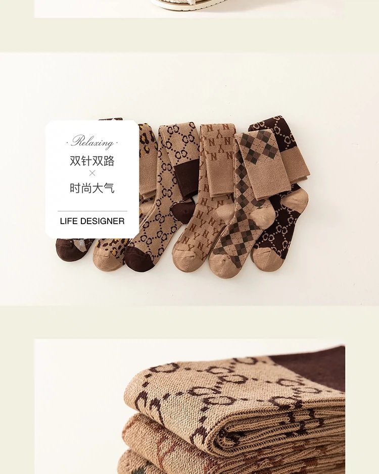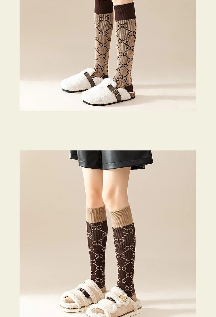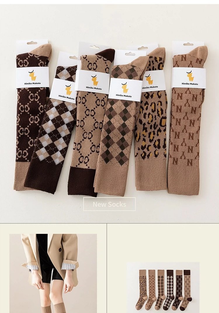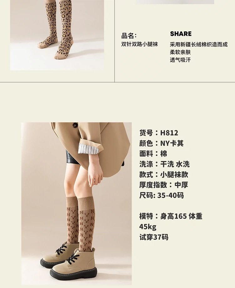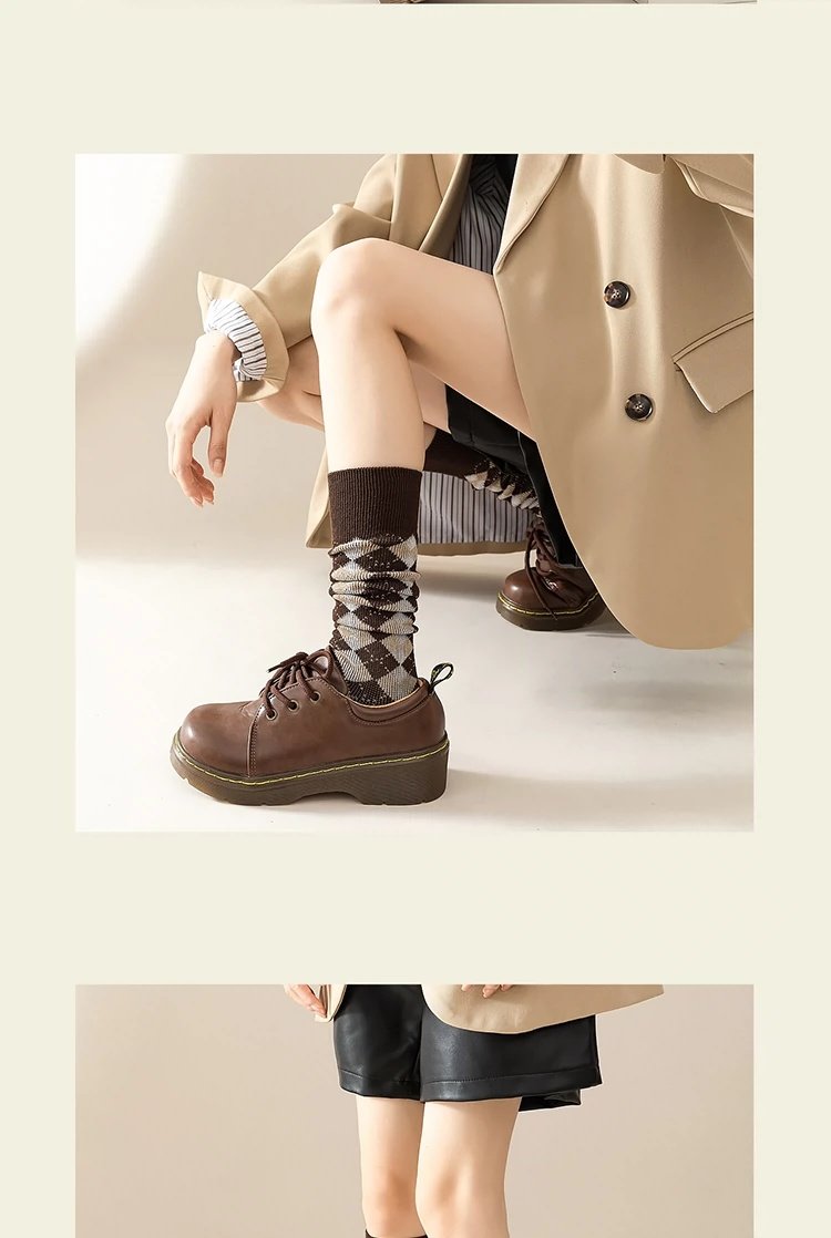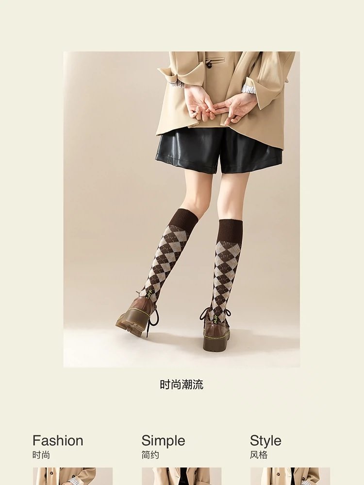 ins風網紅雙針小腿襪韓版菱格高筒襪字母及膝襪英倫襪子女潮秋冬