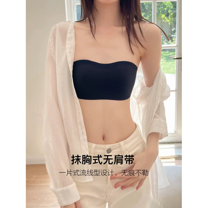 無肩帶內衣女外穿薄款透氣防滑無痕隱形抹胸收副乳裹胸文胸罩短襪