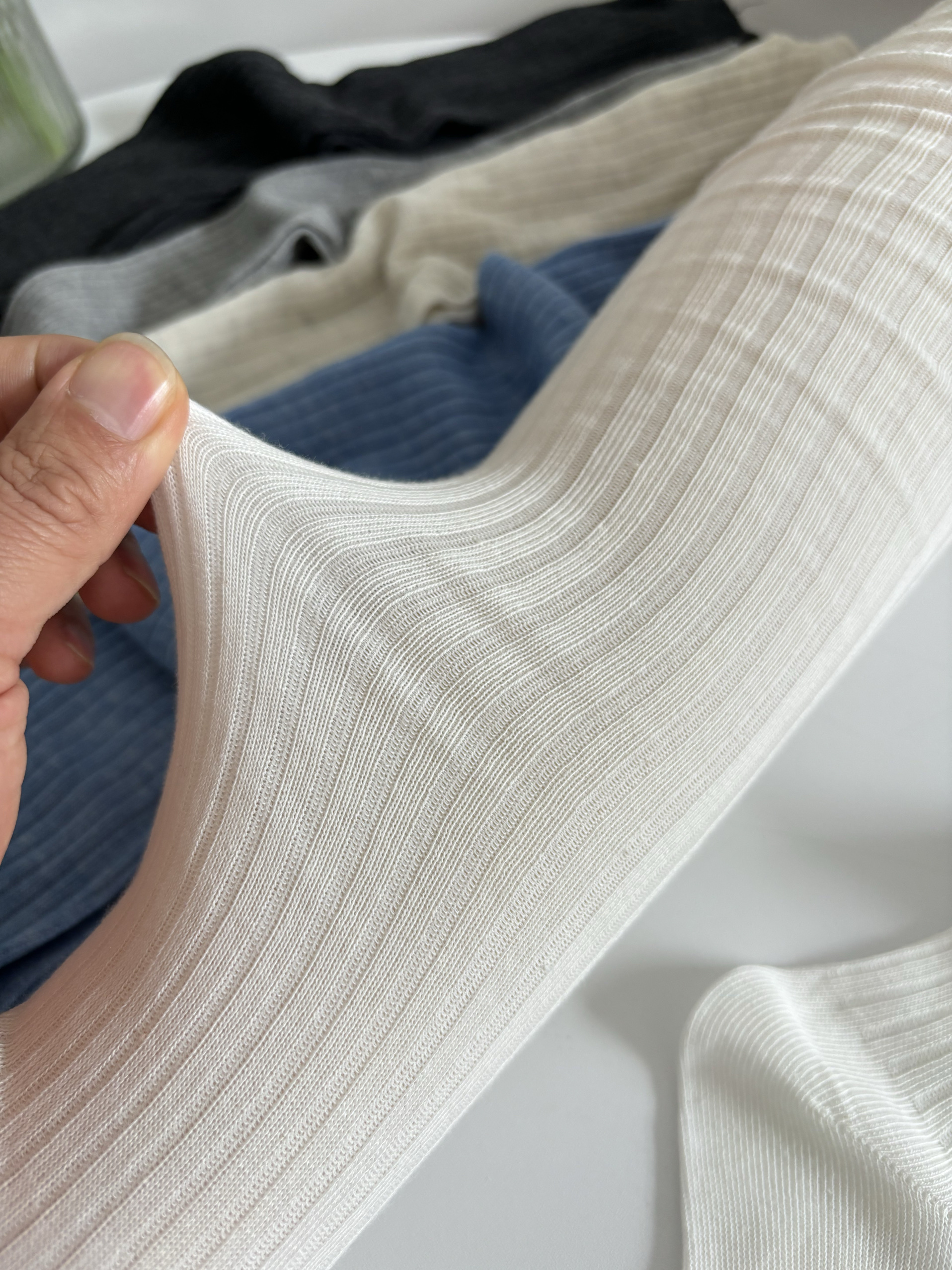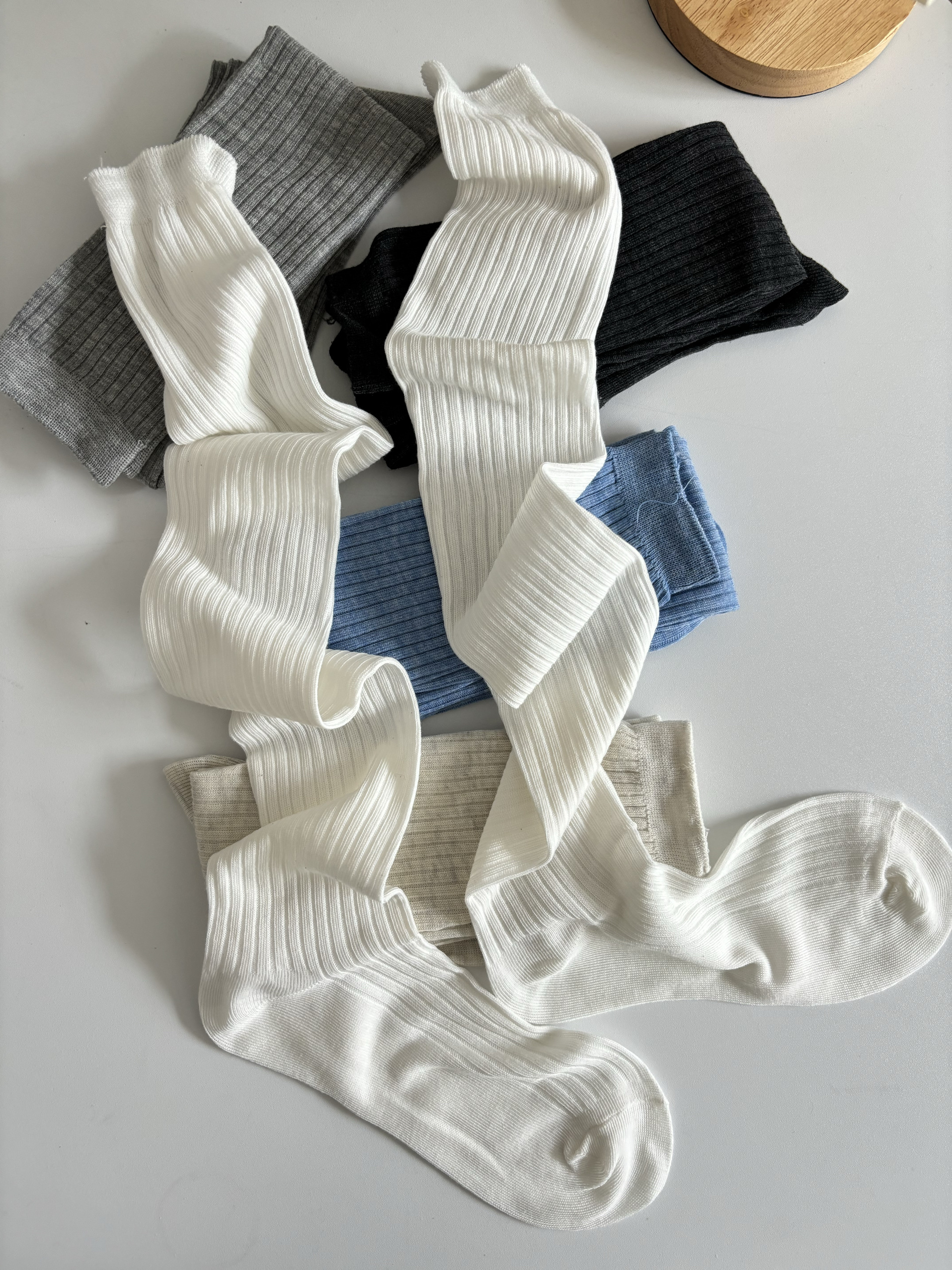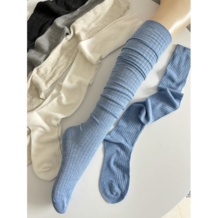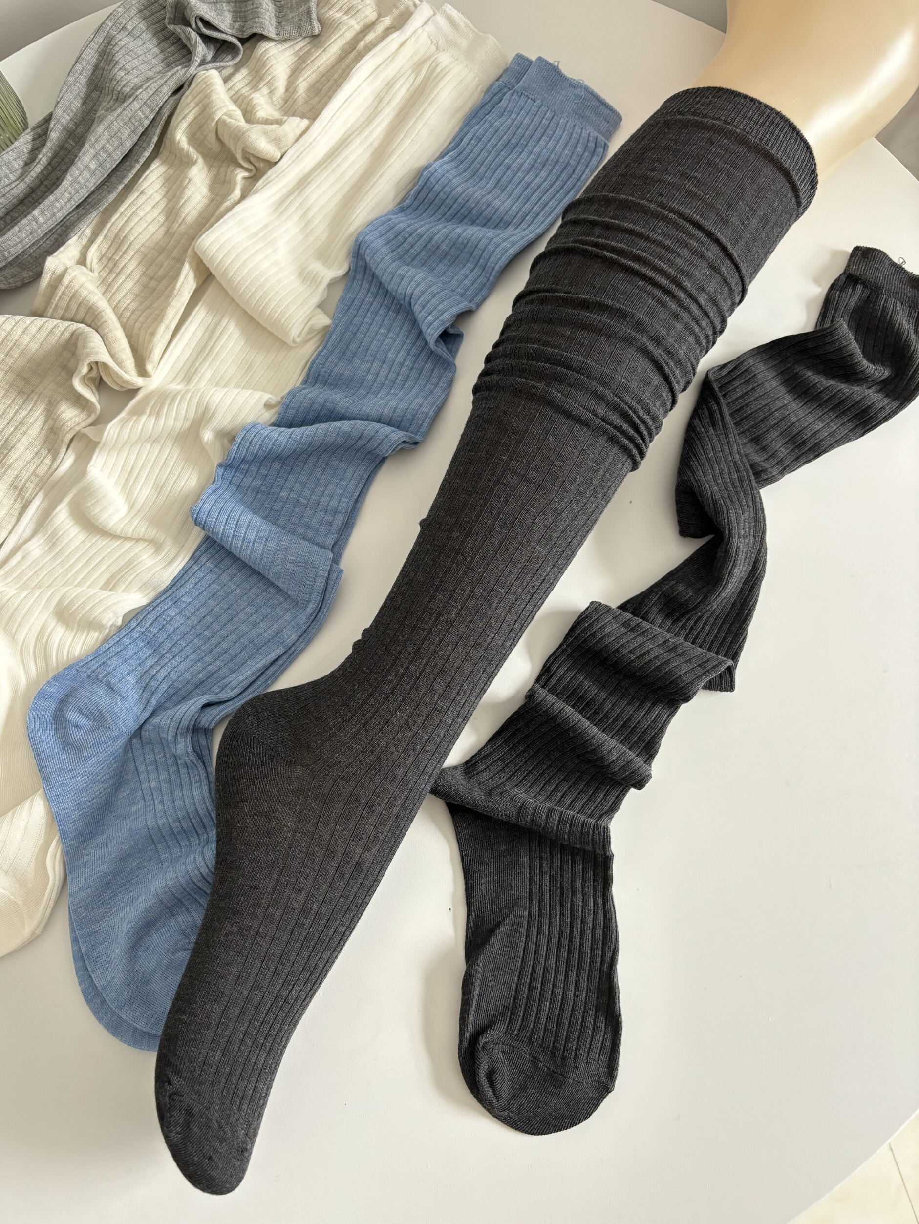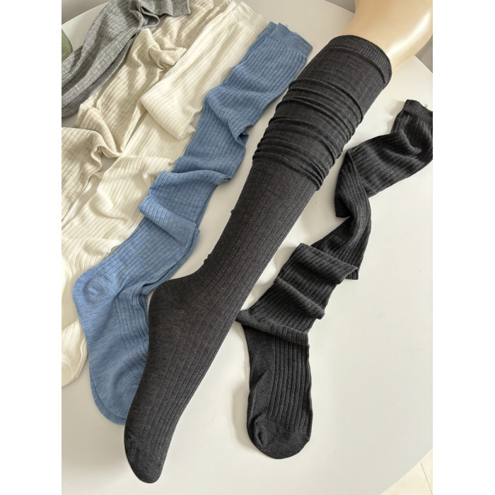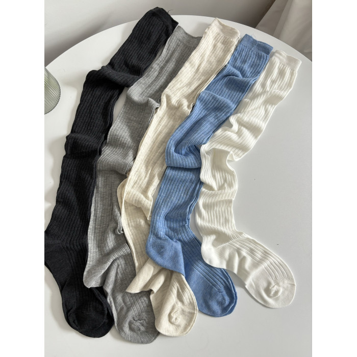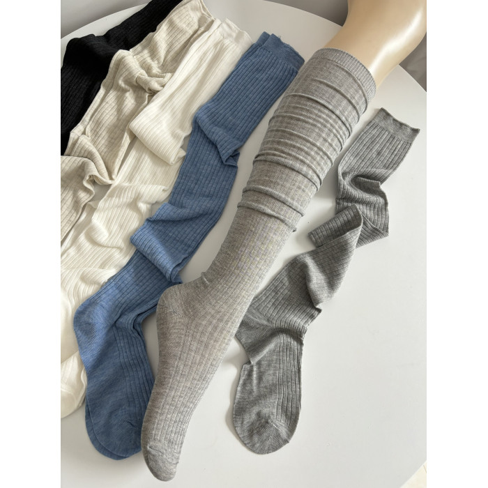春夏薄款白色堆曡過膝襪女棉竪紋長筒襪ins潮時髦百搭灰色高筒襪