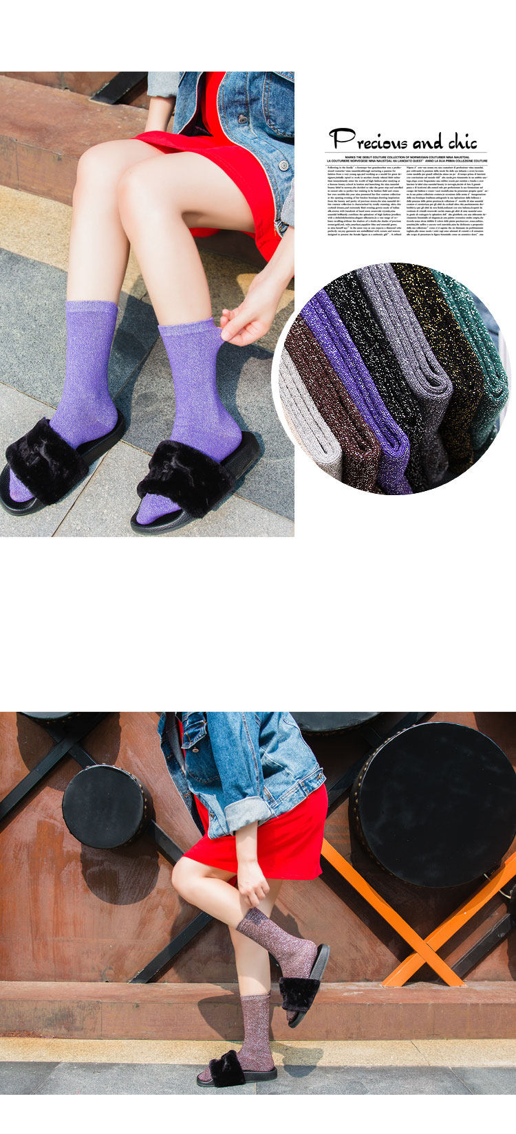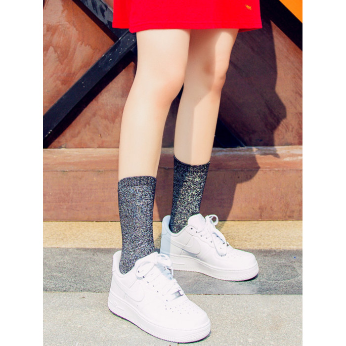 韓國銀蔥襪子女中筒長襪日系純棉亮絲堆堆襪春秋ins閃亮甜美潮襪