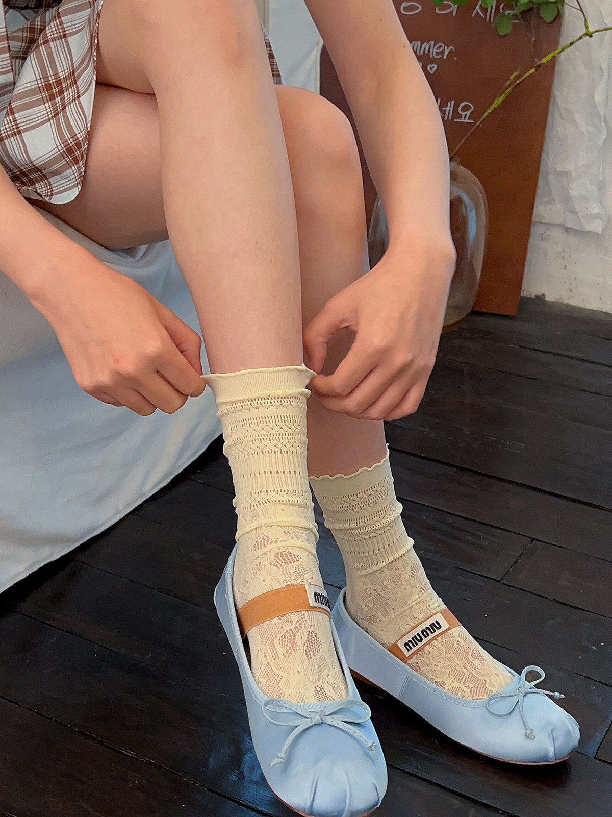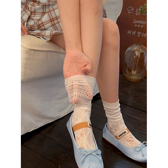 "美到失語!"【薄霧玫瑰】襪子女中筒薄款夏季蕾絲花邊堆堆襪長筒