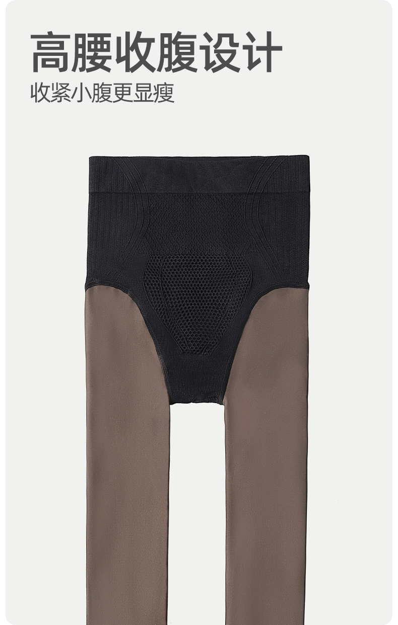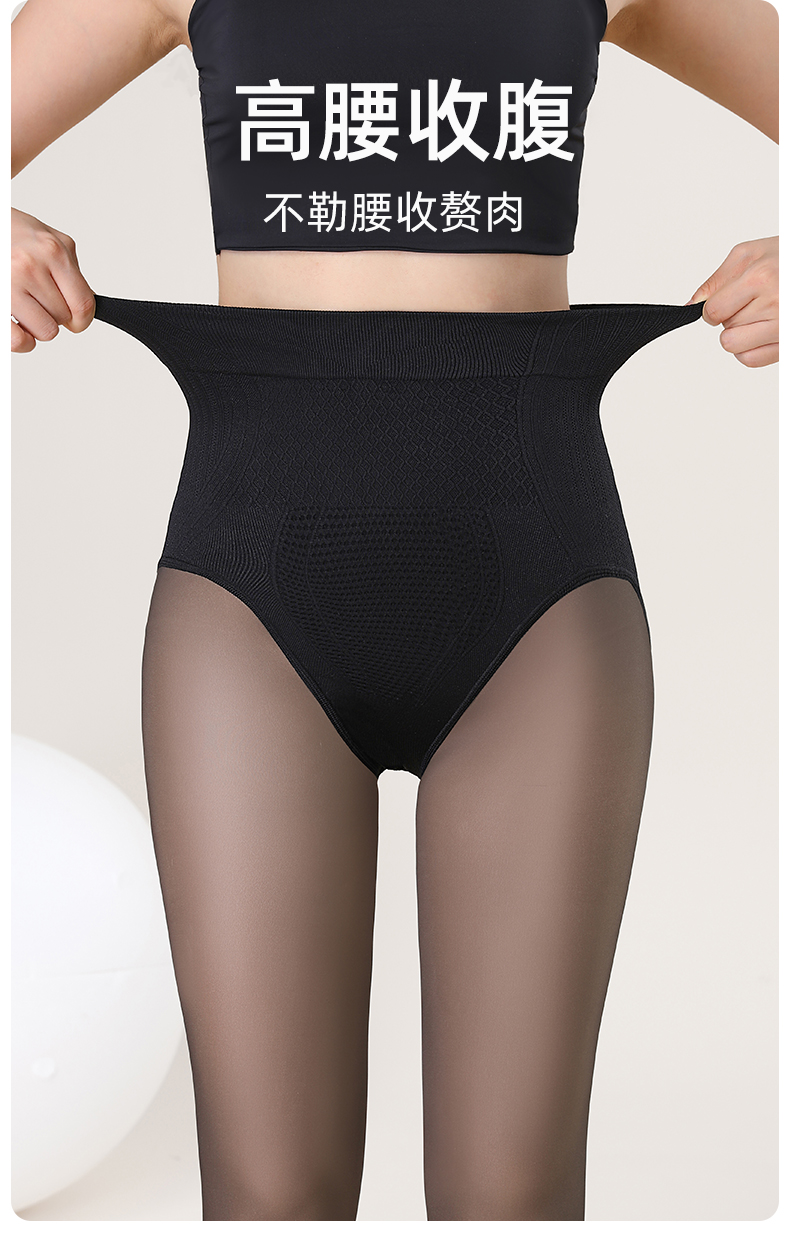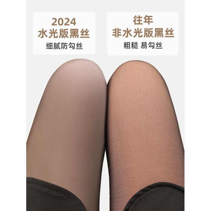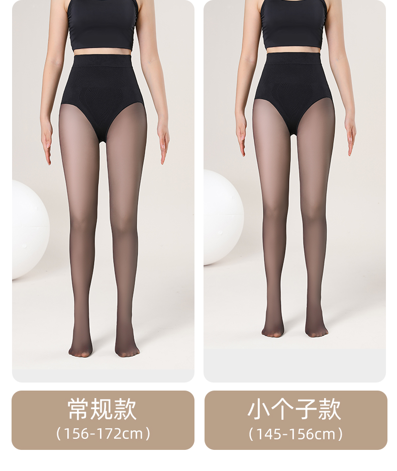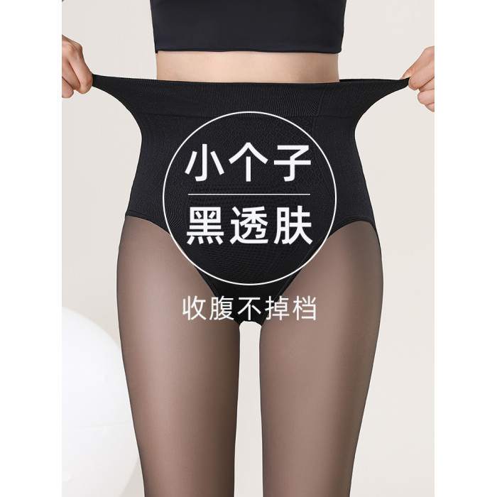 小個子水光黑絲襪黑透膚一體光腿神器女秋冬加絨高腰收腹打底褲