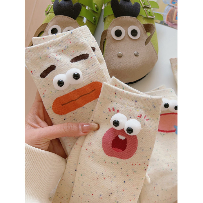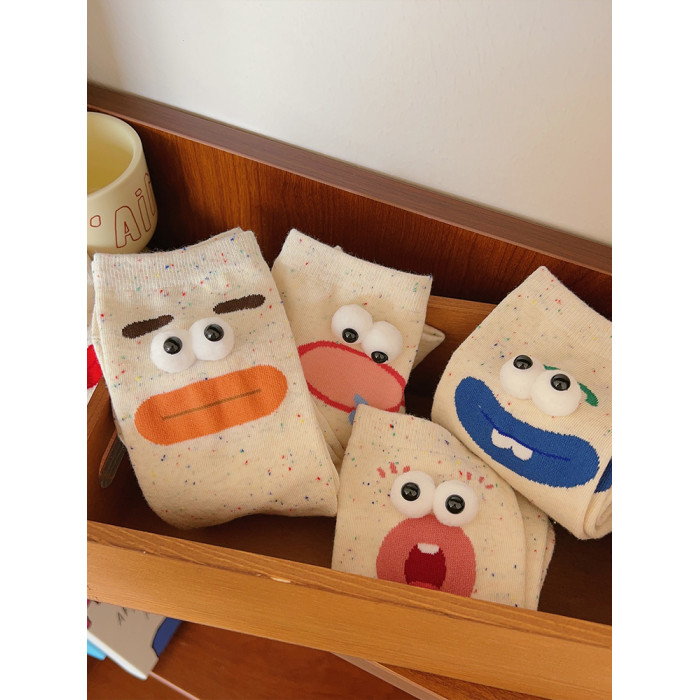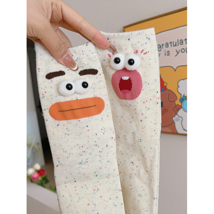 醜萌趣味搞怪襪子女中筒襪ins潮純棉春秋日系可愛情侶點子紗長襪