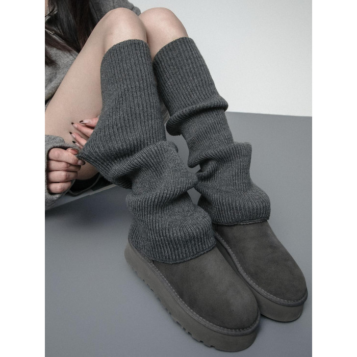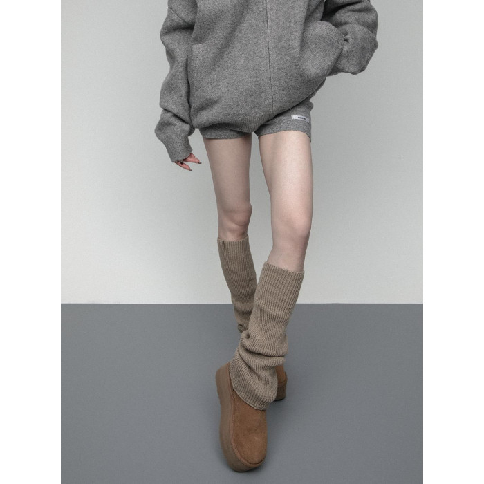 SS2L秋冬加厚保暖微喇叭針織堆堆襪套簡約雪地靴腿套曡穿小腿襪