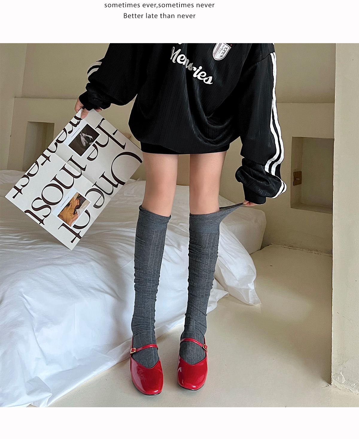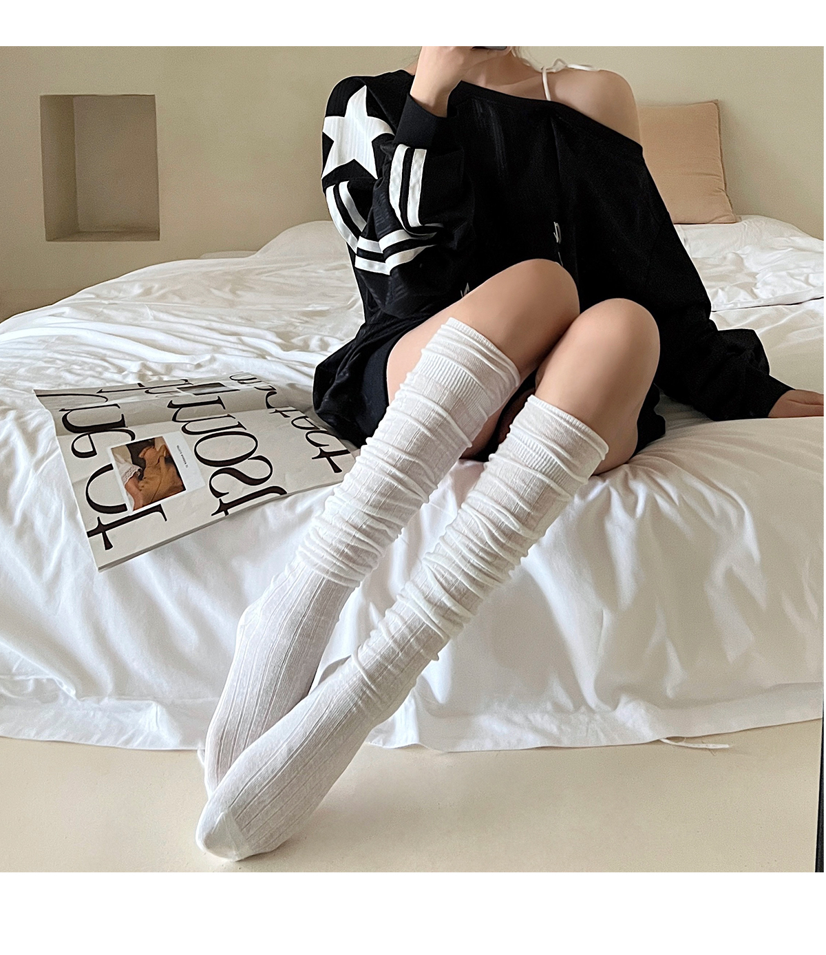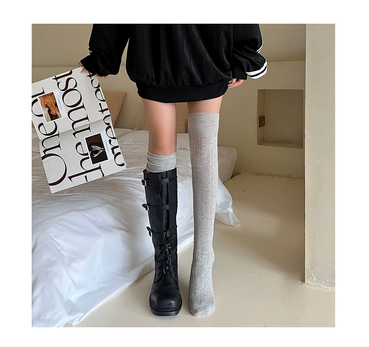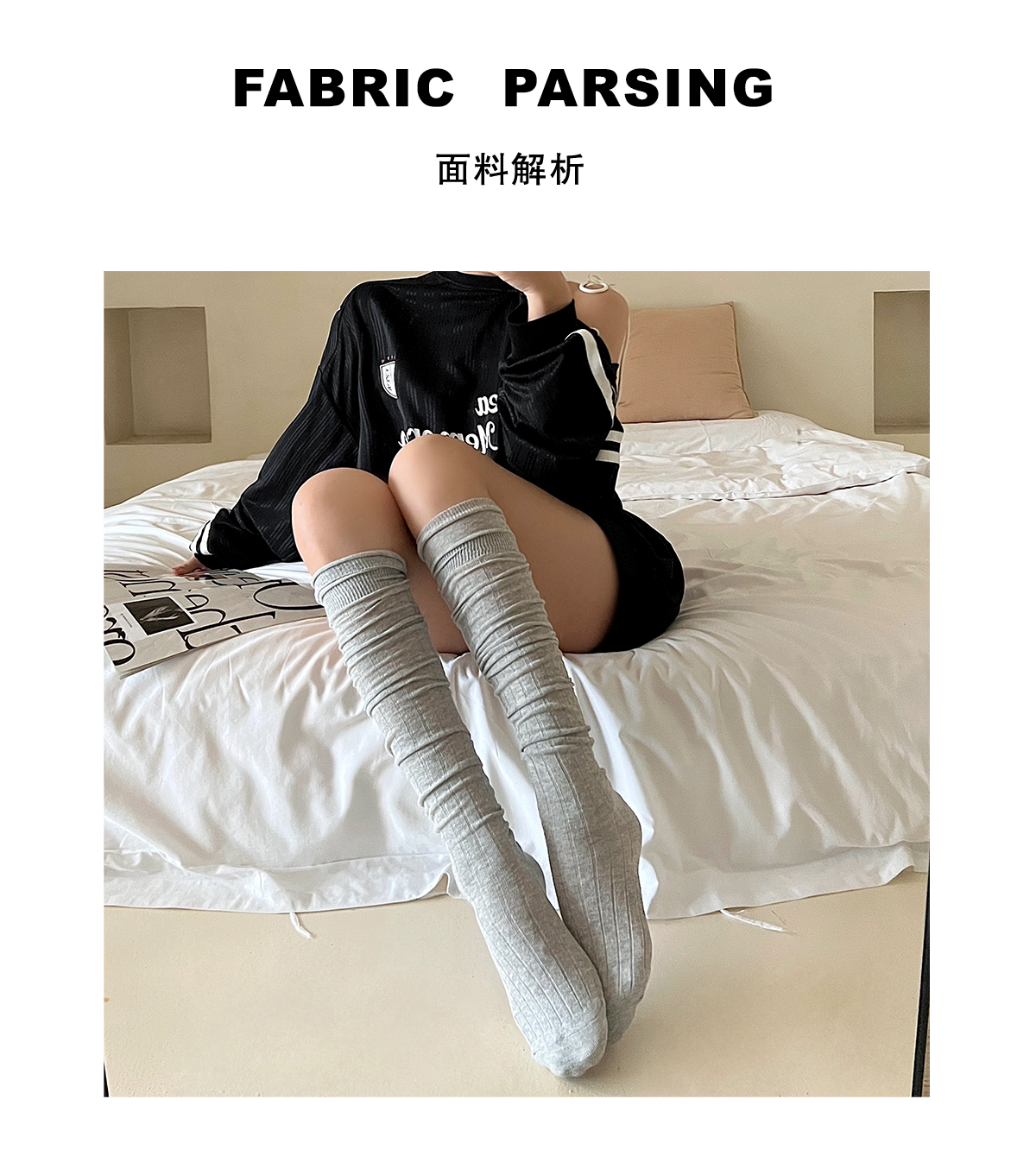 miu系過膝長筒襪女秋季拼接堆堆襪灰色及膝小腿襪配靴子及膝襪白