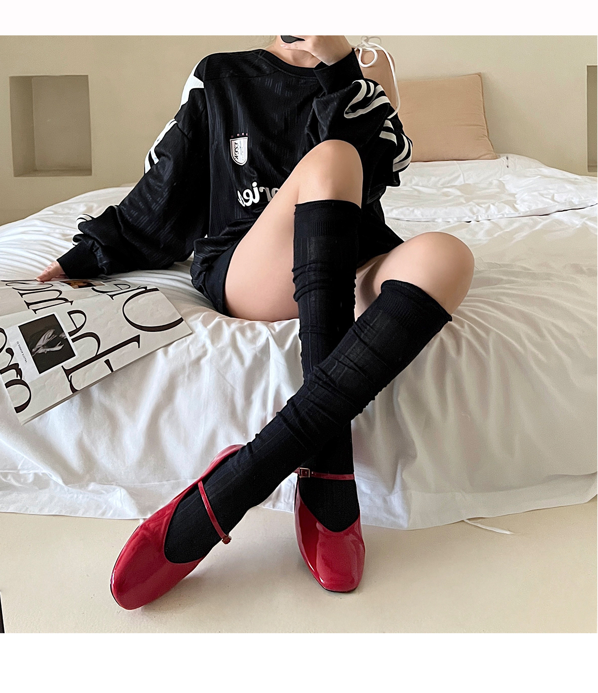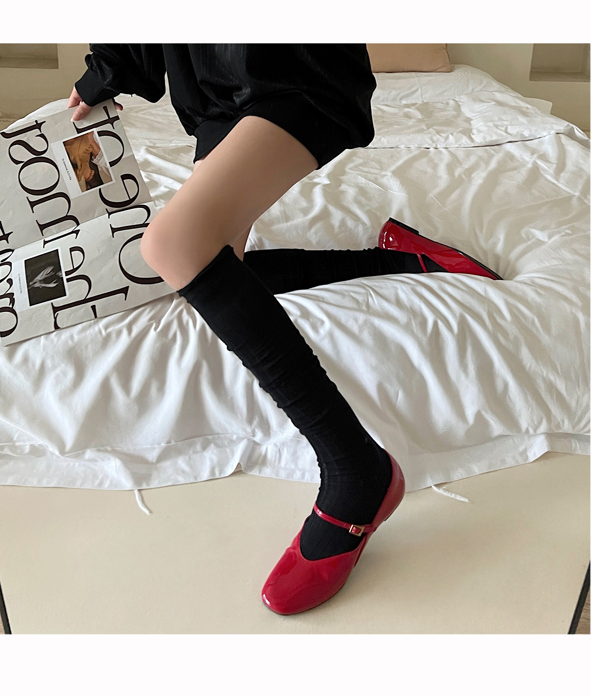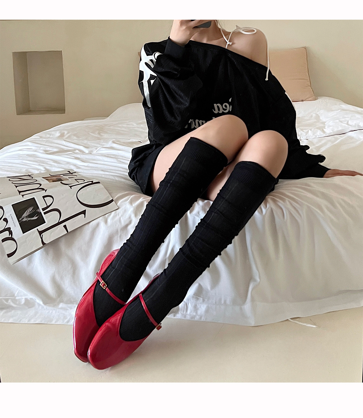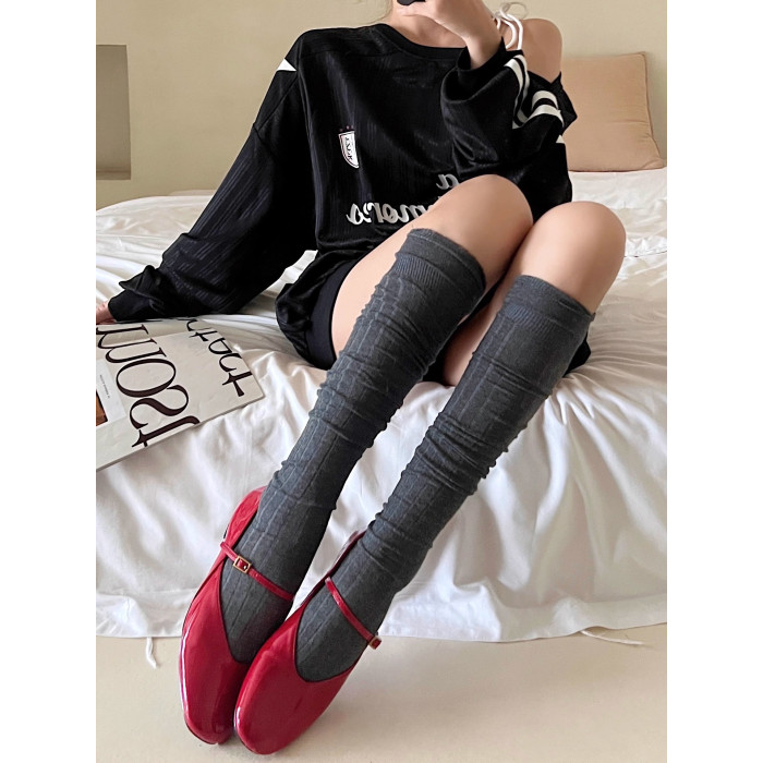 miu系過膝長筒襪女秋季拼接堆堆襪灰色及膝小腿襪配靴子及膝襪白