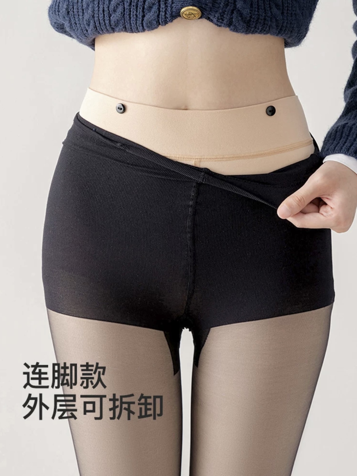 林中有鹿 【紐釦款加絨黑絲】超自然黑透膚女雙層打底褲秋冬裸感
