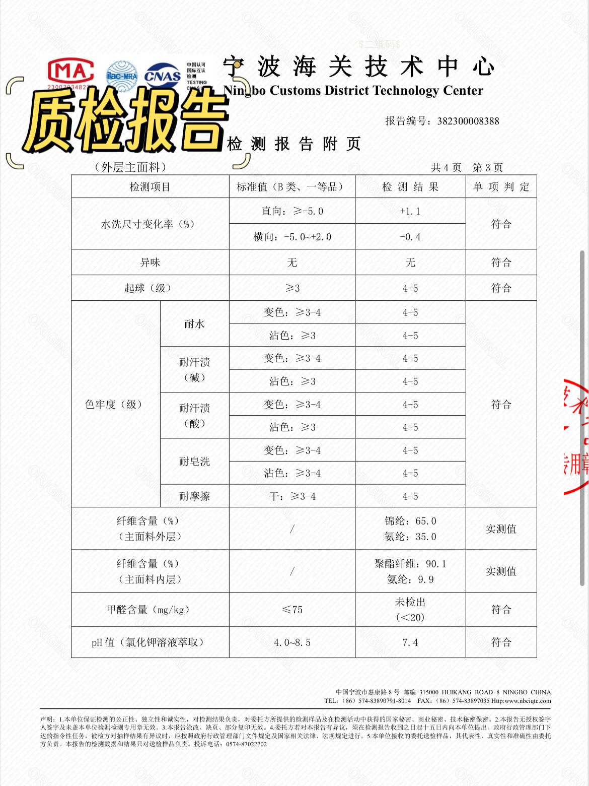 | 裡料材質成分 | 聚氨酯彈性纖維(氨綸) |