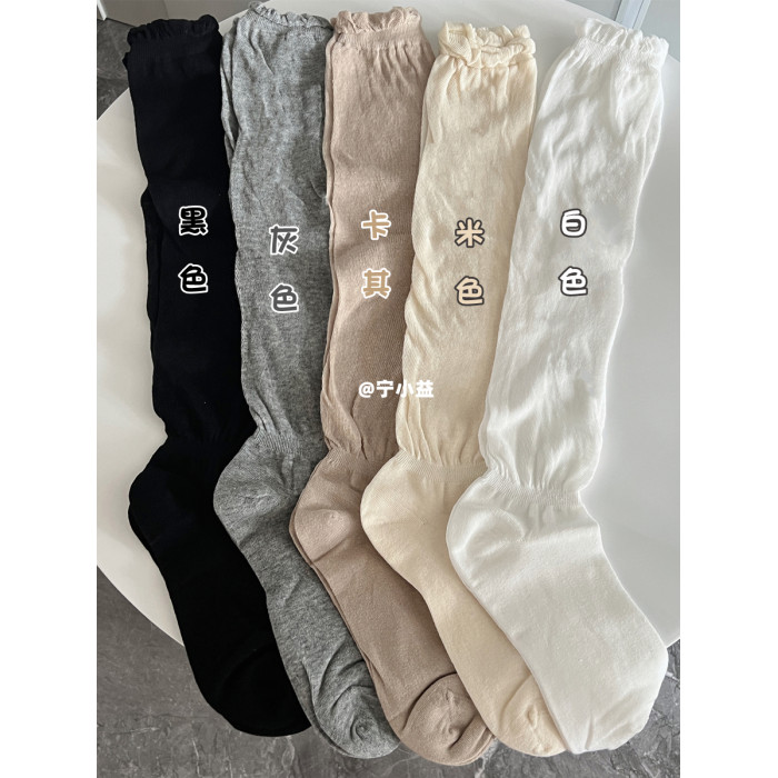 甯小益泡泡口拼接小腿襪子女春夏季薄款美拉德中筒襪jk灰色堆堆襪