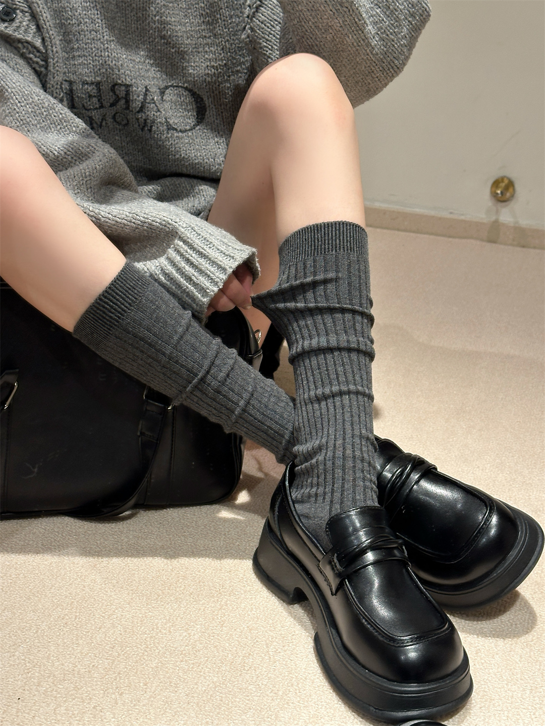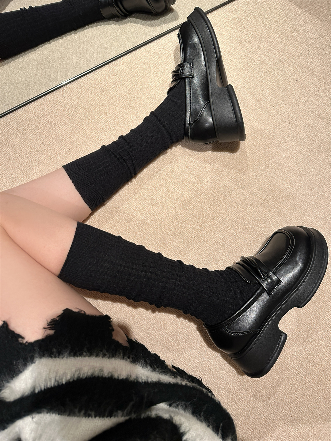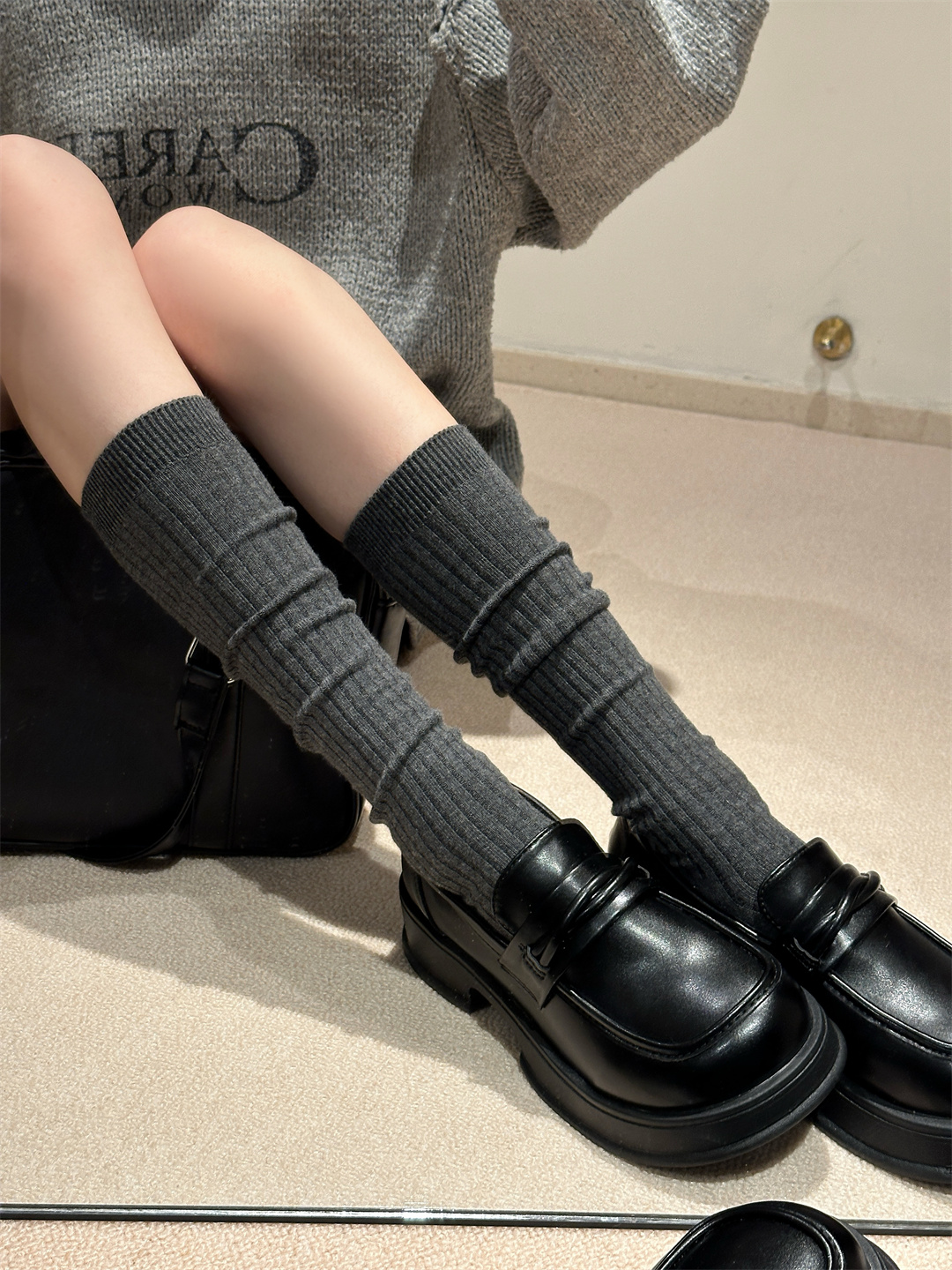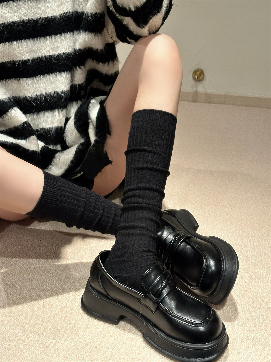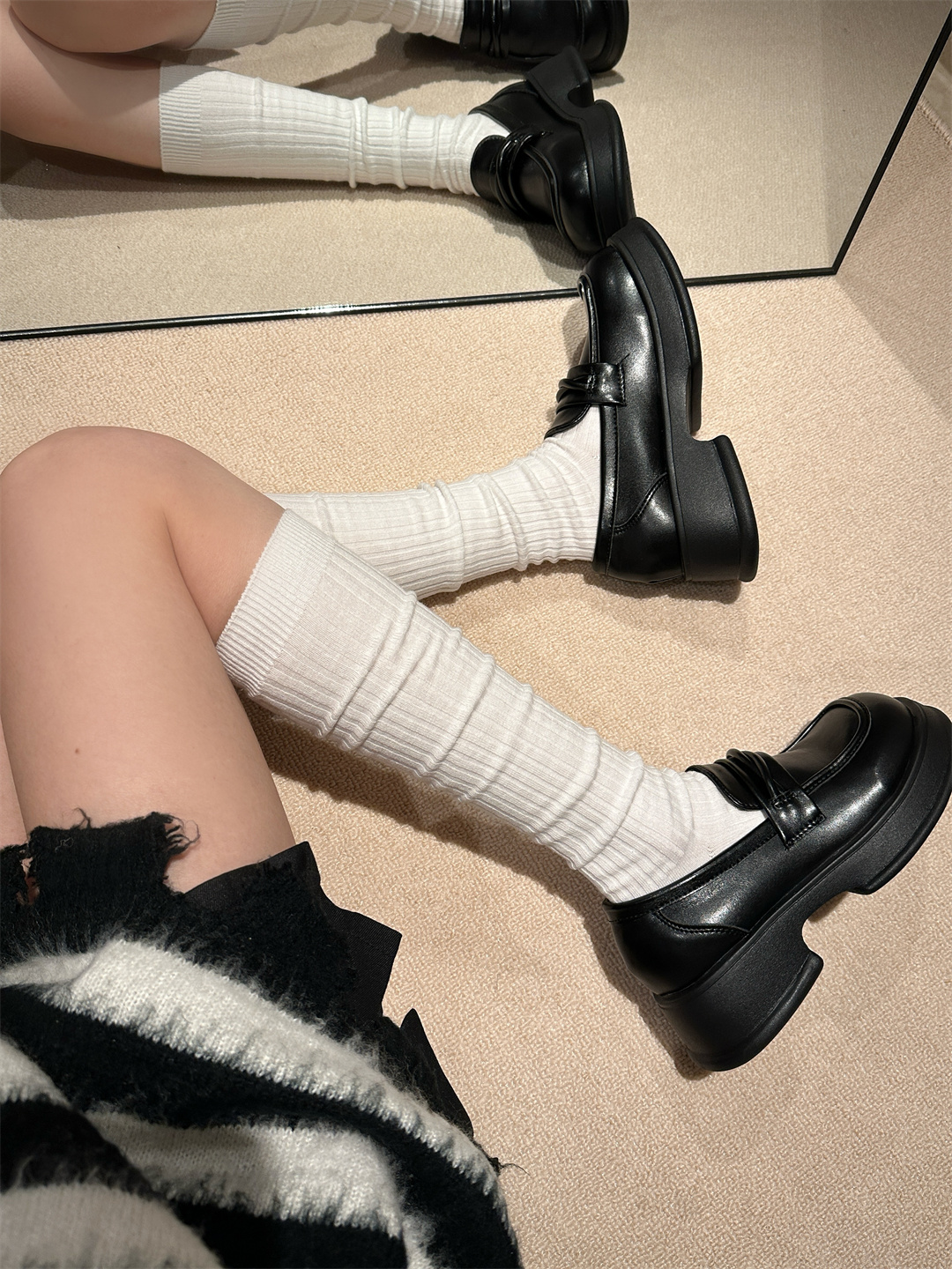 日系小腿靴襪春秋長筒美拉德堆堆襪JK純色白色堆堆襪顯瘦配騎士靴