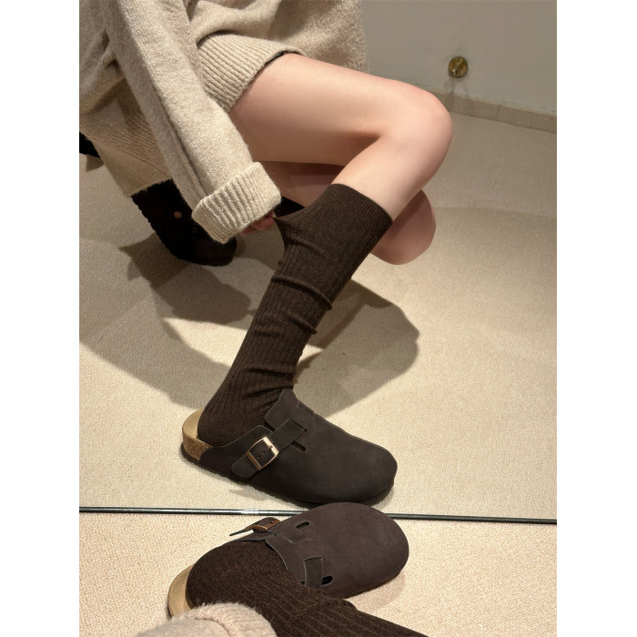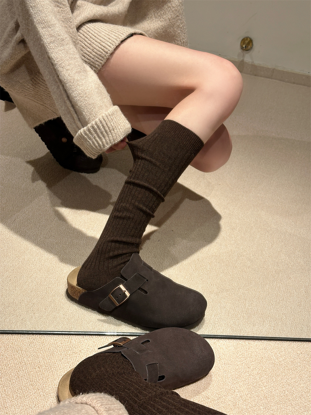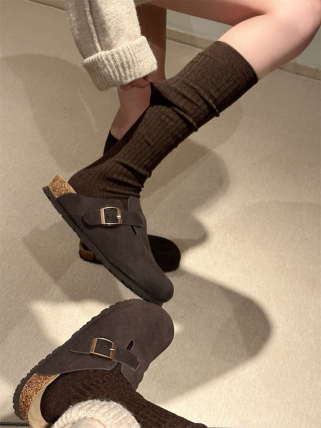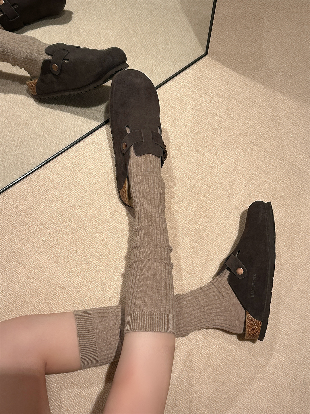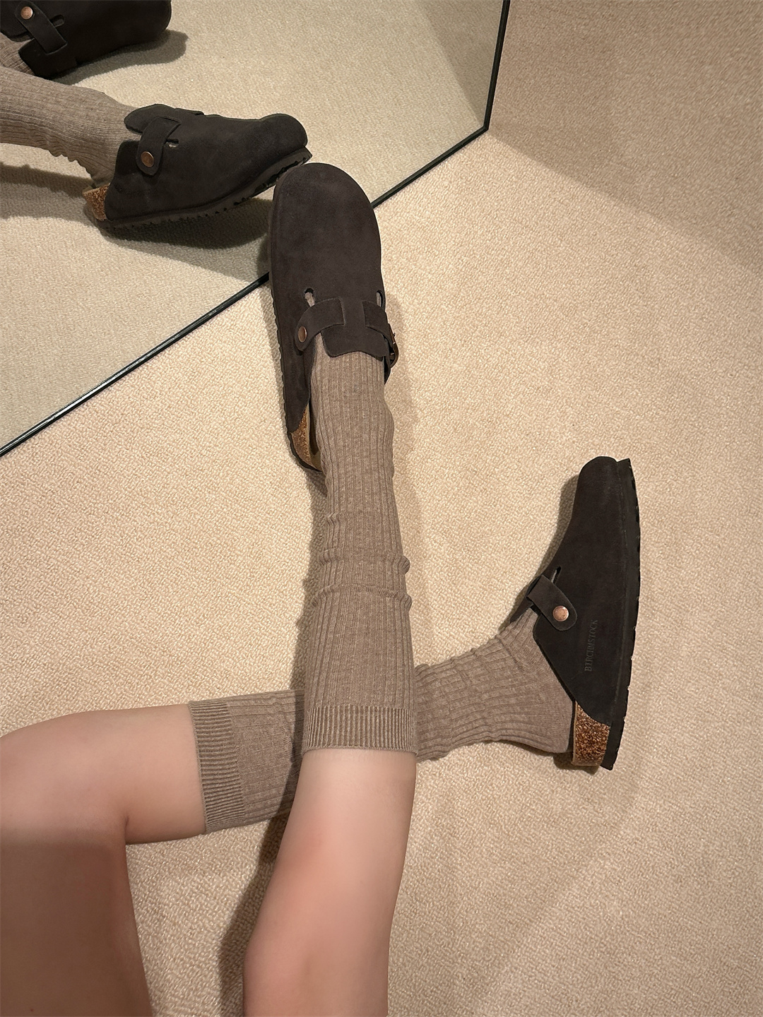日系小腿靴襪春秋長筒美拉德堆堆襪JK純色白色堆堆襪顯瘦配騎士靴