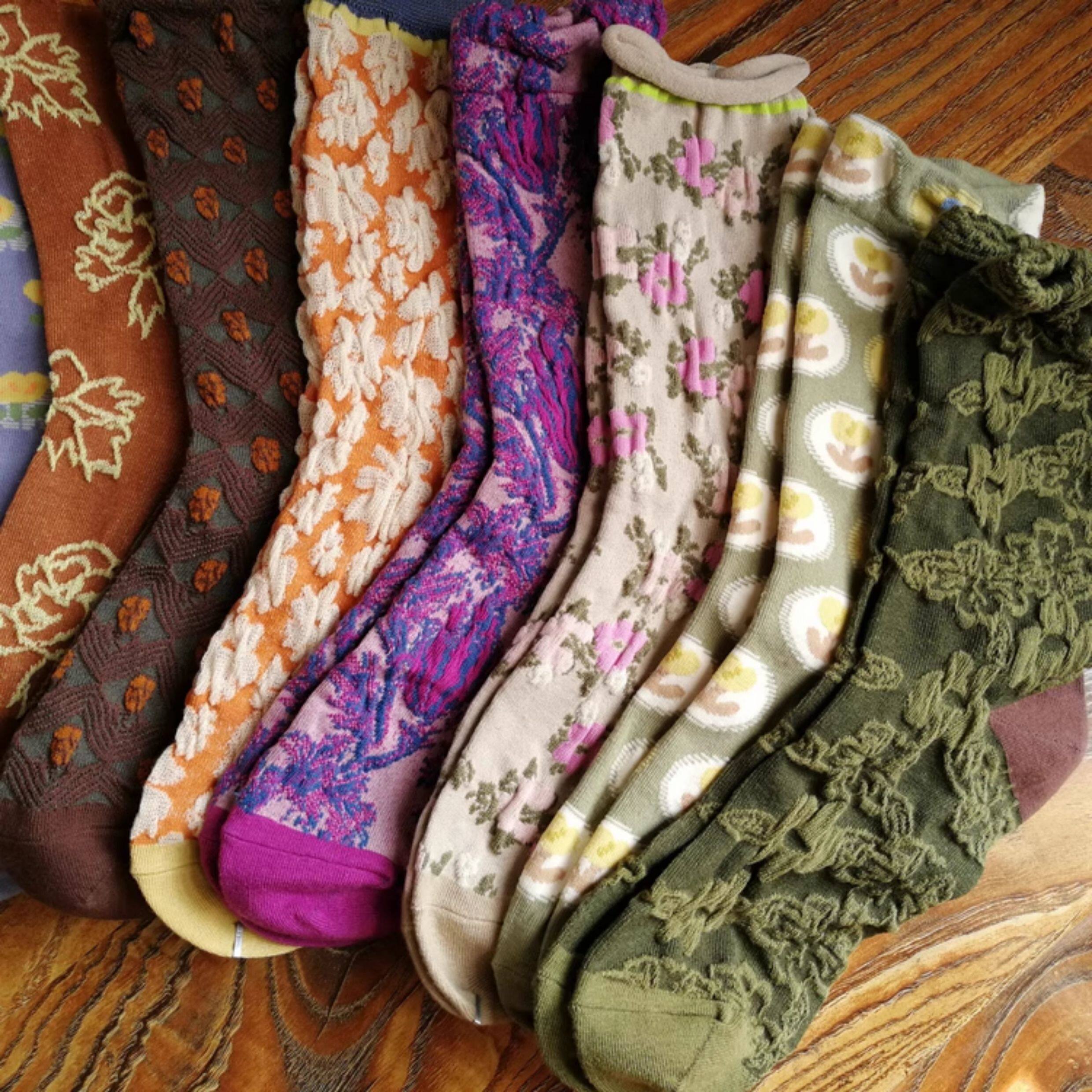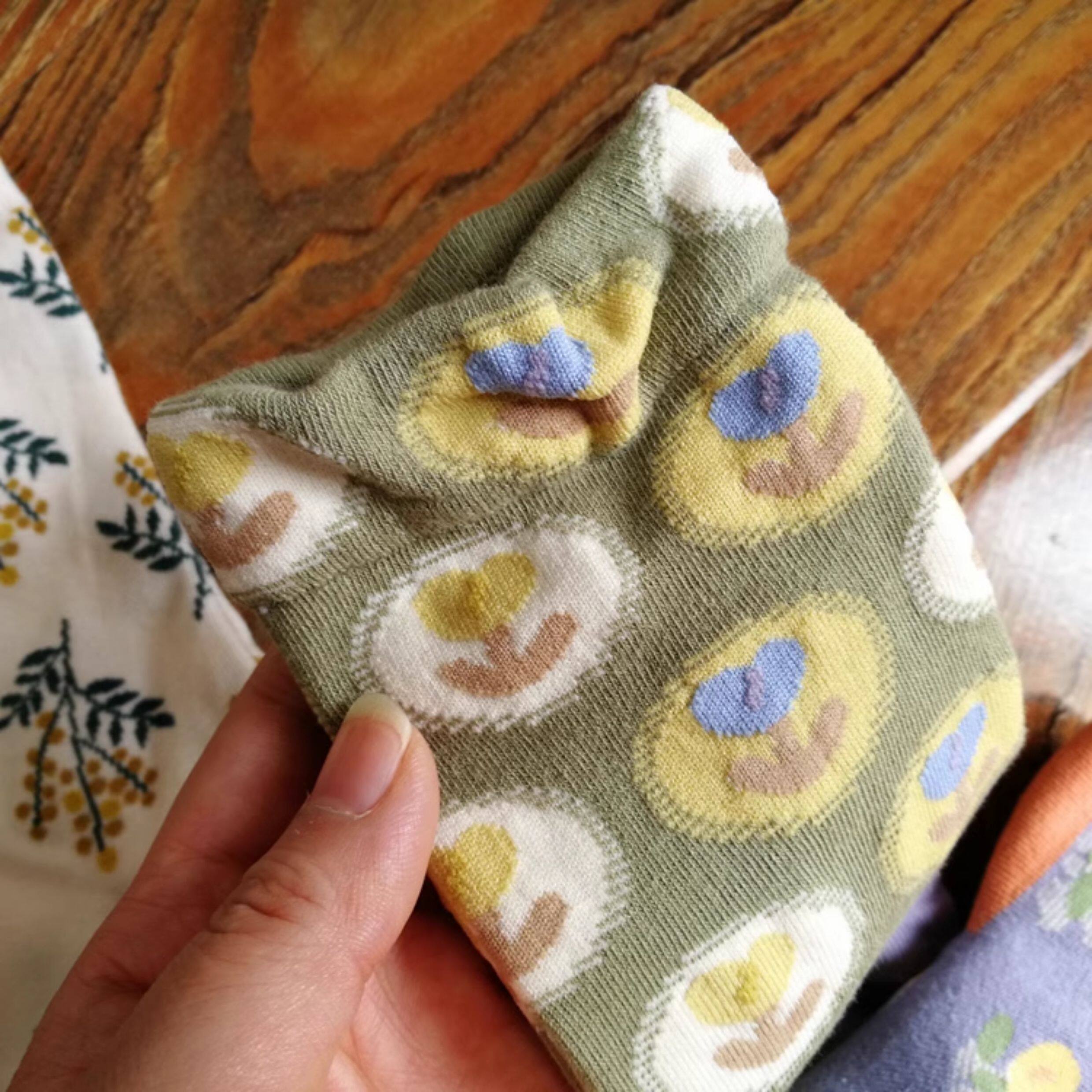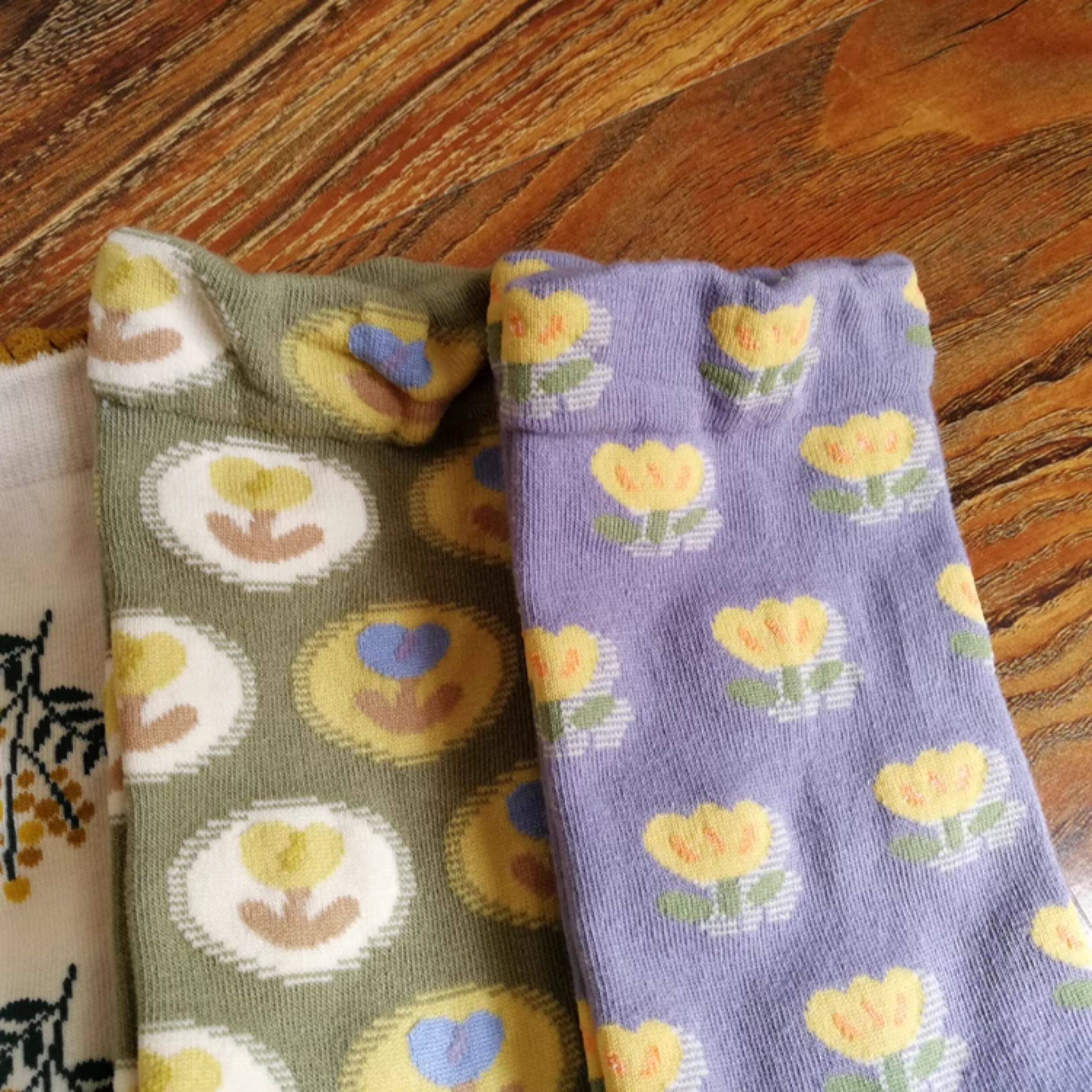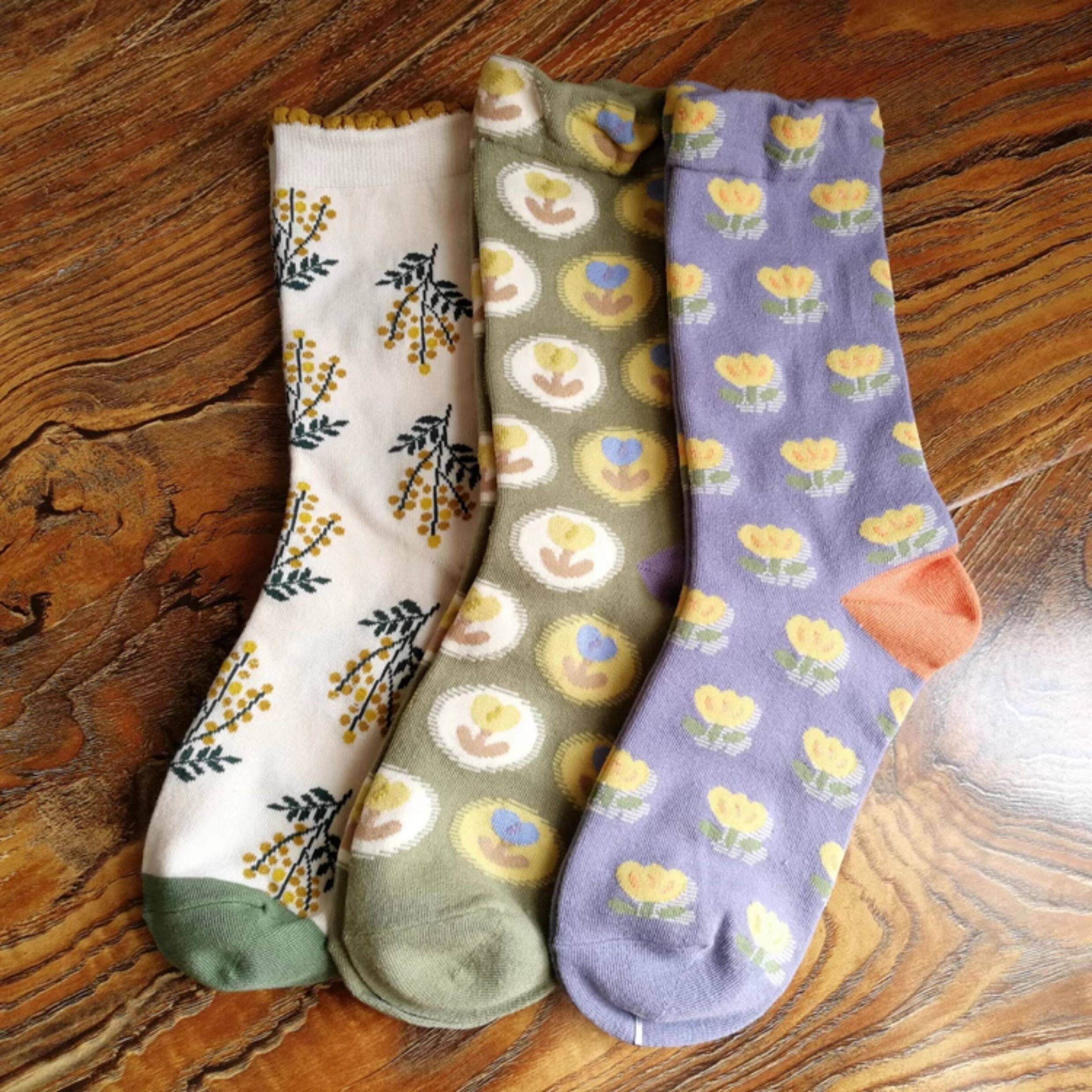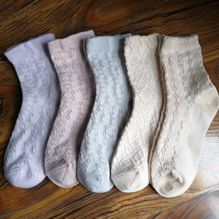 春秋棉襪田園風甜美漂亮花朵小花女襪浮雕女中筒襪子個性ins
