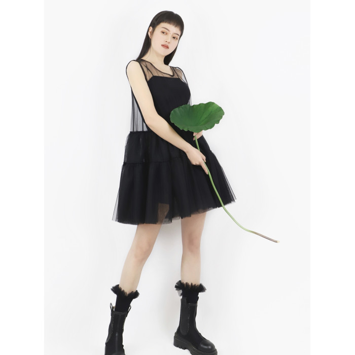 TEATREE 甜酷少女小腿襪網紗花邊中筒襪日系JK春夏個性短襪