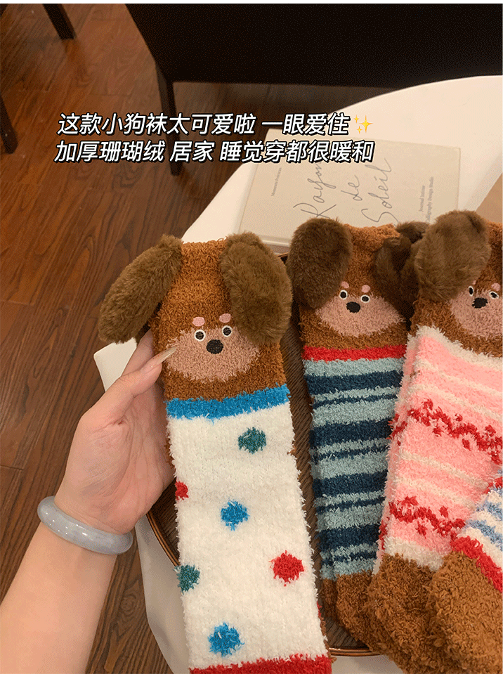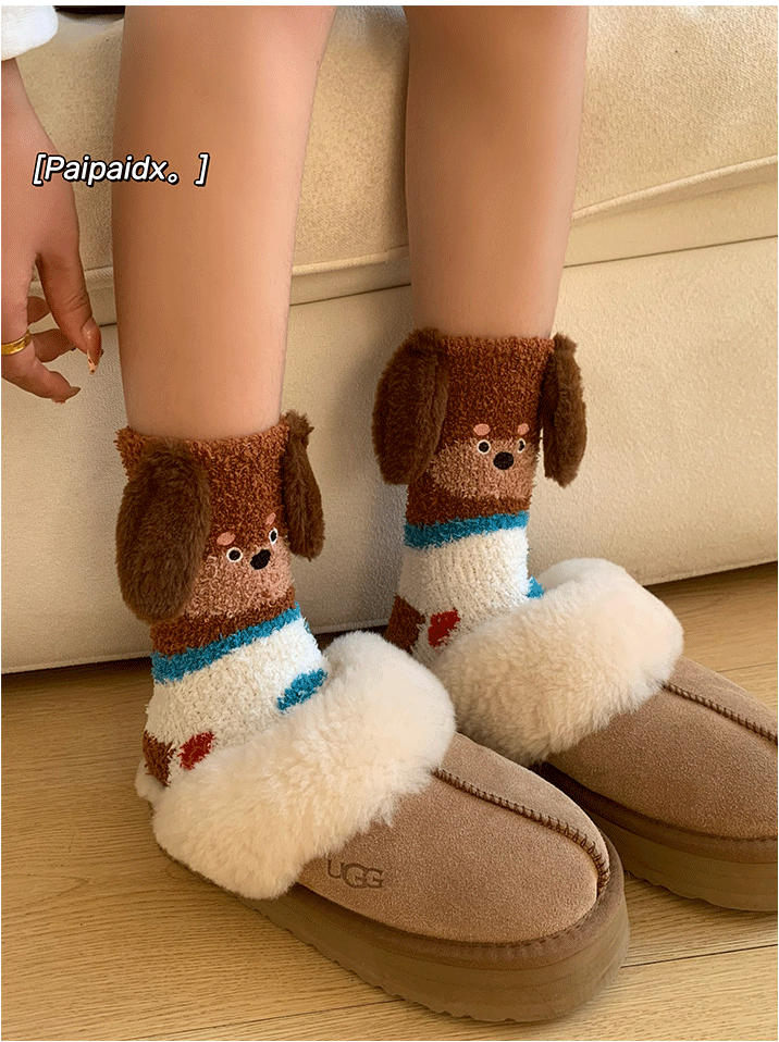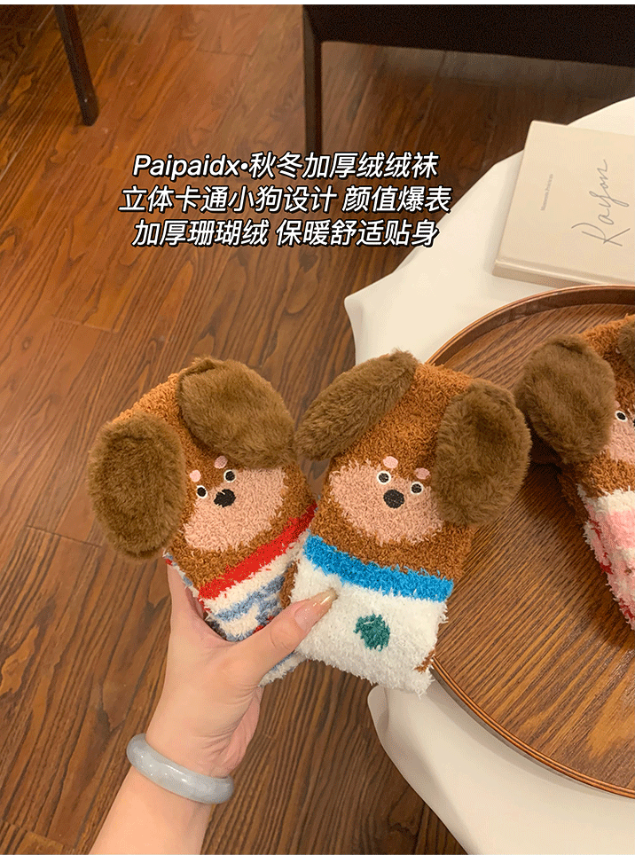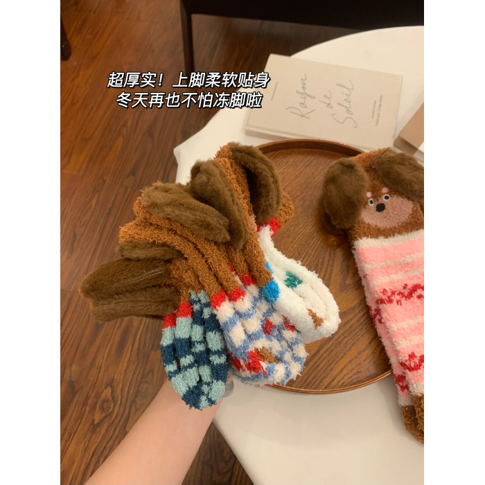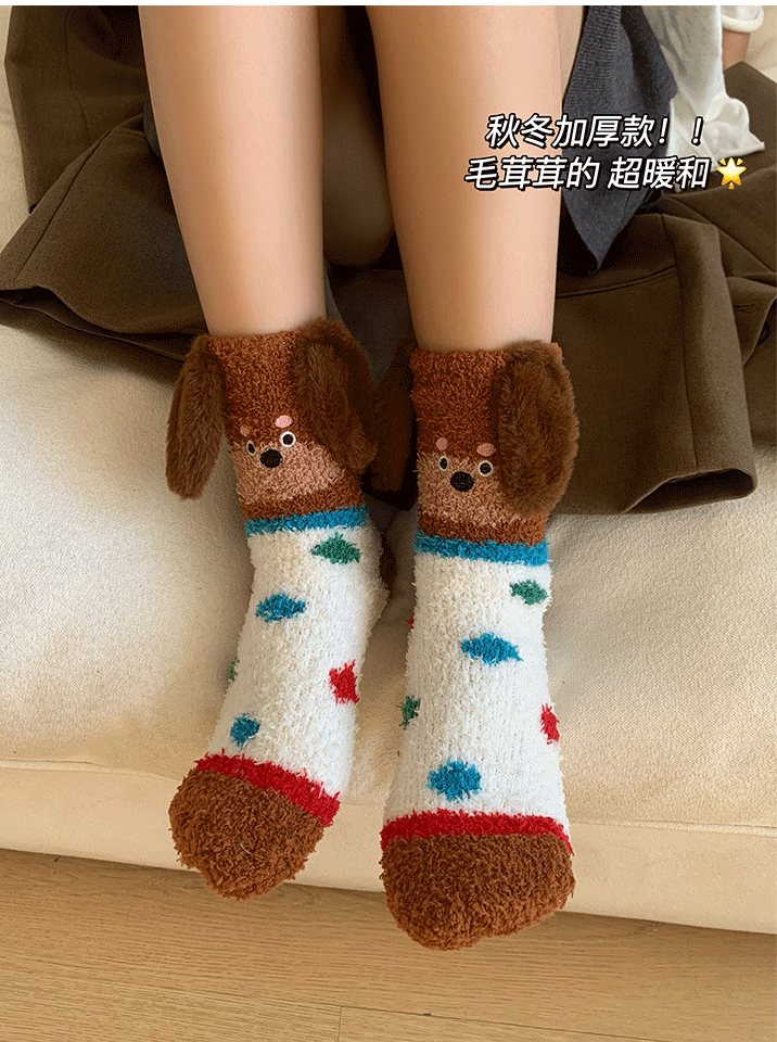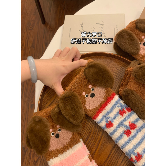 立體小狗地板襪子女士2026新款爆款冬睡眠加厚絨珊瑚絨保暖月子襪
