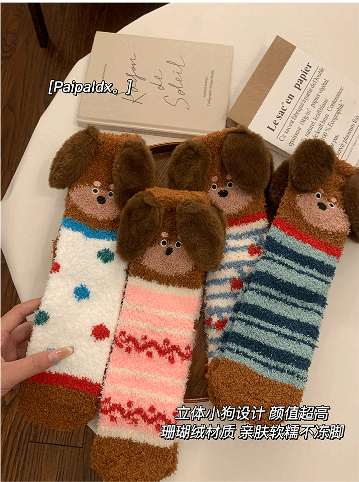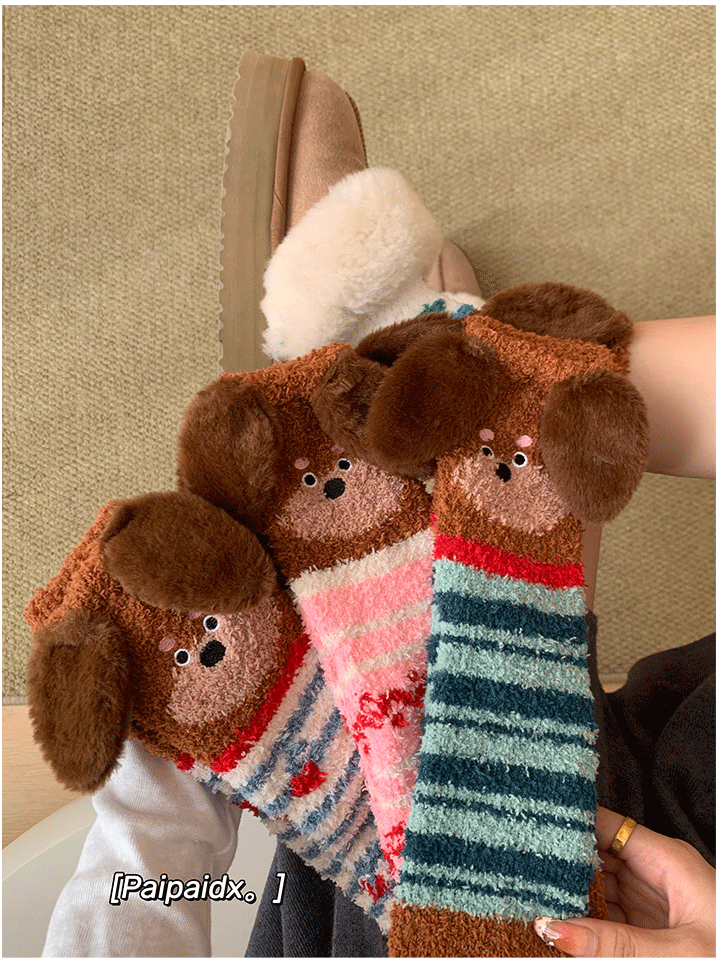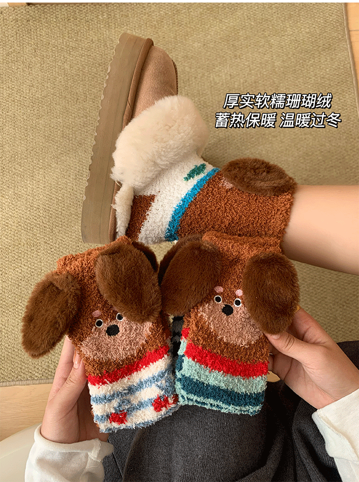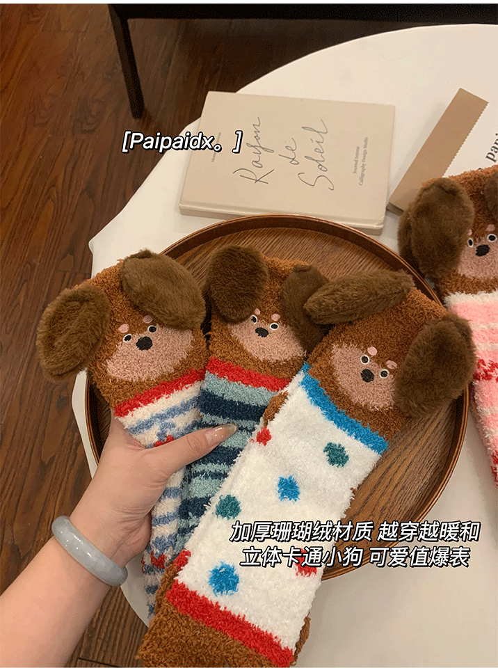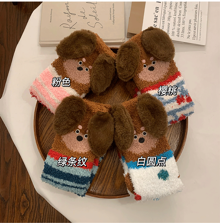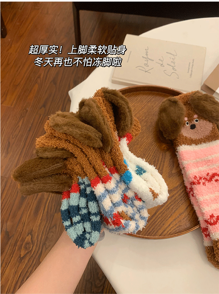 立體小狗地板襪子女士2026新款爆款冬睡眠加厚絨珊瑚絨保暖月子襪