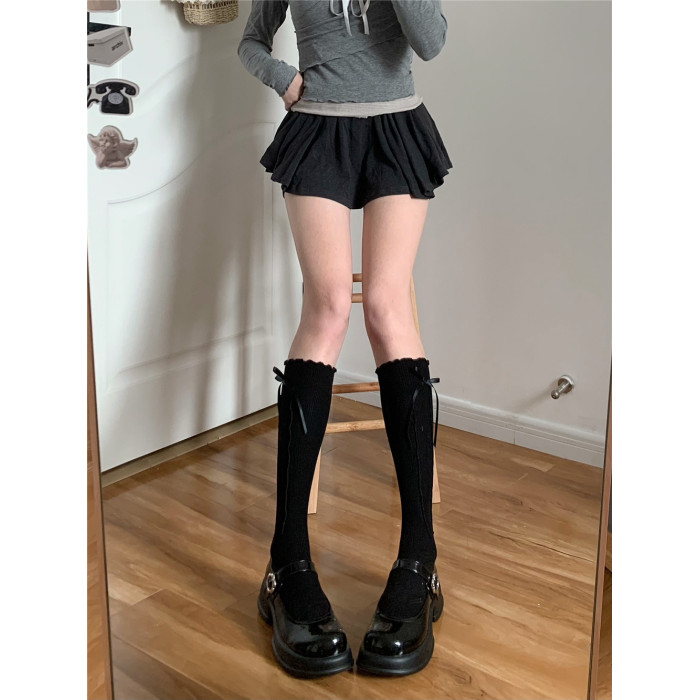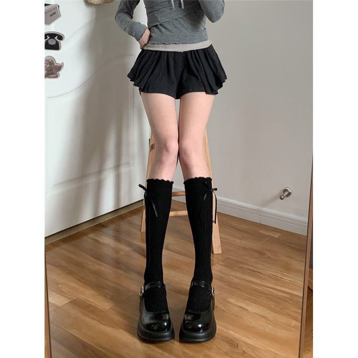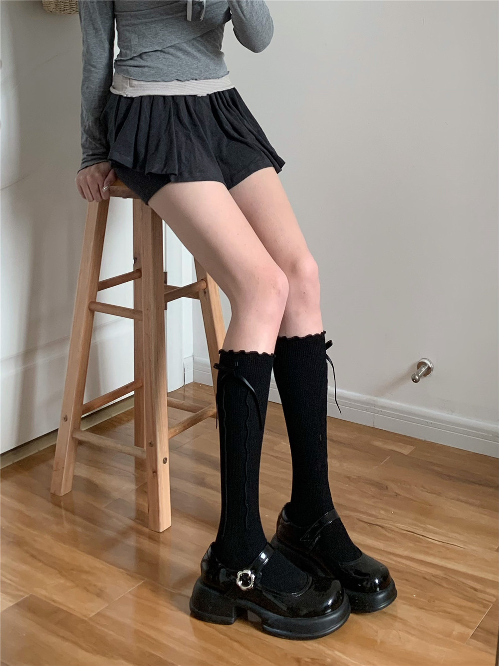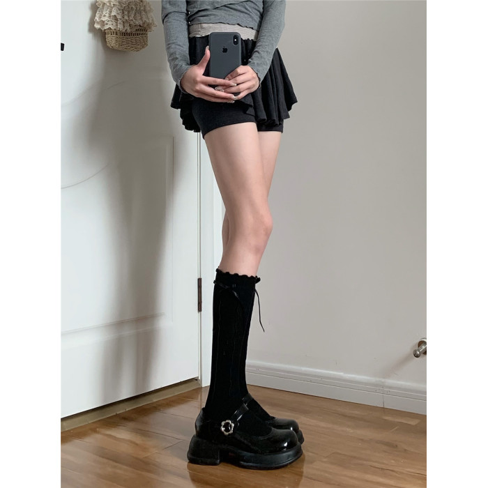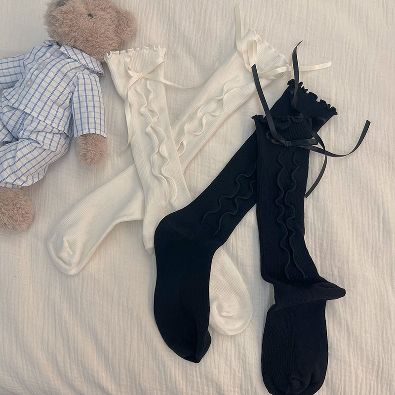 AY To films韓國ins龍心中筒襪木耳邊堆堆襪蝴蝶結飄帶少女小腿襪