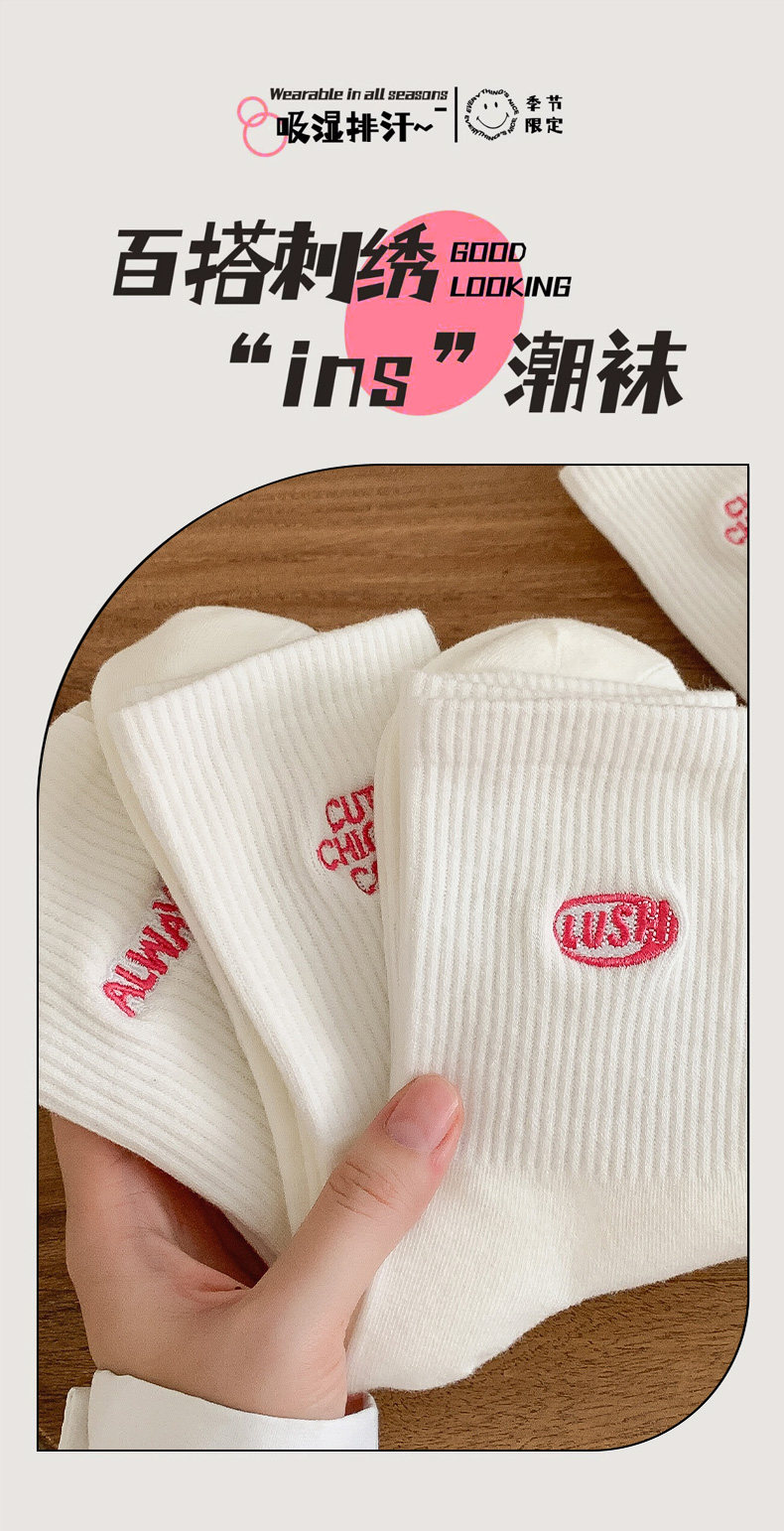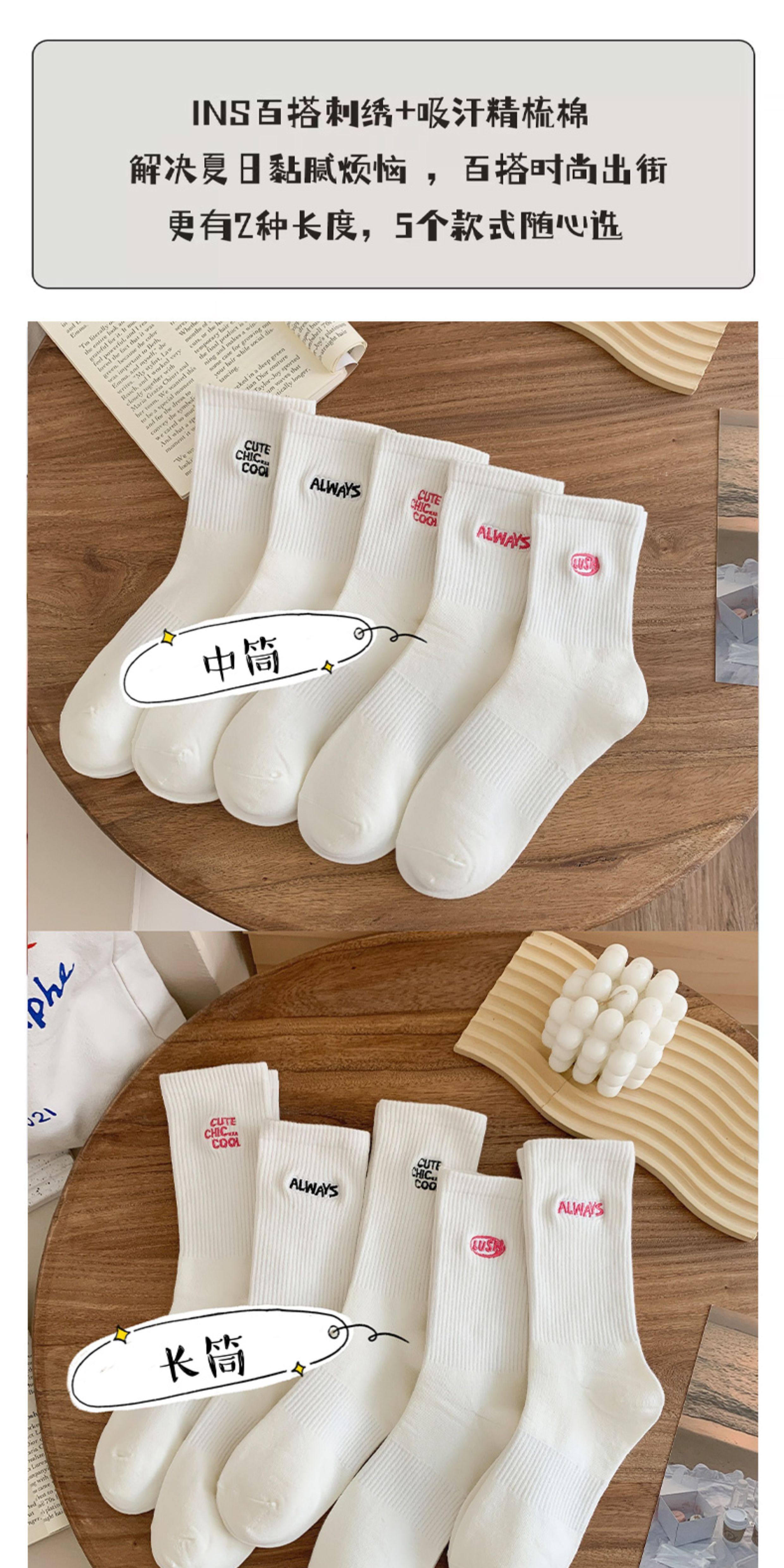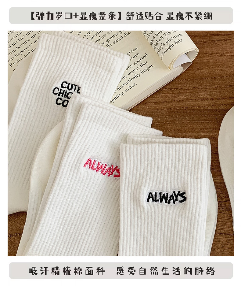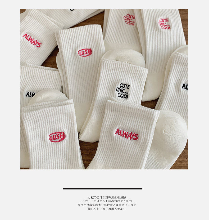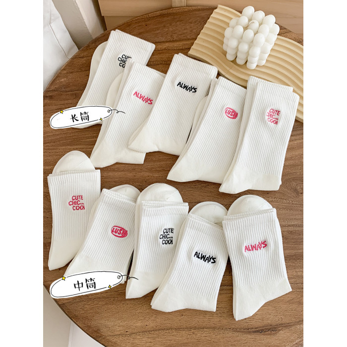 白色襪子女中長筒純棉襪春秋款字母刺綉ins潮網紅高筒襪運動長襪