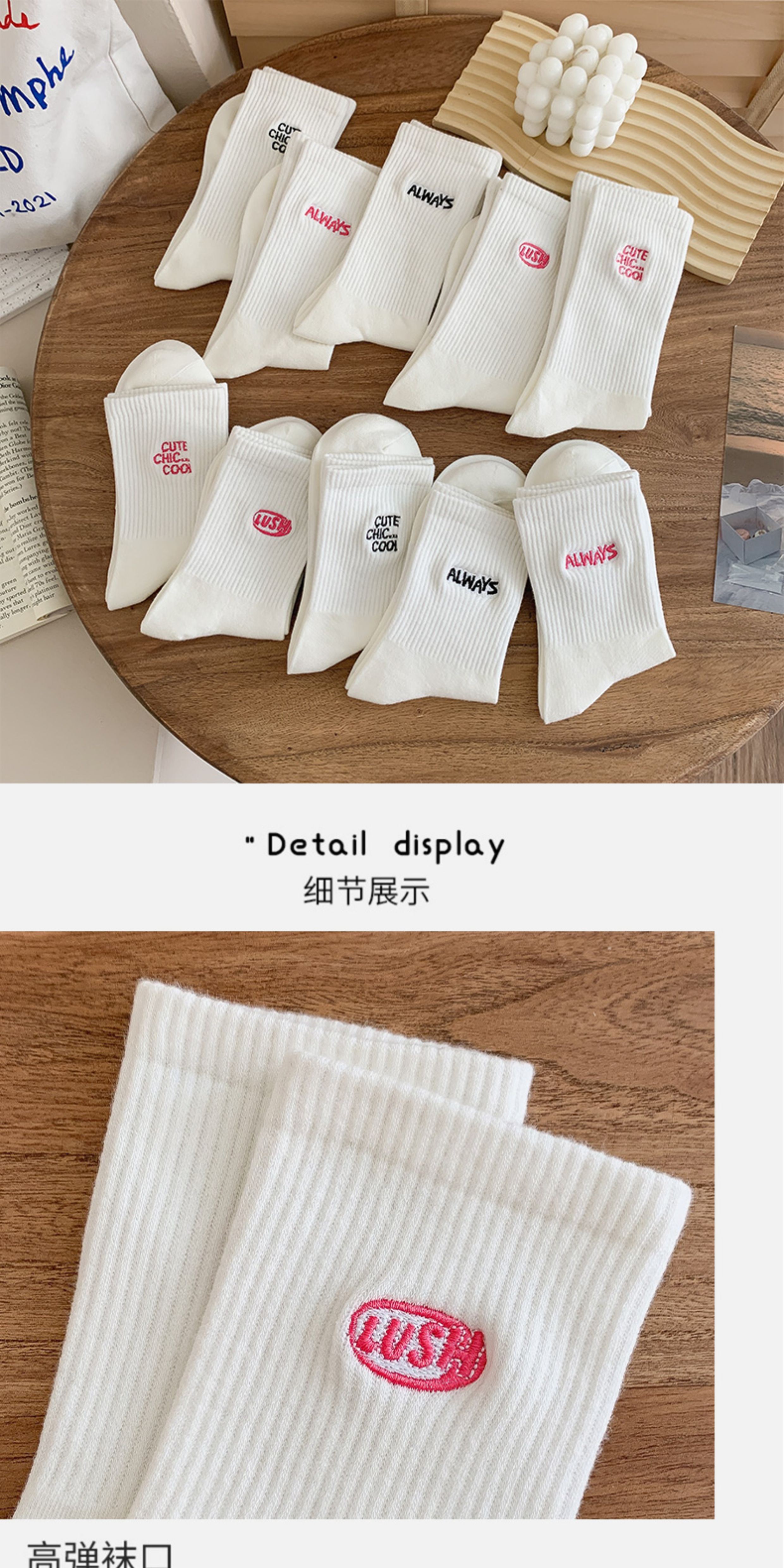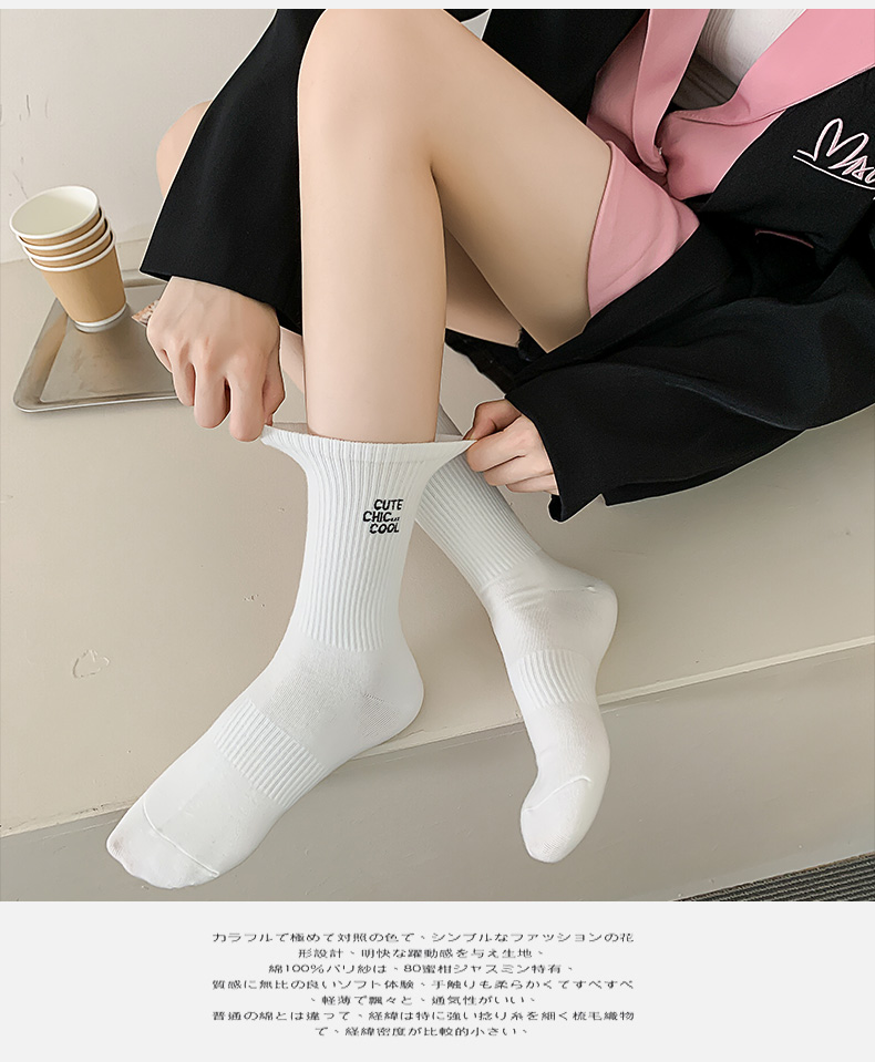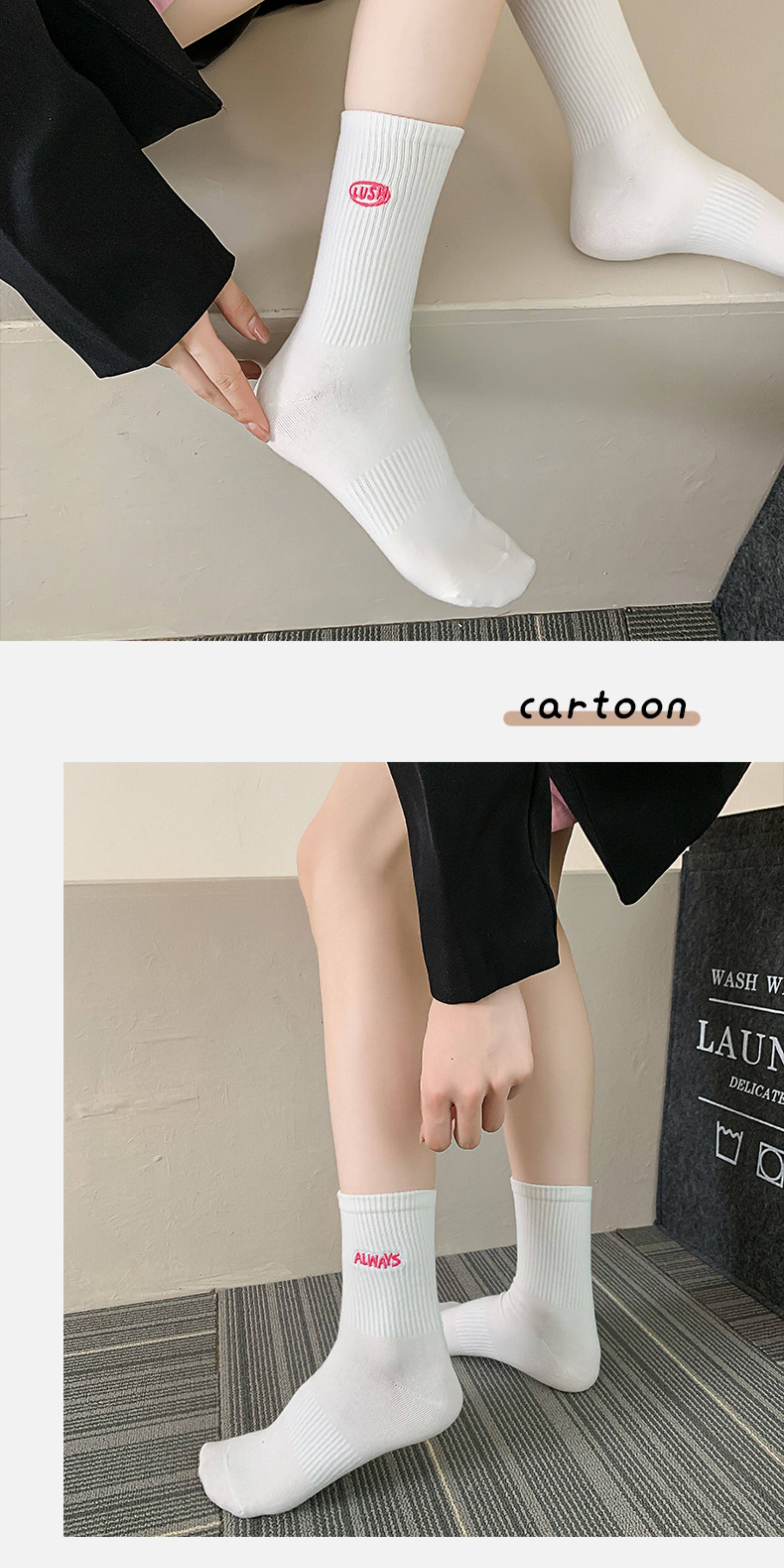 白色襪子女中長筒純棉襪春秋款字母刺綉ins潮網紅高筒襪運動長襪