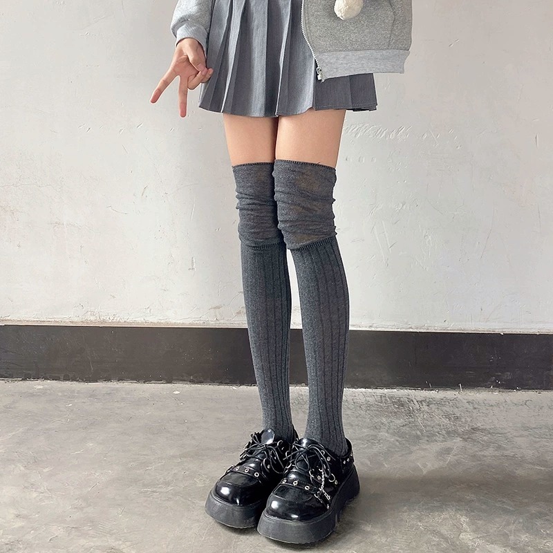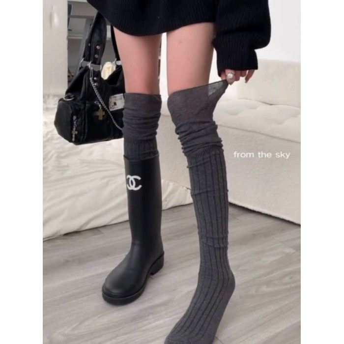 款號 慵嬾堆堆過膝襪黑色襪子女春秋款長靴長腿高筒灰色jk秋冬長筒長襪