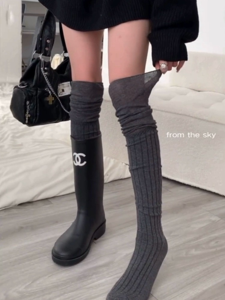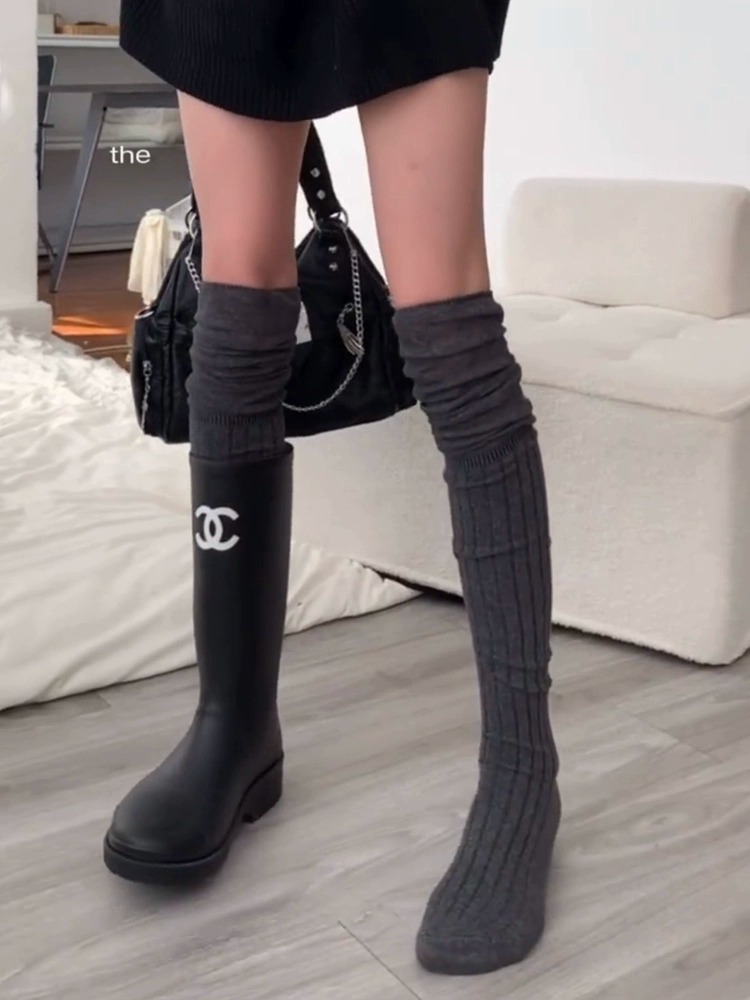 誰懂啊,過膝襪搭靴子真的巨巨巨好看!黑灰高級配色,慵懶隨性~