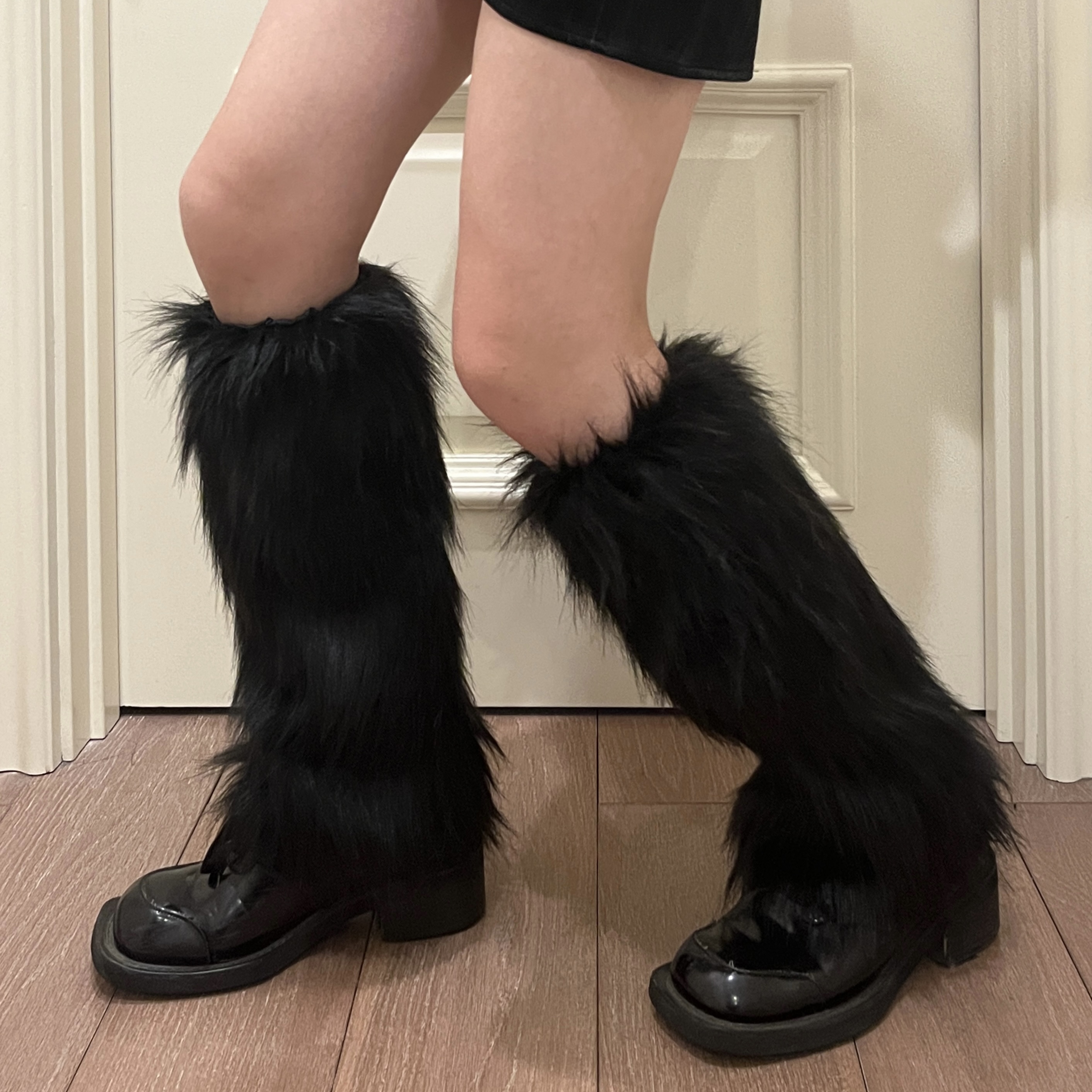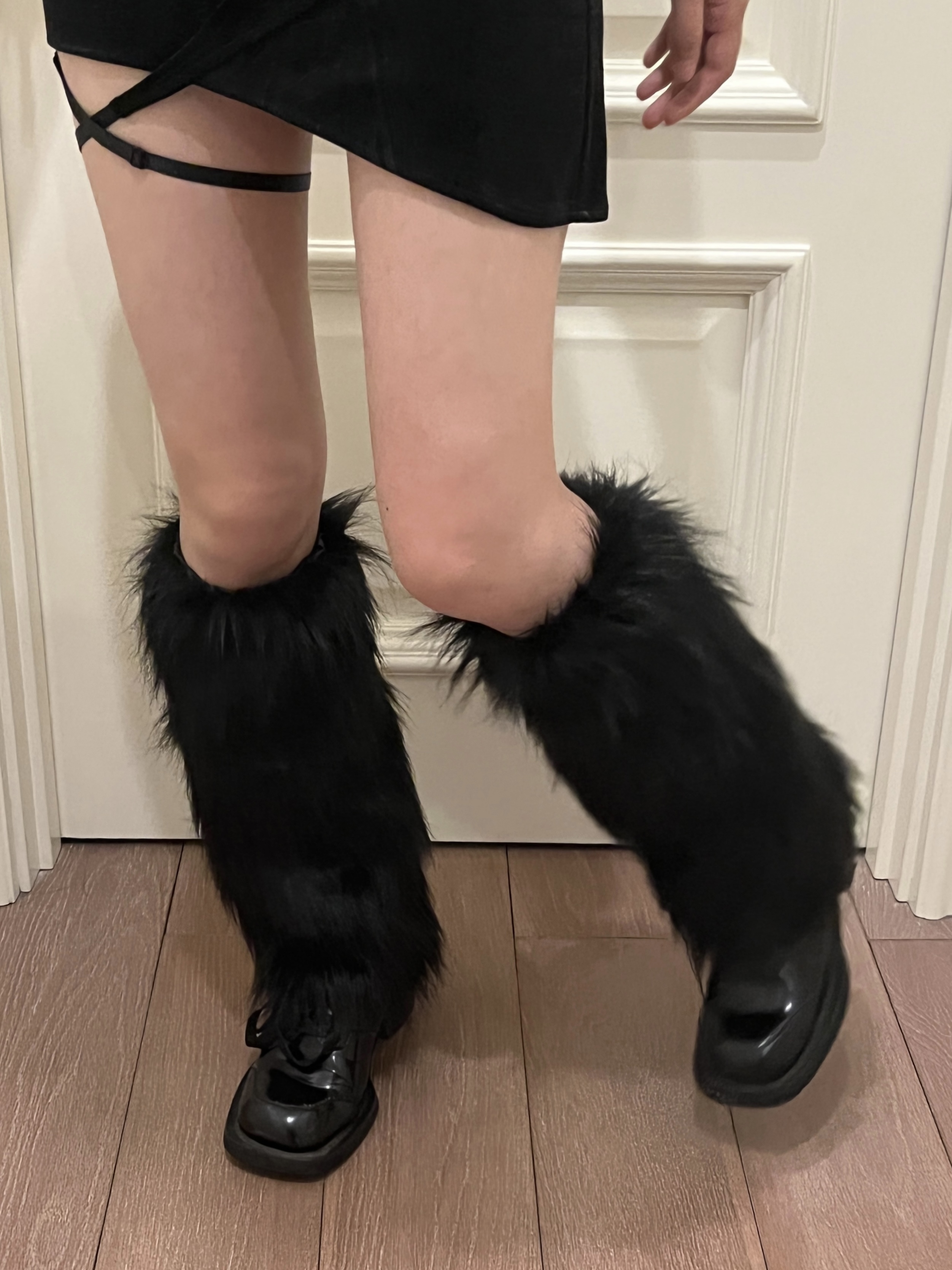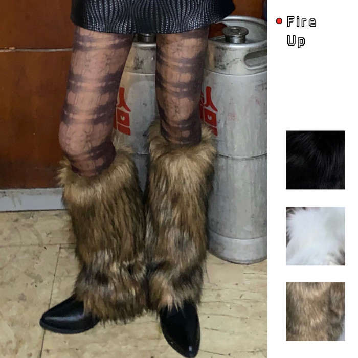 FireUp時髦Y2K毛毛腿套長毛仿皮草千禧辣妹秋冬保暖堆堆襪個性