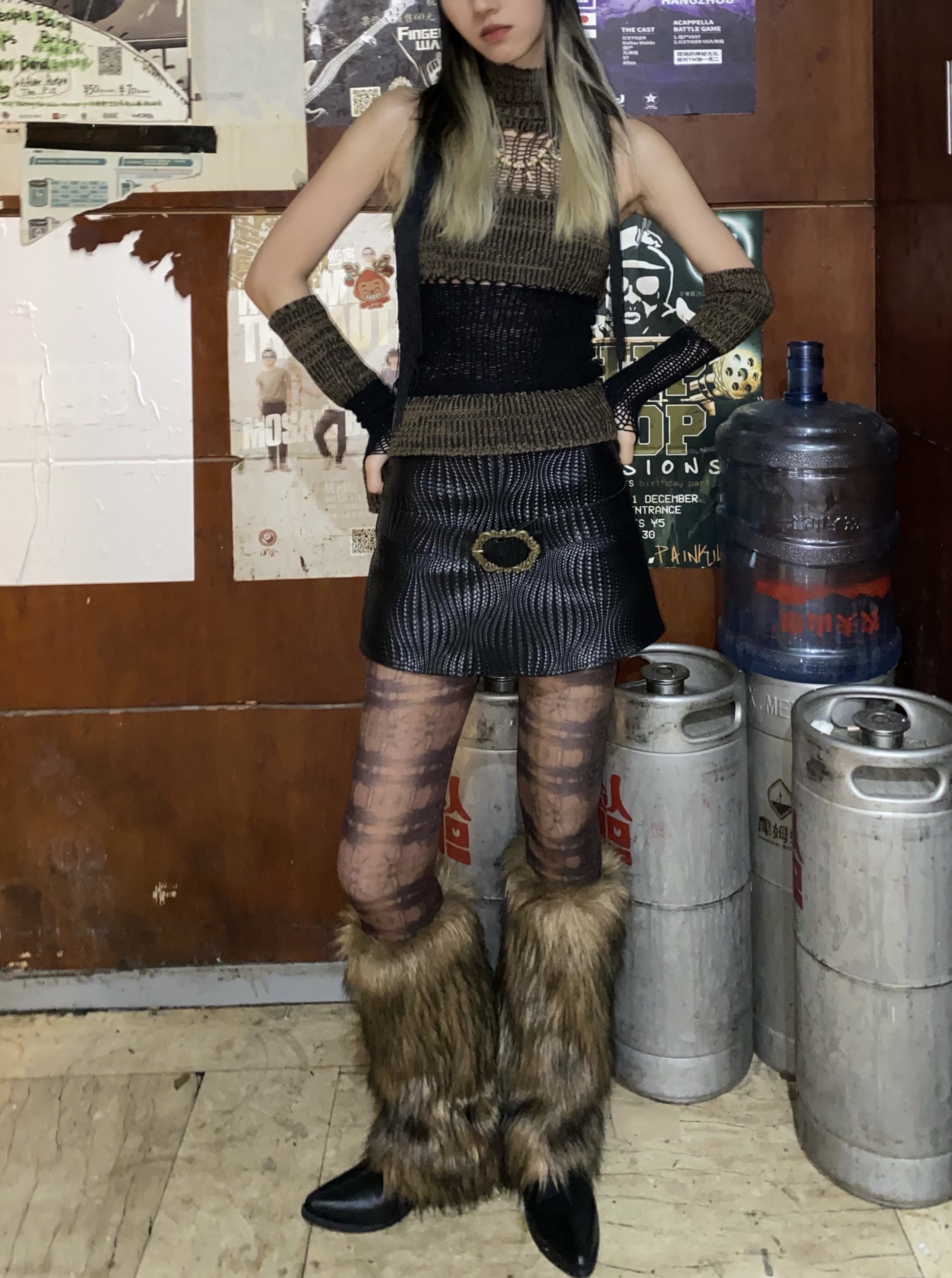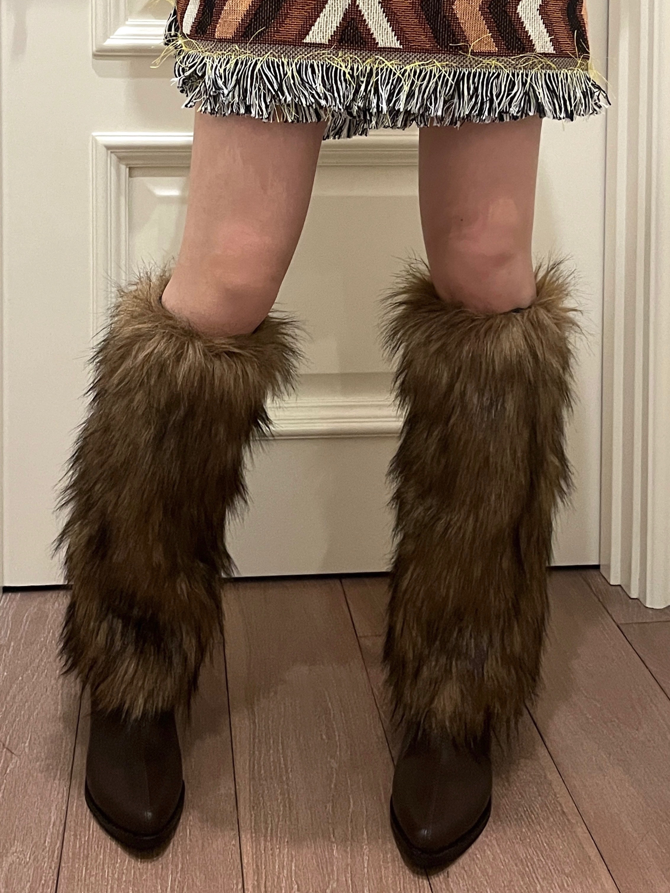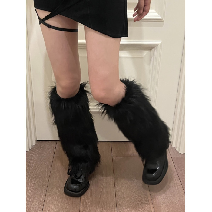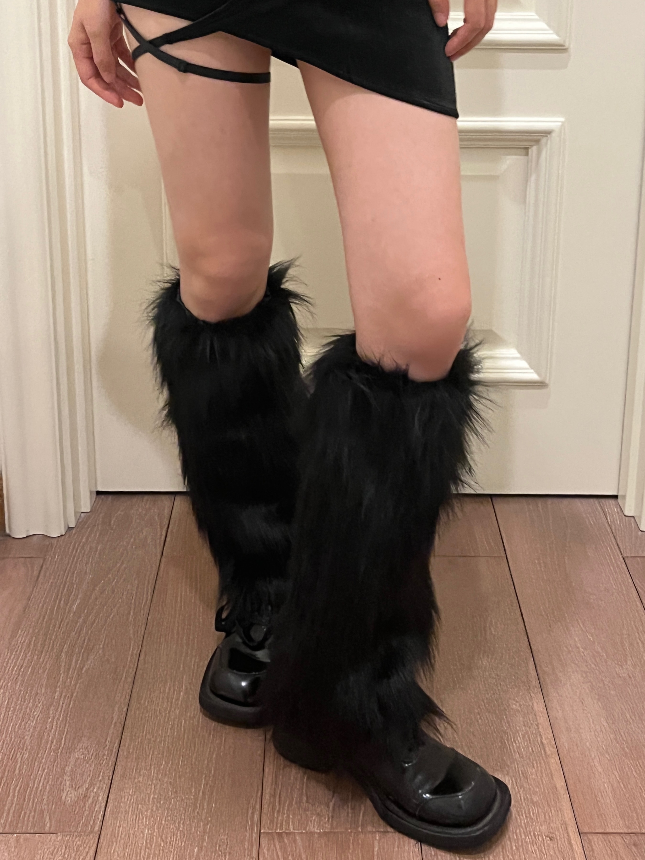 FireUp時髦Y2K毛毛腿套長毛仿皮草千禧辣妹秋冬保暖堆堆襪個性