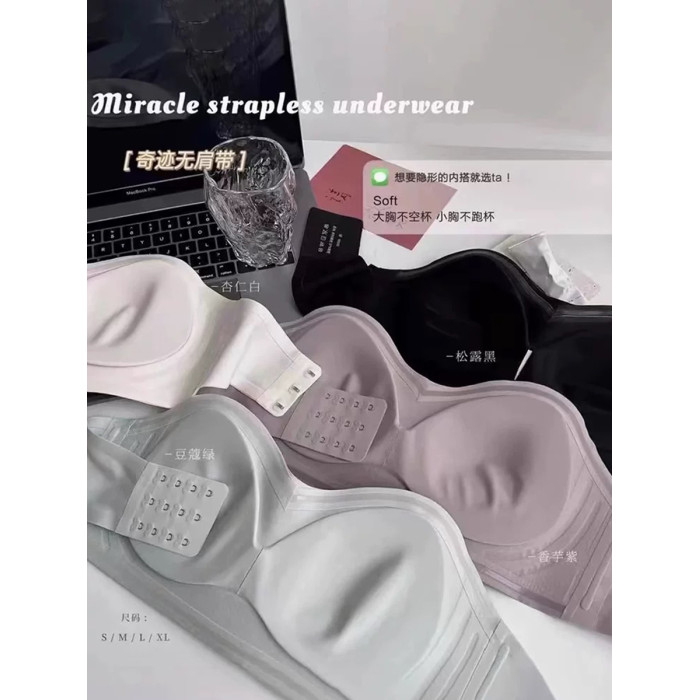 超級穩!無肩帶抹胸裹胸女士內衣新款無痕防滑小胸聚攏無鋼圈文胸