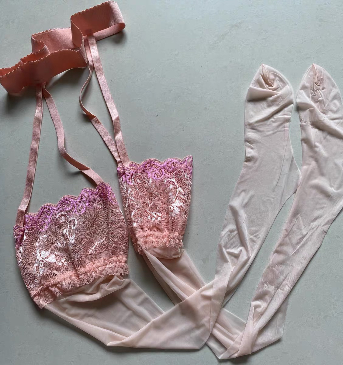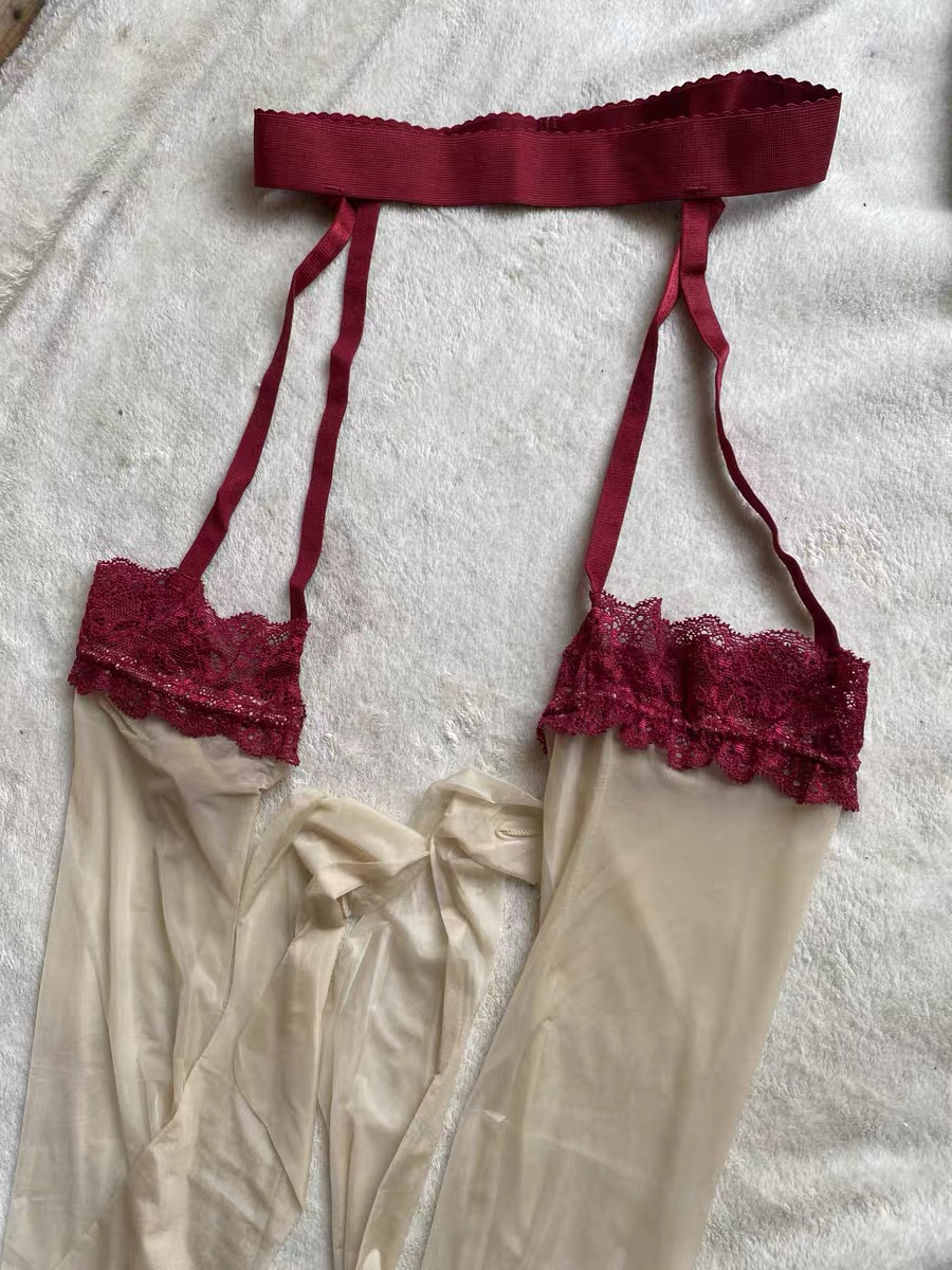 極柔高密超絲滑蕾絲大腿長筒襪吊帶一體式超薄油亮光高筒過膝絲襪