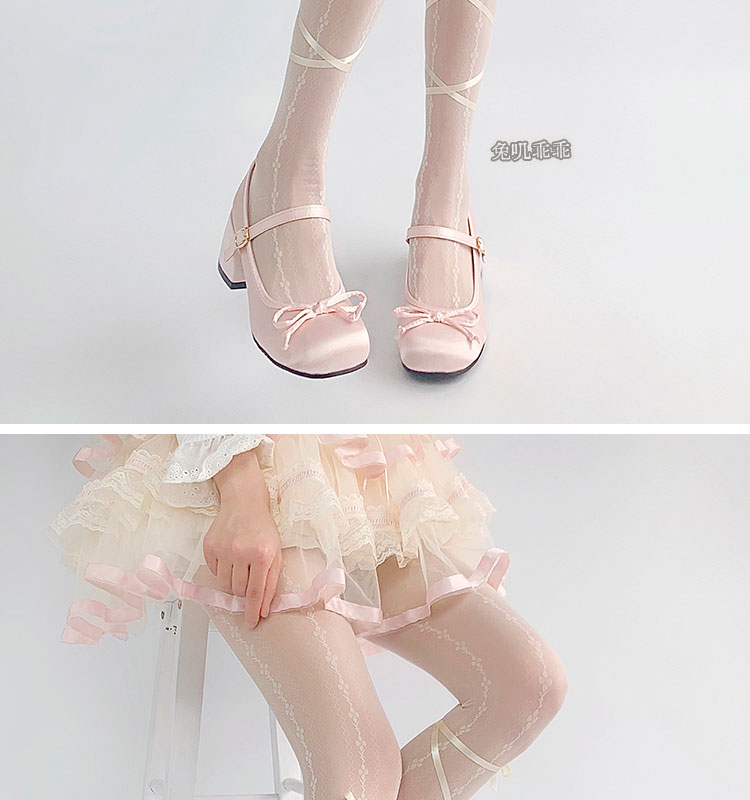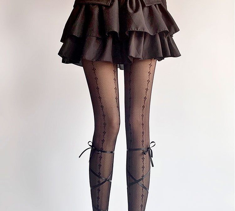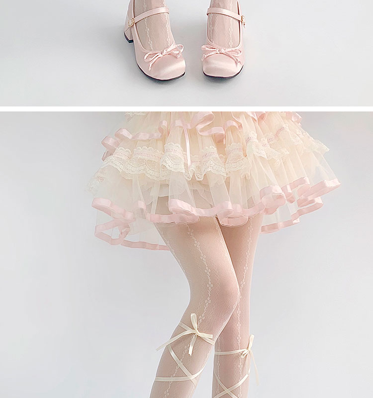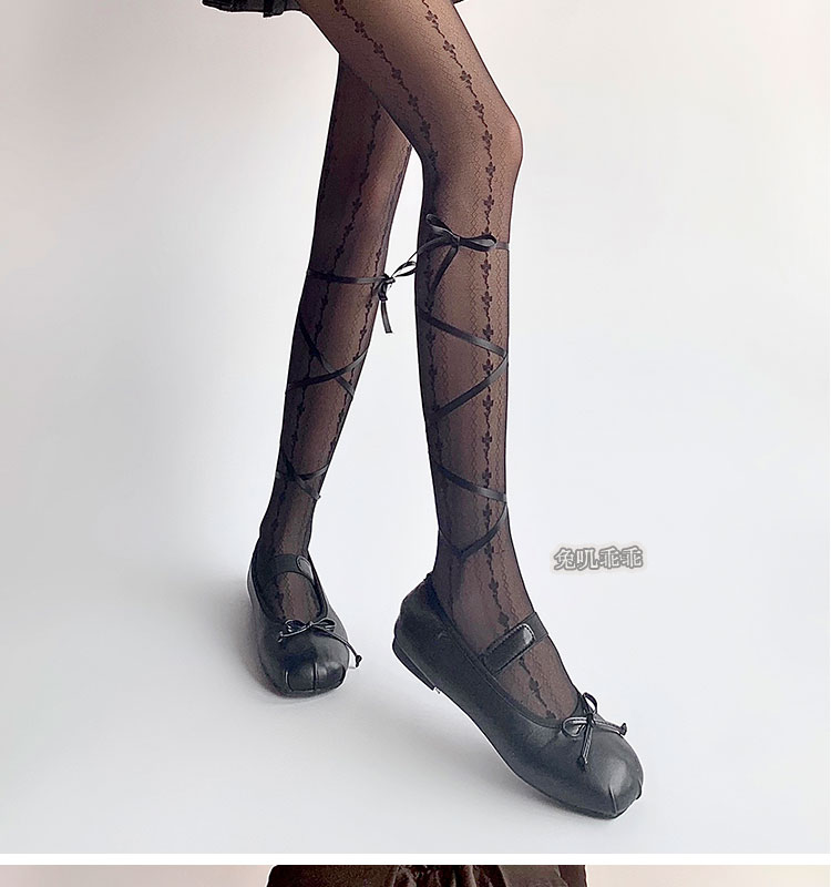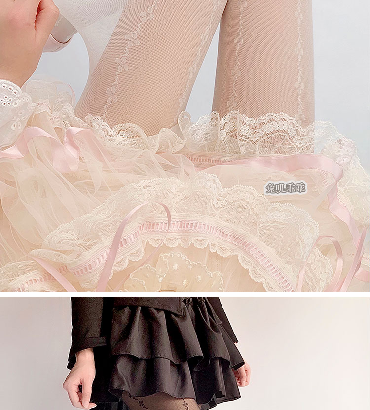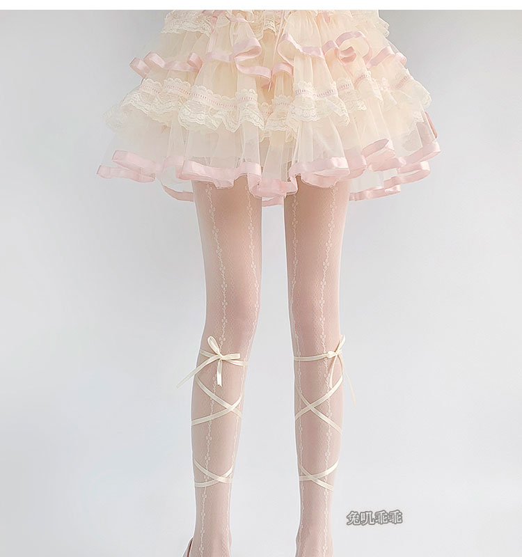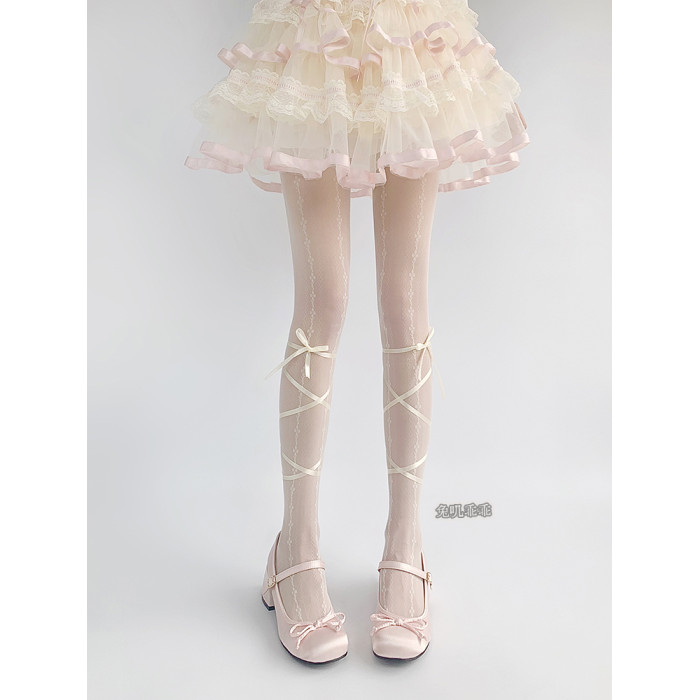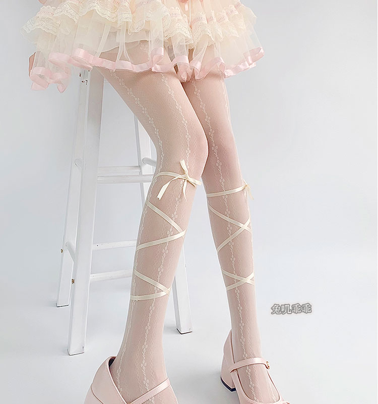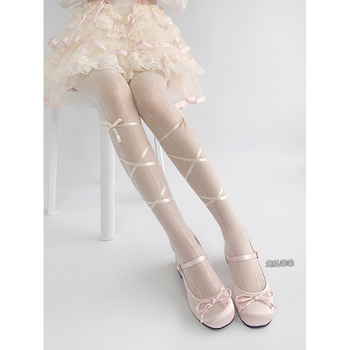 甜美洛麗塔奶白色連褲襪蕾絲提花芭蕾風黑絲襪女薄款打底襪防勾絲