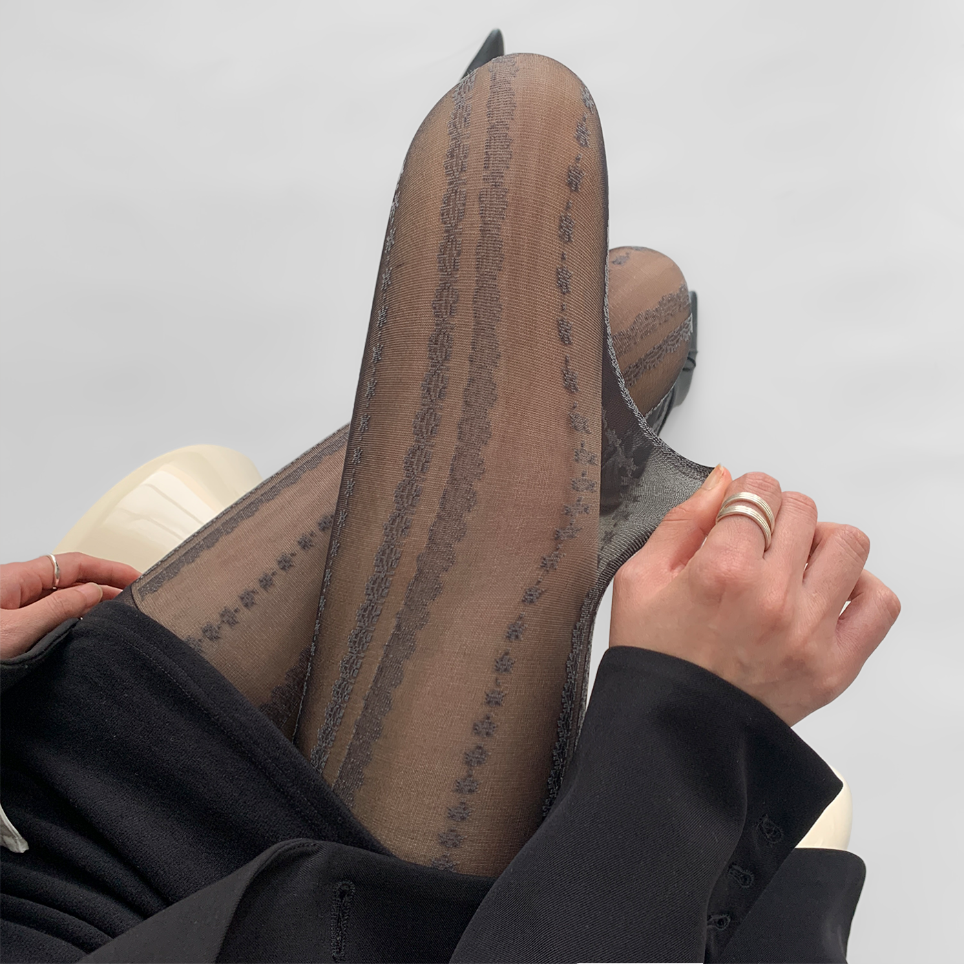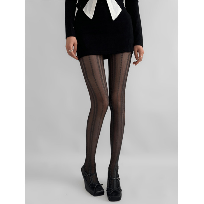 夜間教習室提花黑色絲襪女春秋竪條紋性感黑絲防勾絲打底襪子白絲