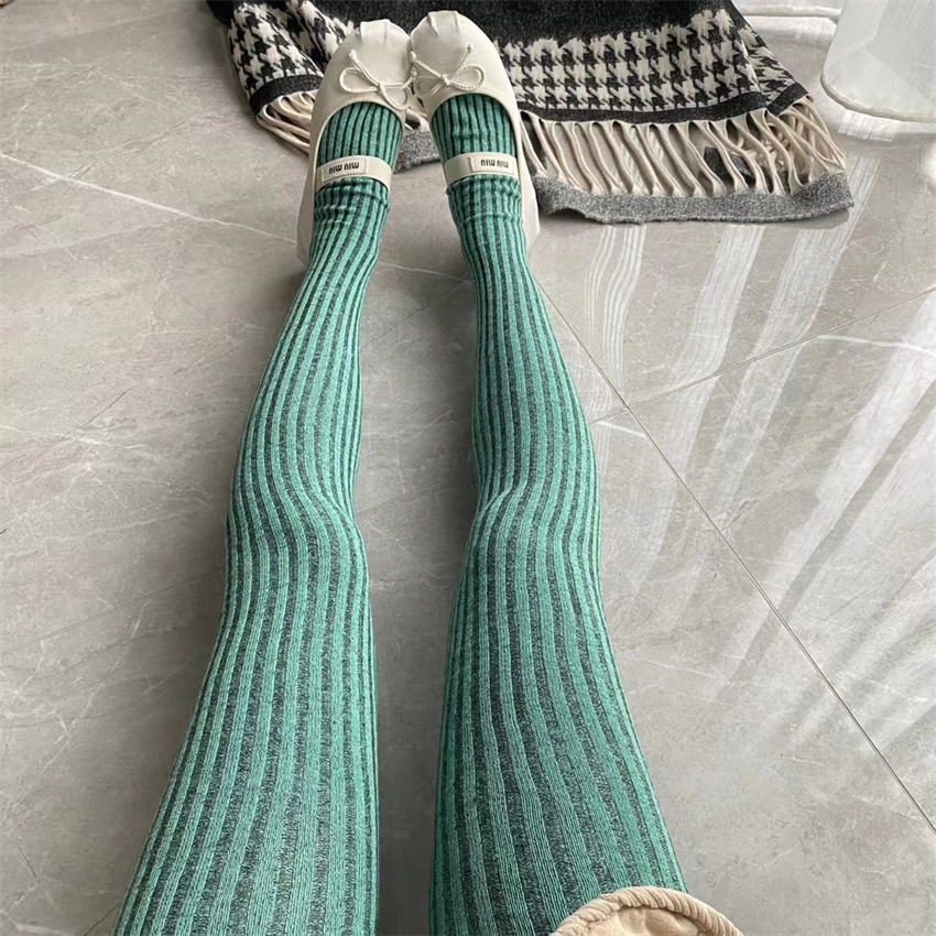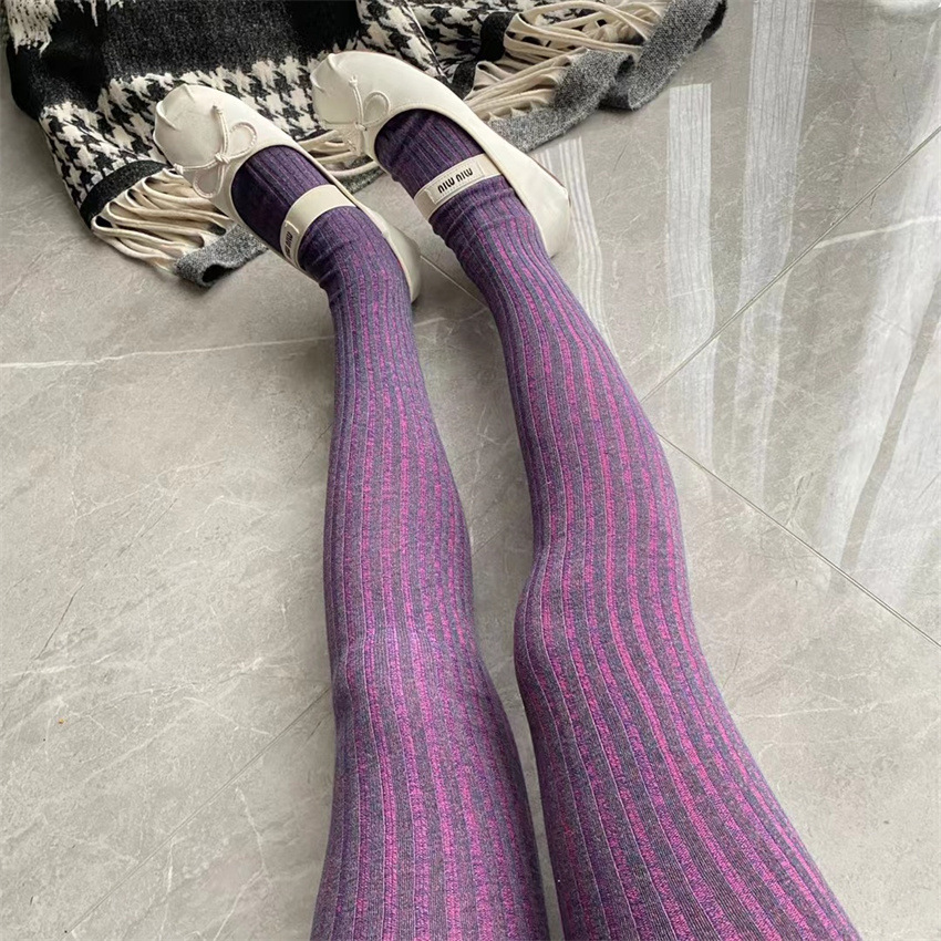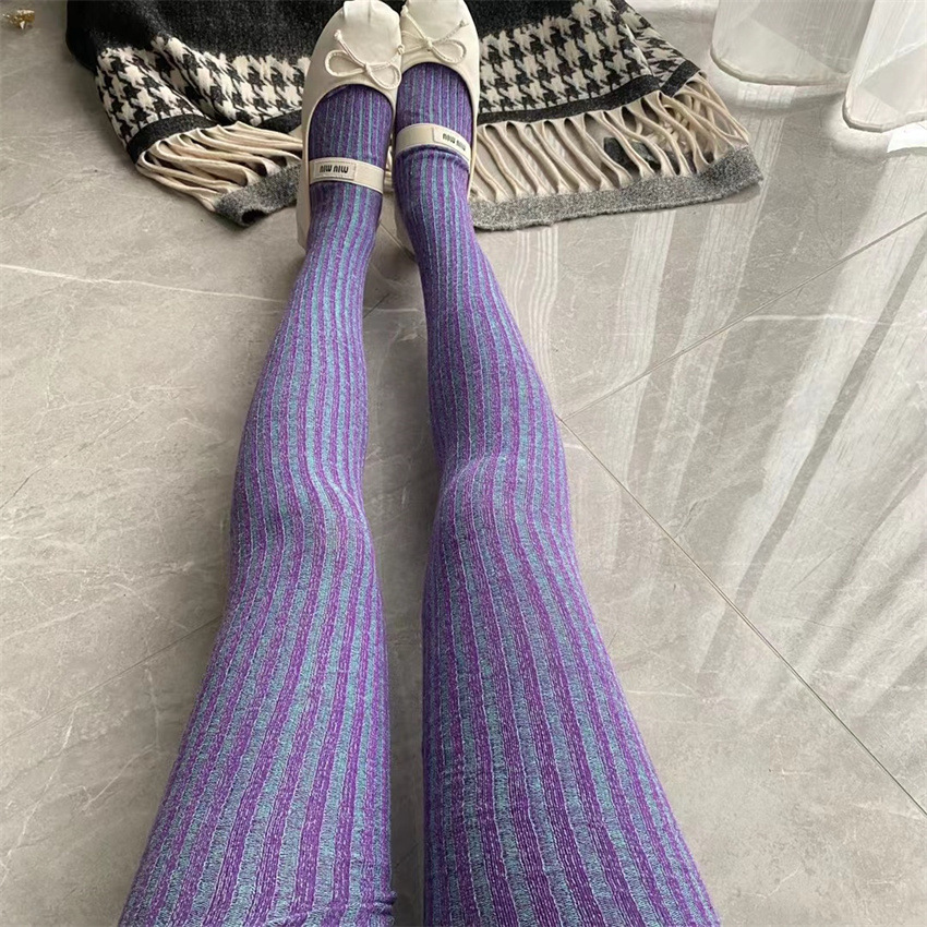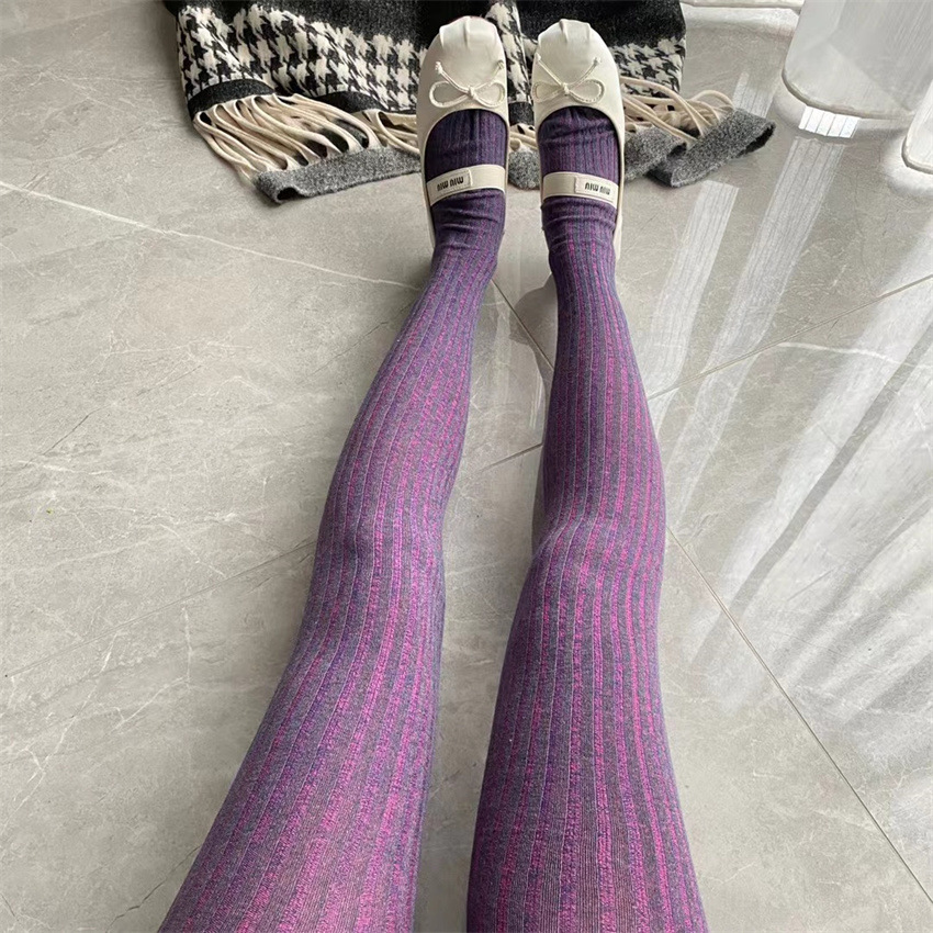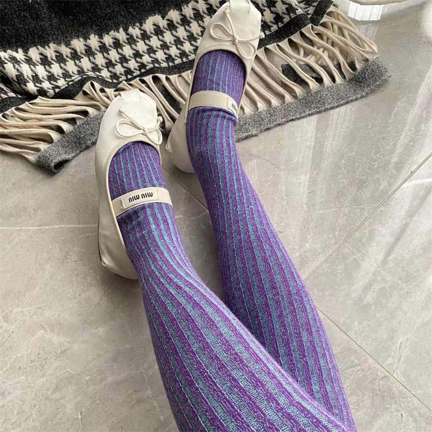 小香風秀款打底褲襪韓國東大門混色寬條連褲襪棉質彩色潮襪瘦腿襪