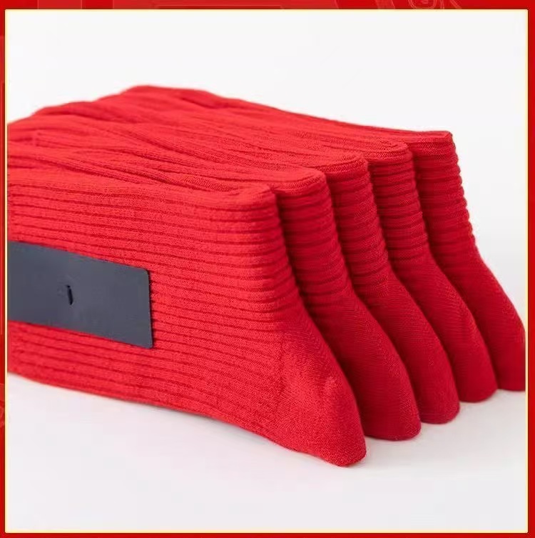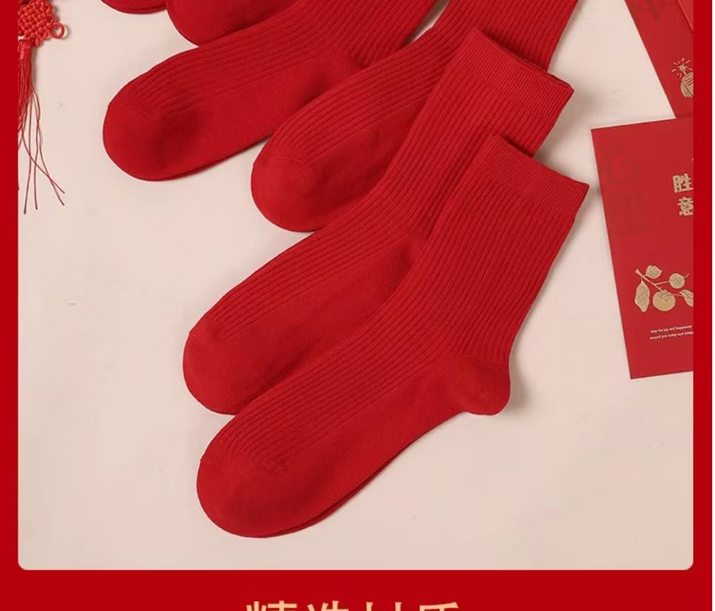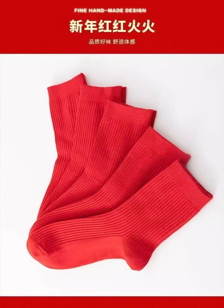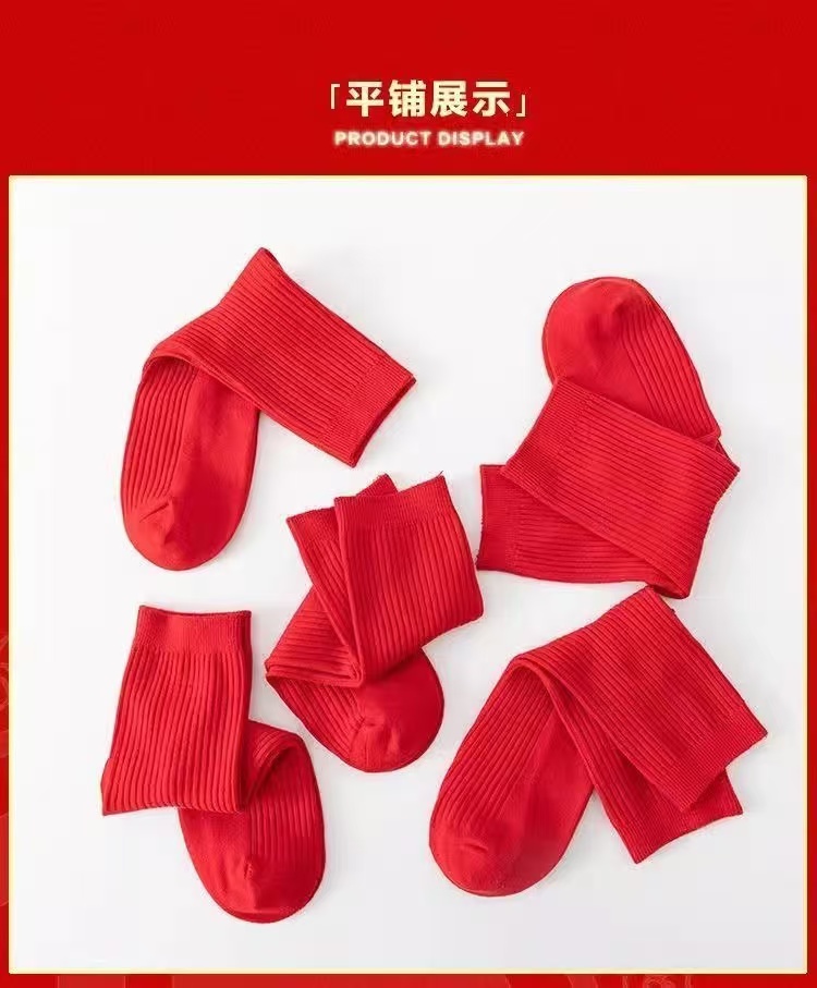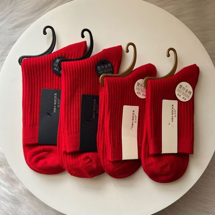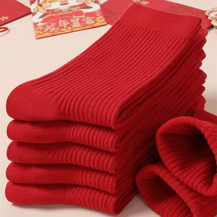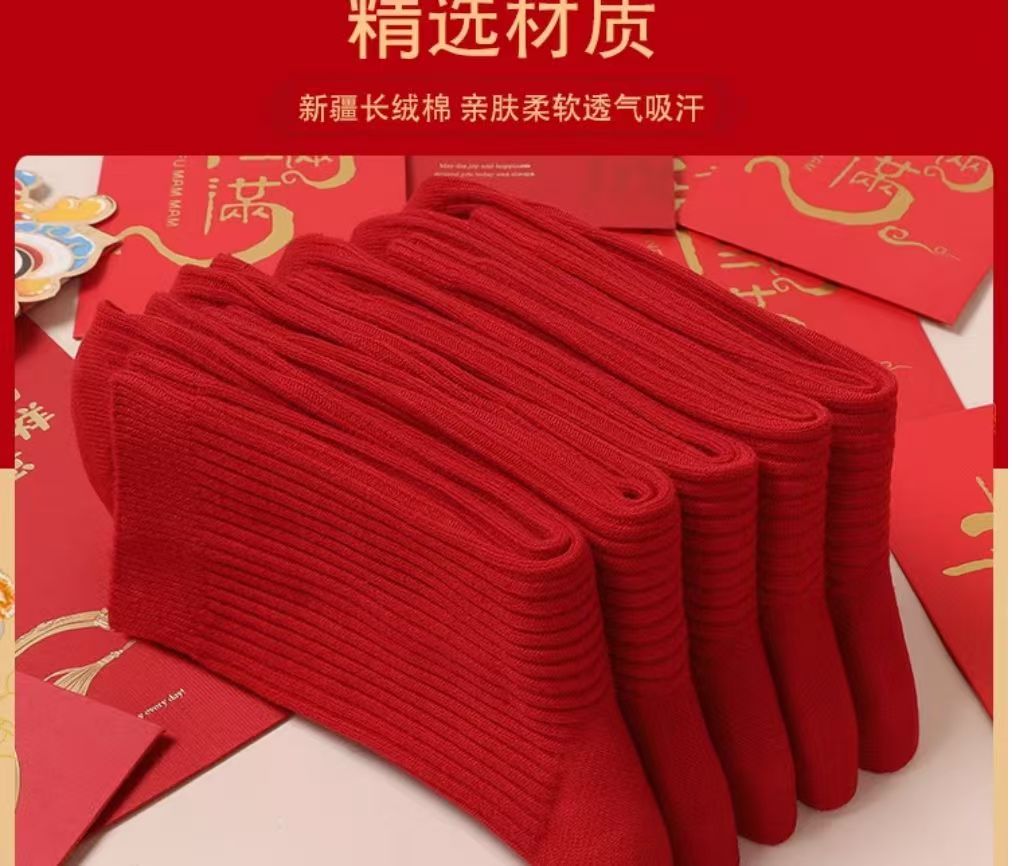 紅襪子本命年純棉紅色襪子男女款中筒襪2025秋冬情侶結婚大紅長襪