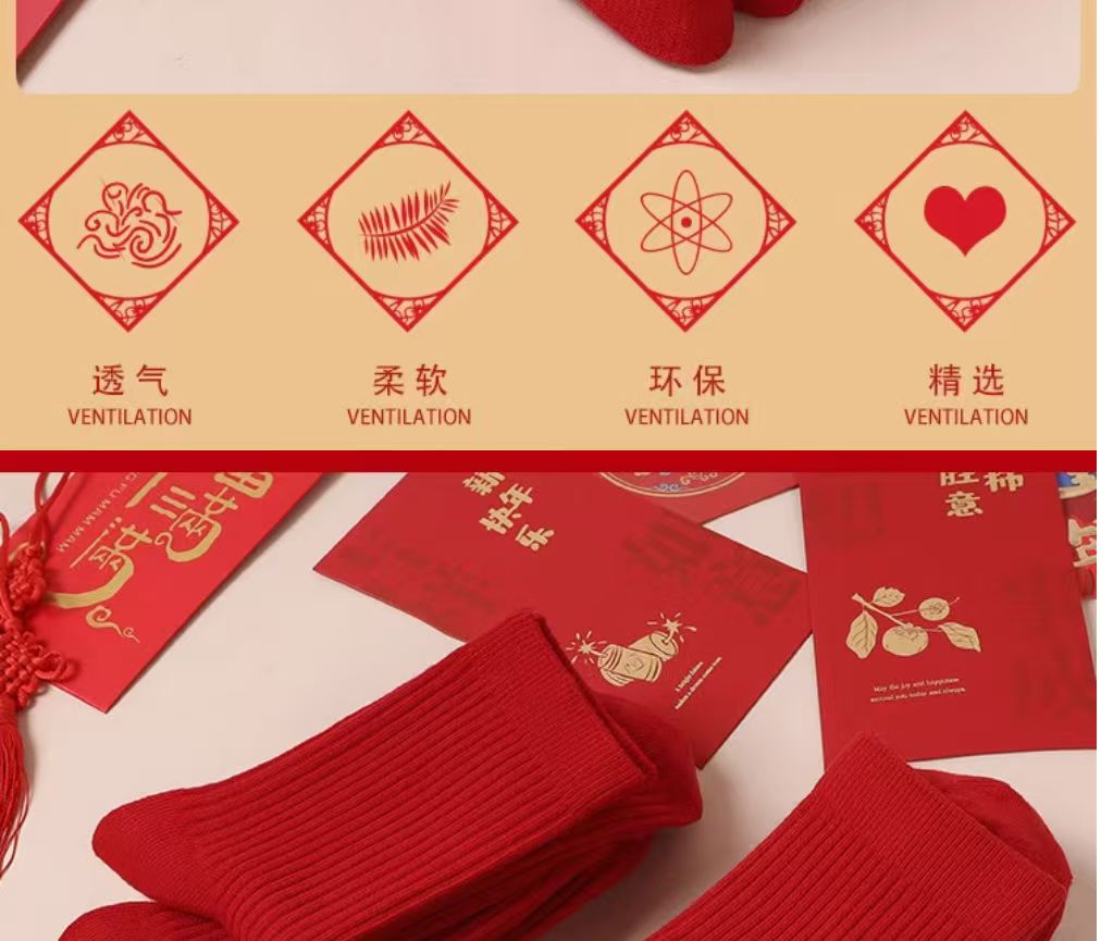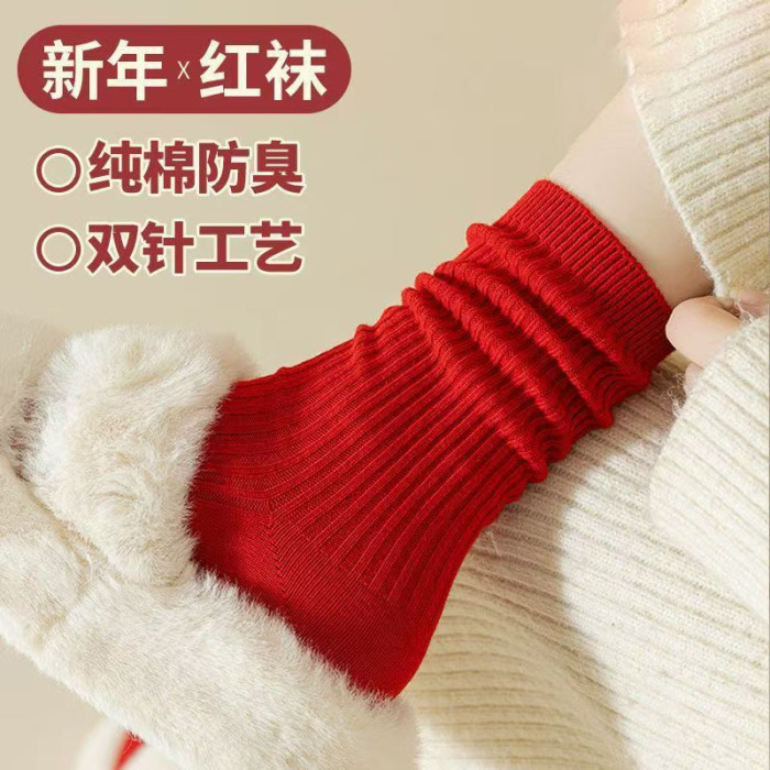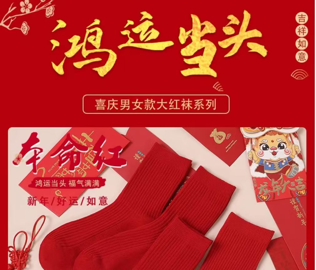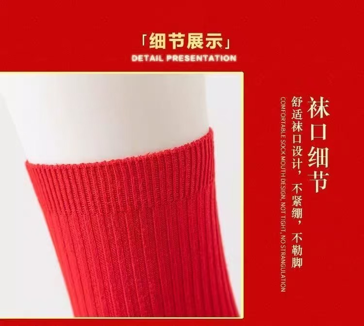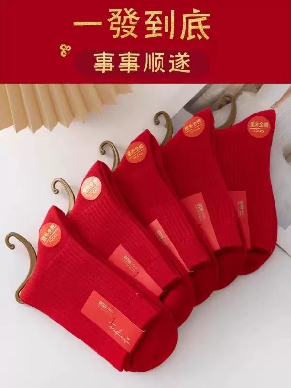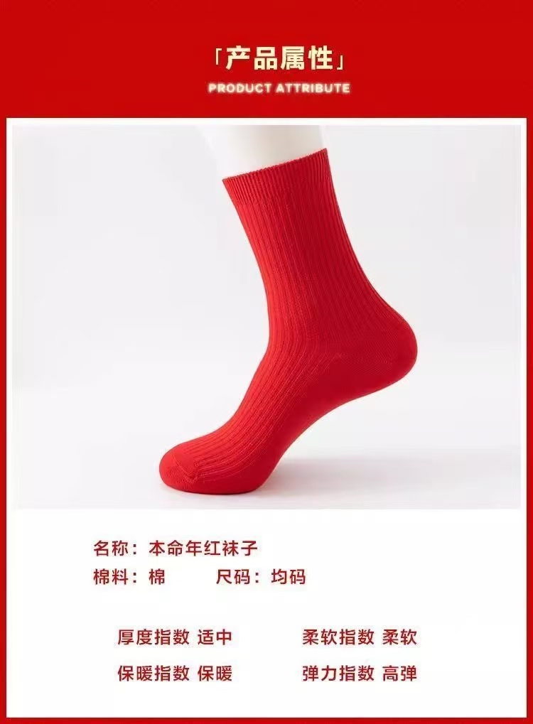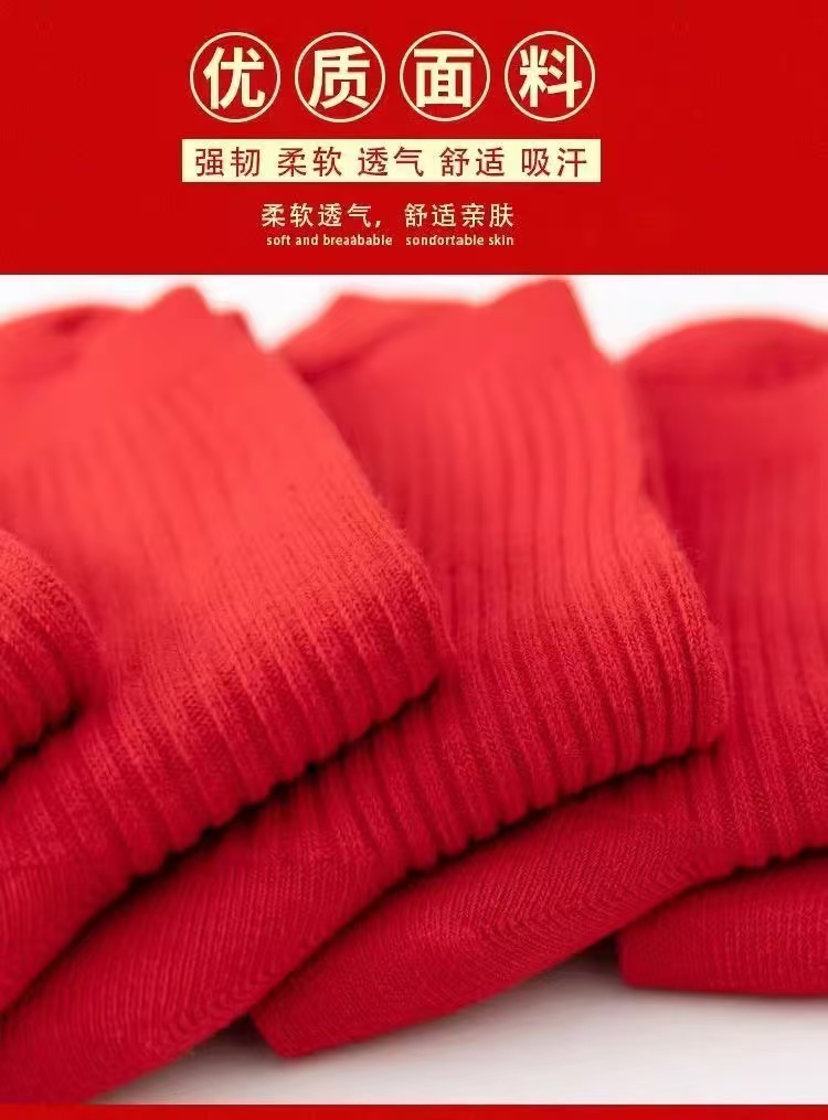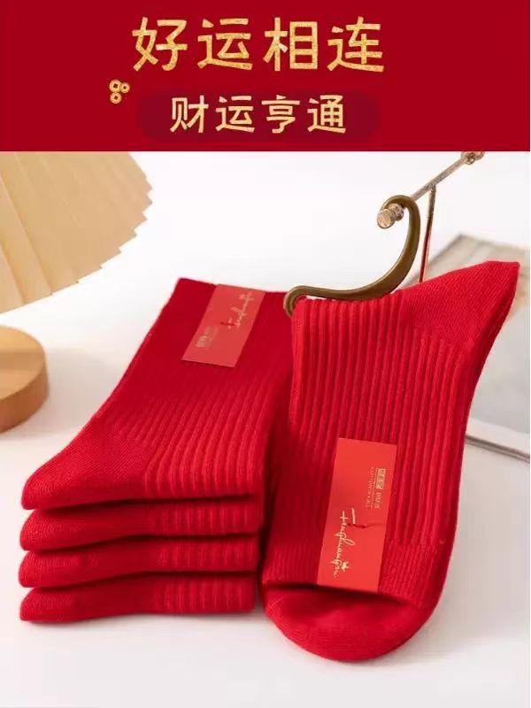 紅襪子本命年純棉紅色襪子男女款中筒襪2025秋冬情侶結婚大紅長襪