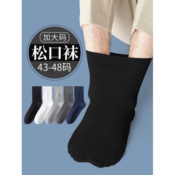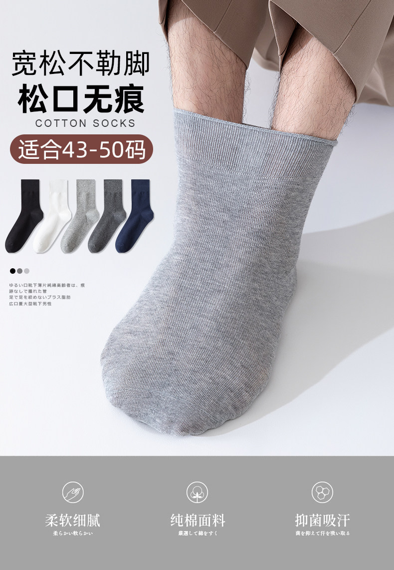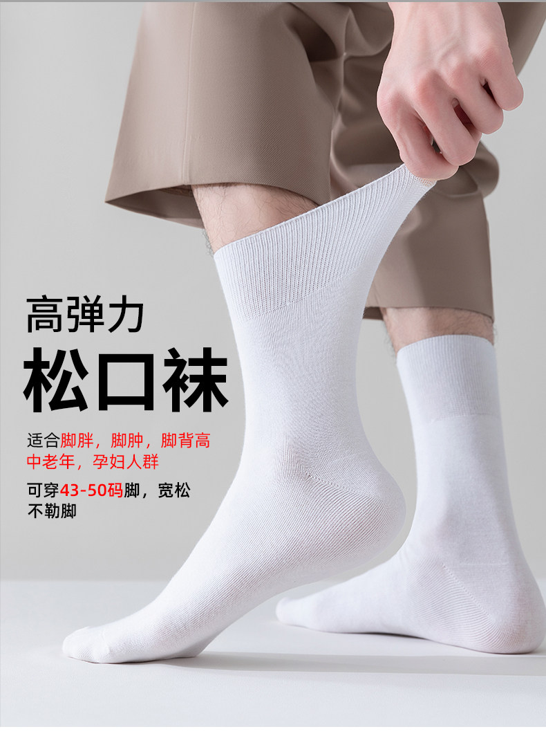 老年人松口襪男士純棉冬季春秋中筒襪老人腳腫不勒寬松口大碼襪子