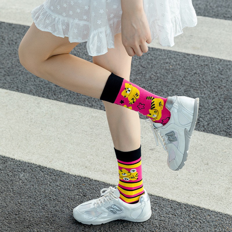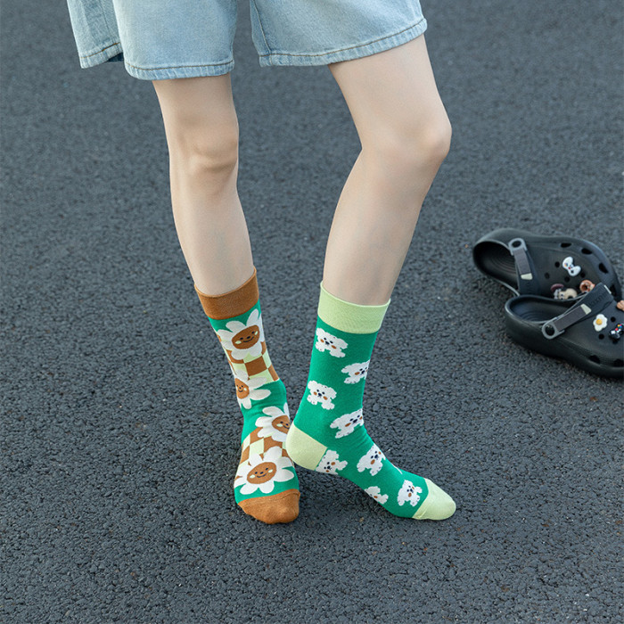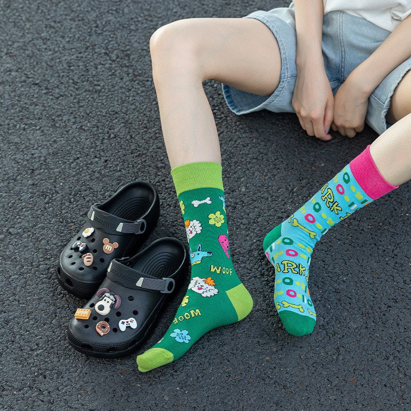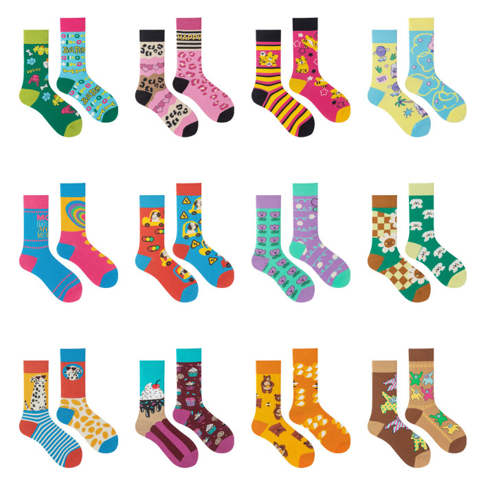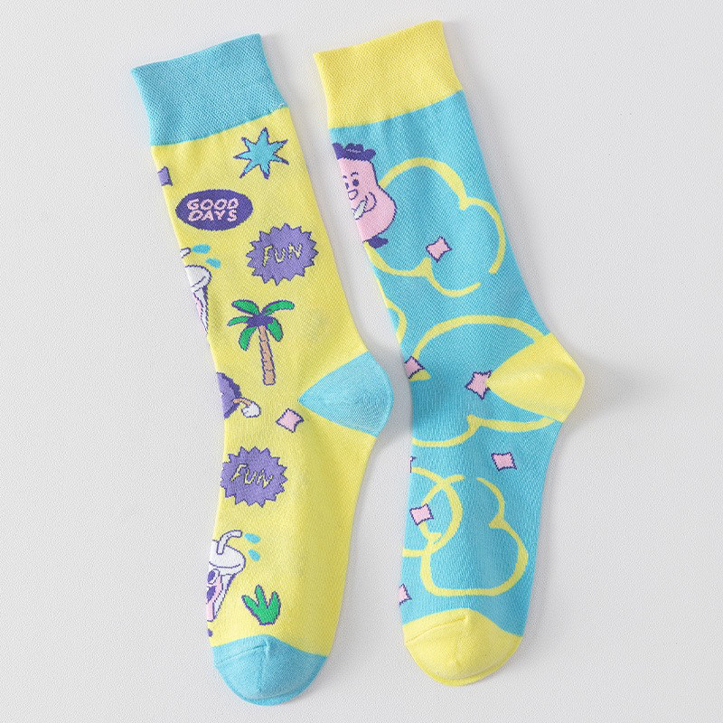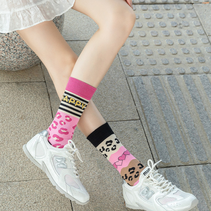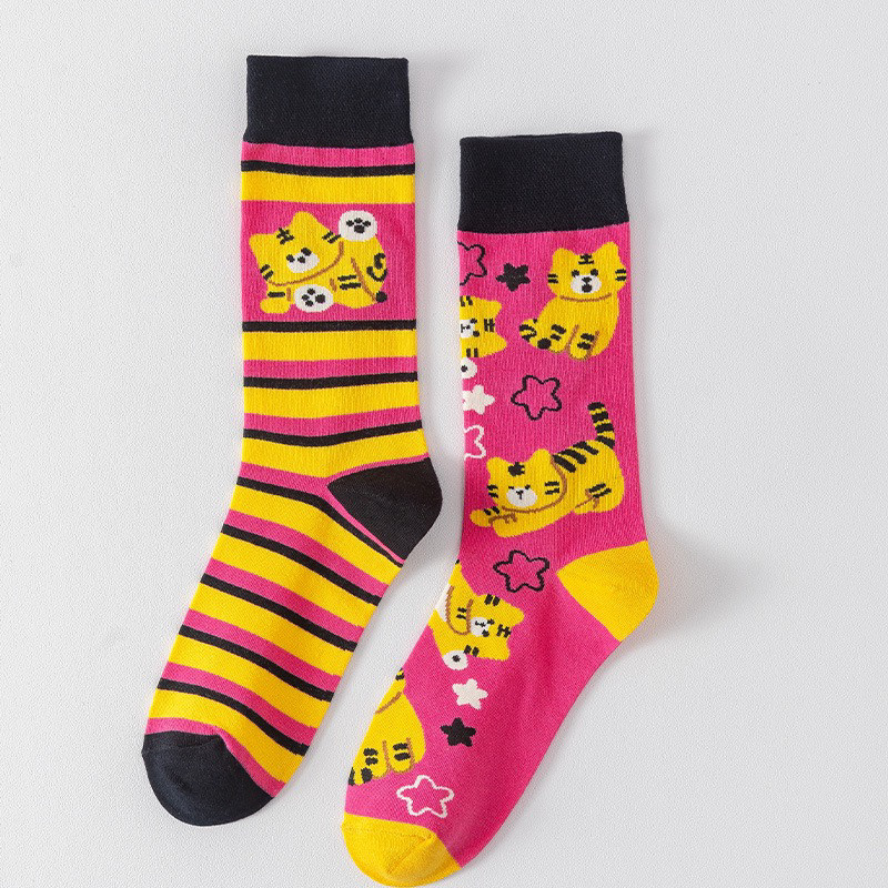 襪子女不對稱AB中筒襪ins潮流可愛卡通豹紋男女襪個性提花潮棉襪
