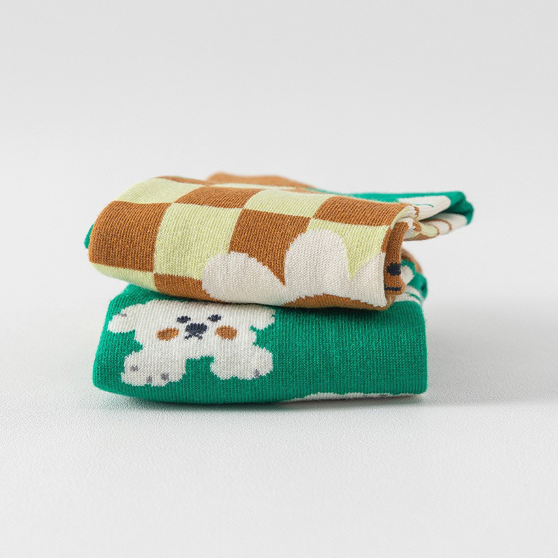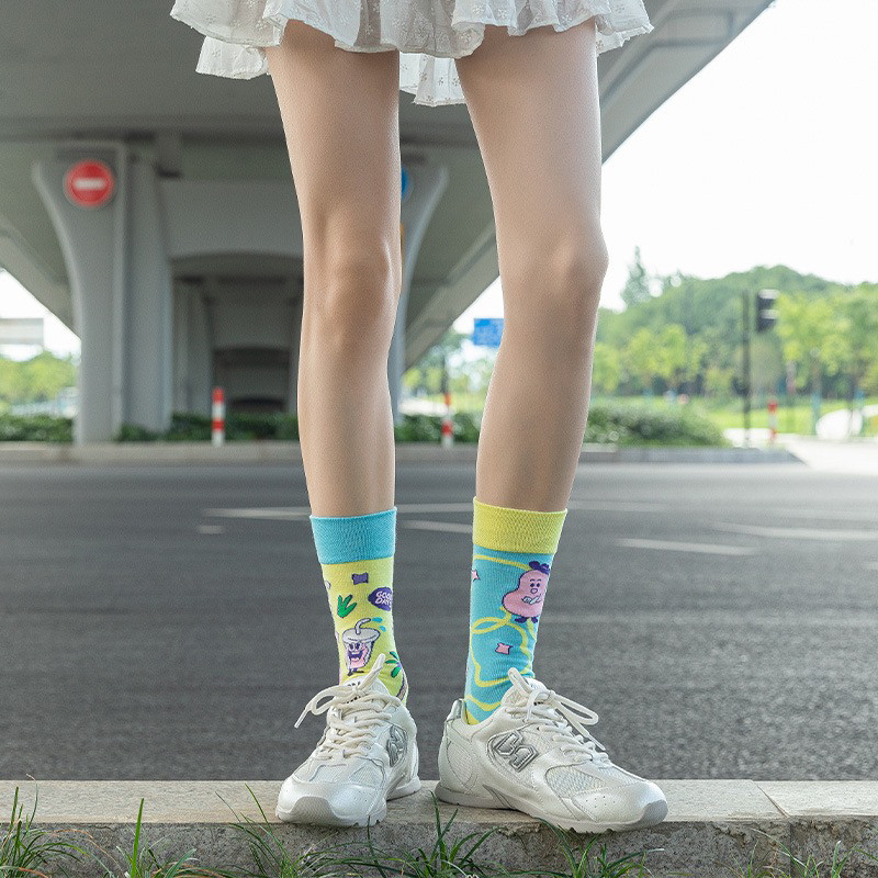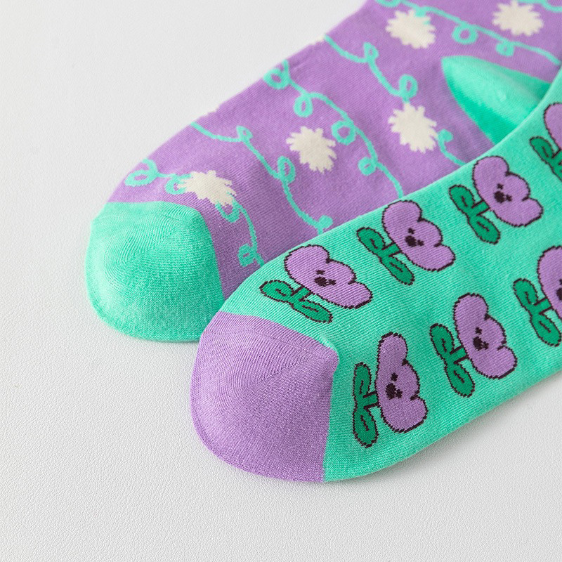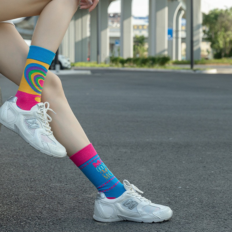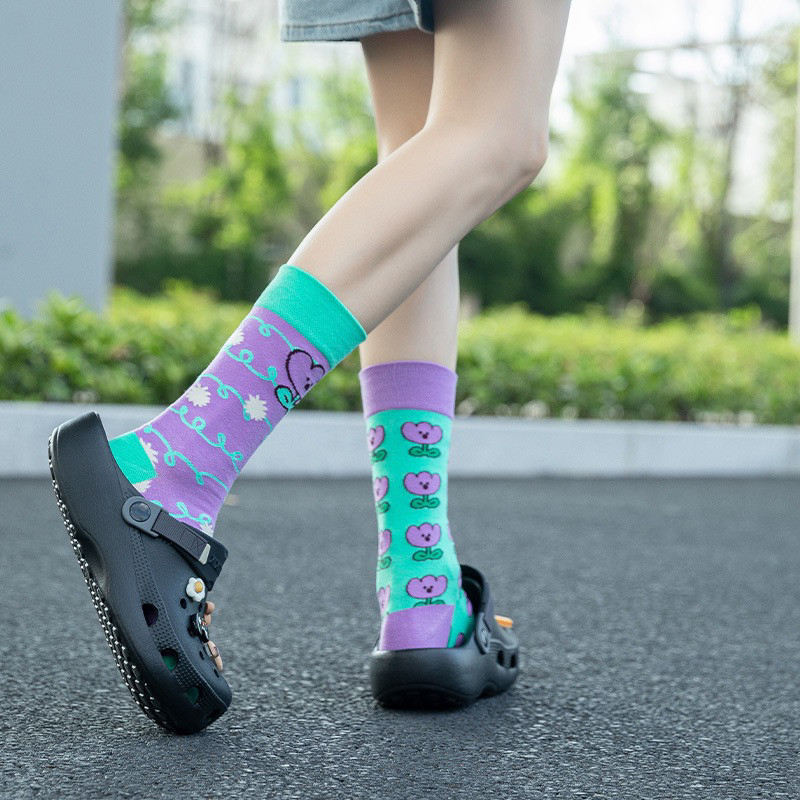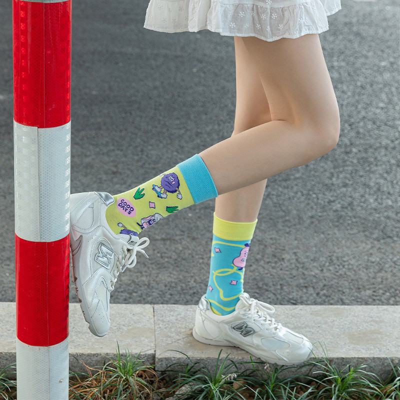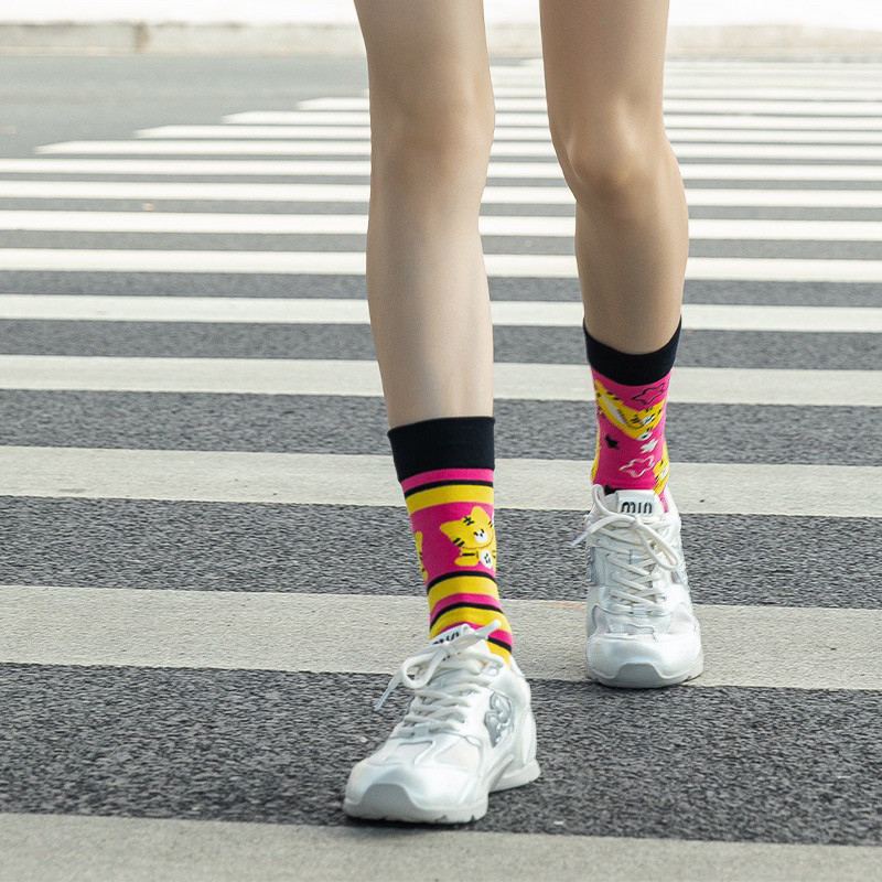 襪子女不對稱AB中筒襪ins潮流可愛卡通豹紋男女襪個性提花潮棉襪