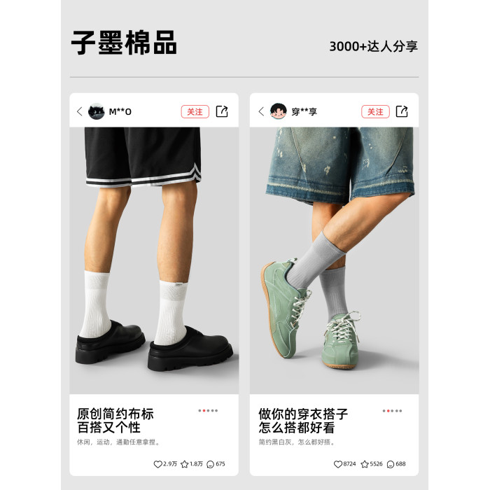 子墨襪子男士7A抗菌防臭純棉長筒布標秋冬薄款青少年休閒長襪男生