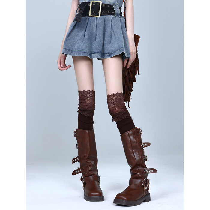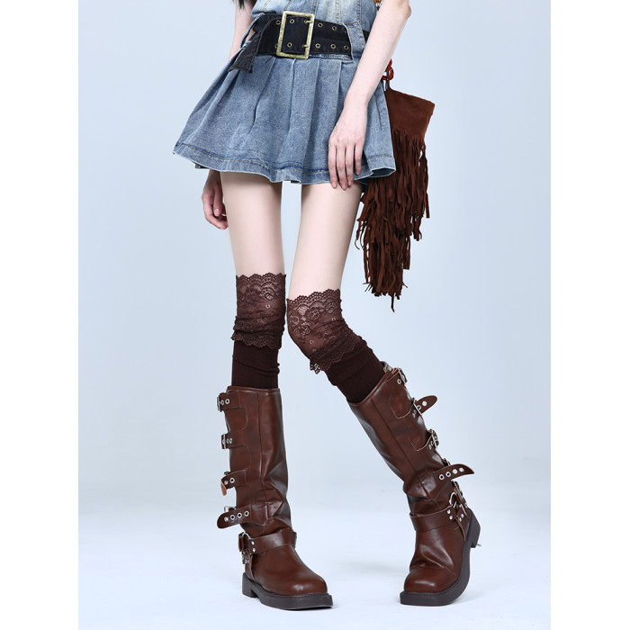 秋季拼接蕾絲小腿襪花邊配靴子個性復古美式靴襪美拉德堆堆襪子女