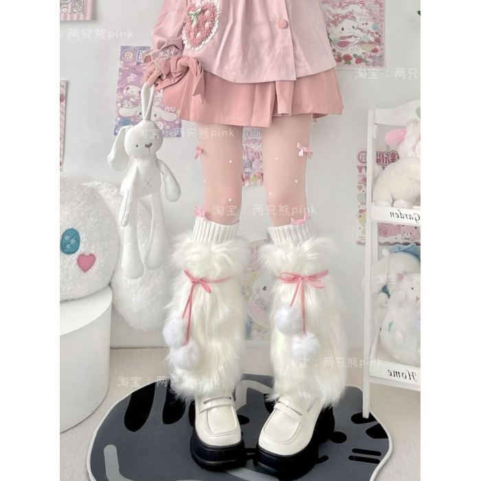 Lolita襪子Y2K甜酷辣妹仿皮草護腿套保暖加厚蝴蝶結襪套毛毛襪