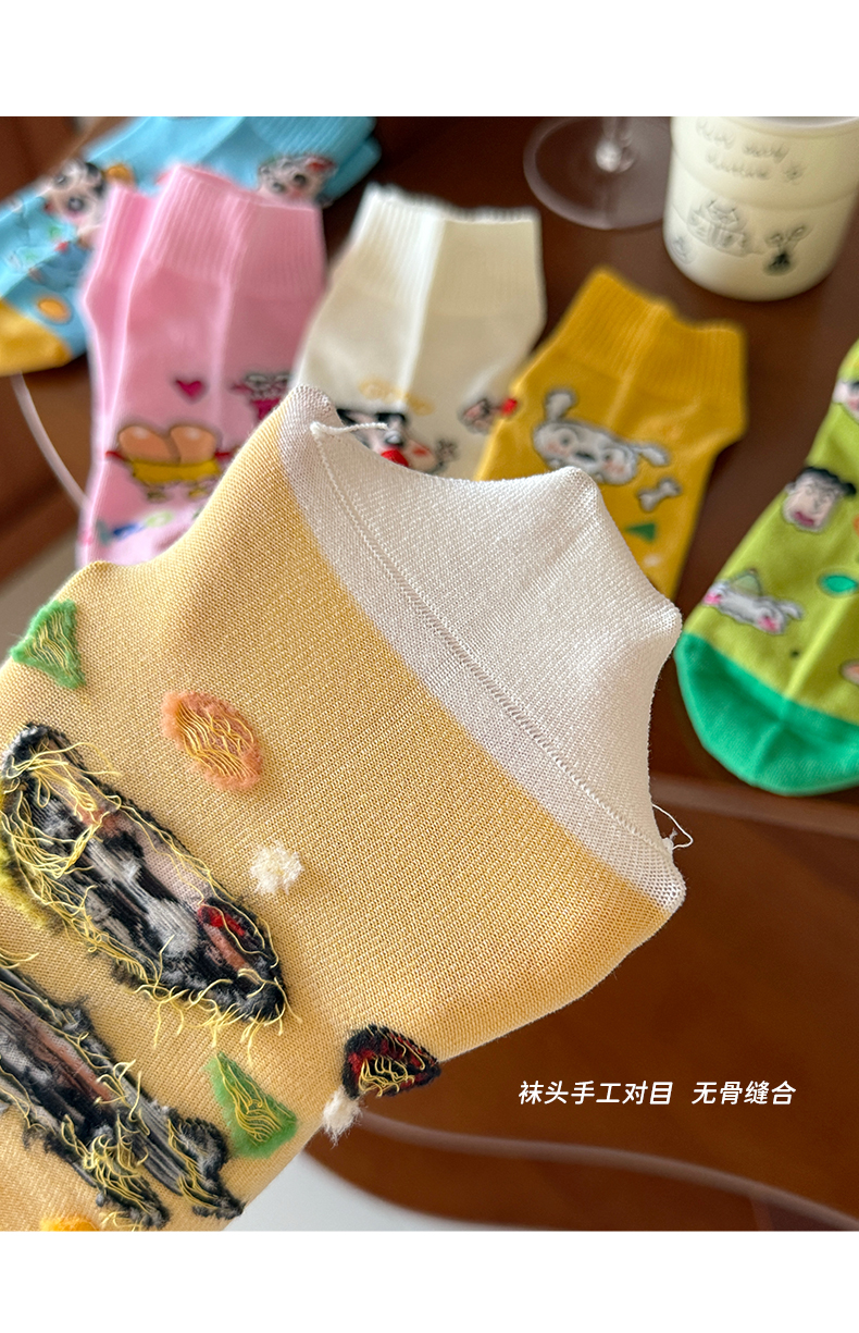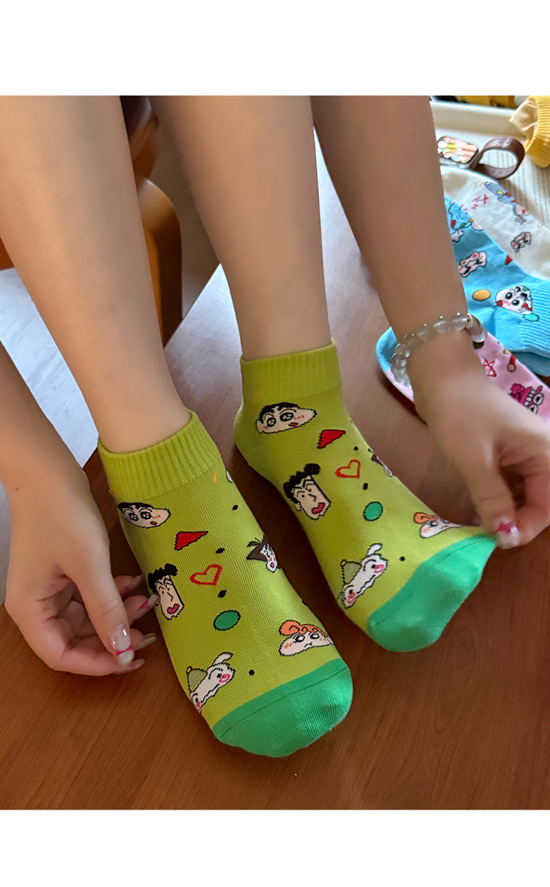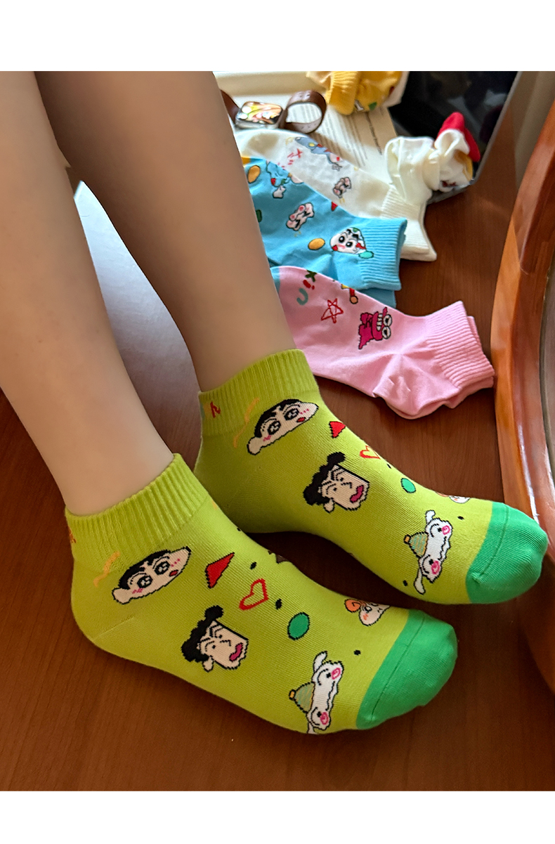 綠色無骨可愛襪子女純棉短襪夏天薄款吸汗運動卡通低幫襪搞怪日系