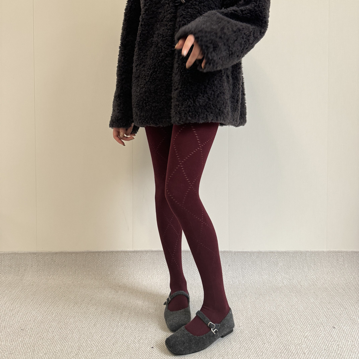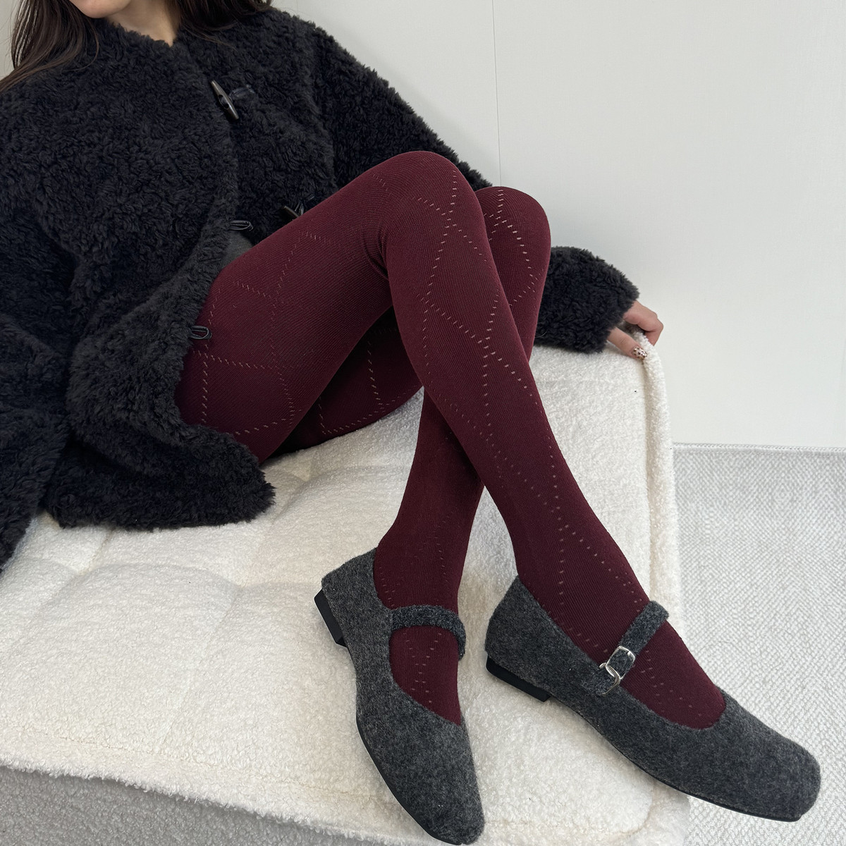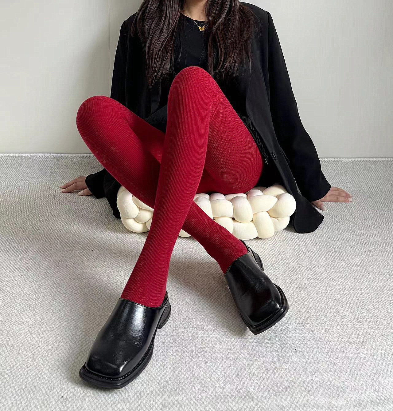 安可拉紅羊毛連褲襪外穿秋冬保暖加厚加絨條紋打底襪自髮熱直角跟