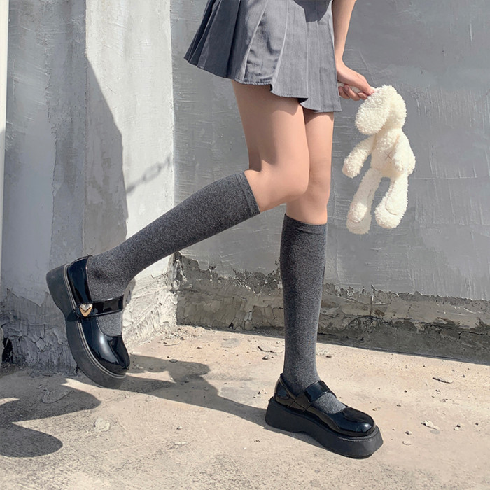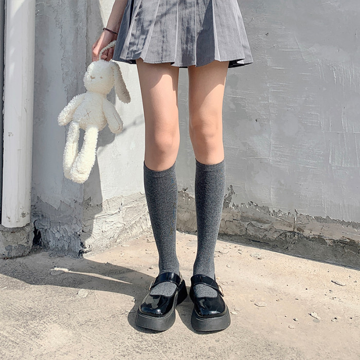 夜間教習室jk襪子女秋款日系灰色中筒小腿襪學院風長筒顯瘦壓力襪