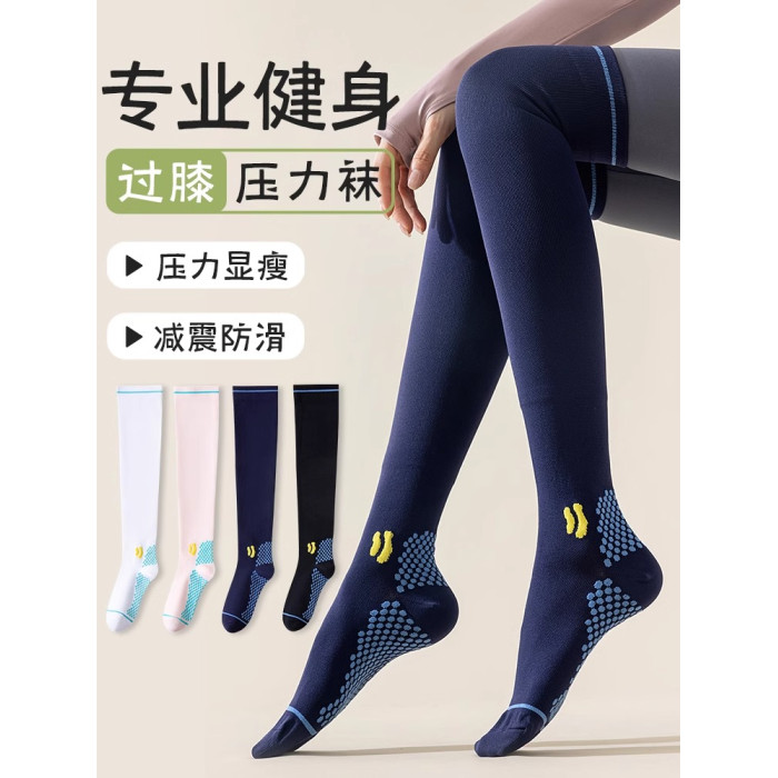 專業跑步運動壓力襪過膝小腿女士跳繩瘦腿爬山瑜珈騎行馬拉松透氣
