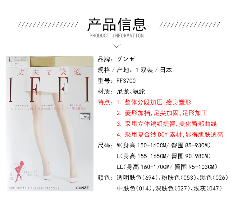 日本製GUNZE郡是IFFI水晶絲素肌透膚包芯絲連褲絲襪壓力襪FF3700