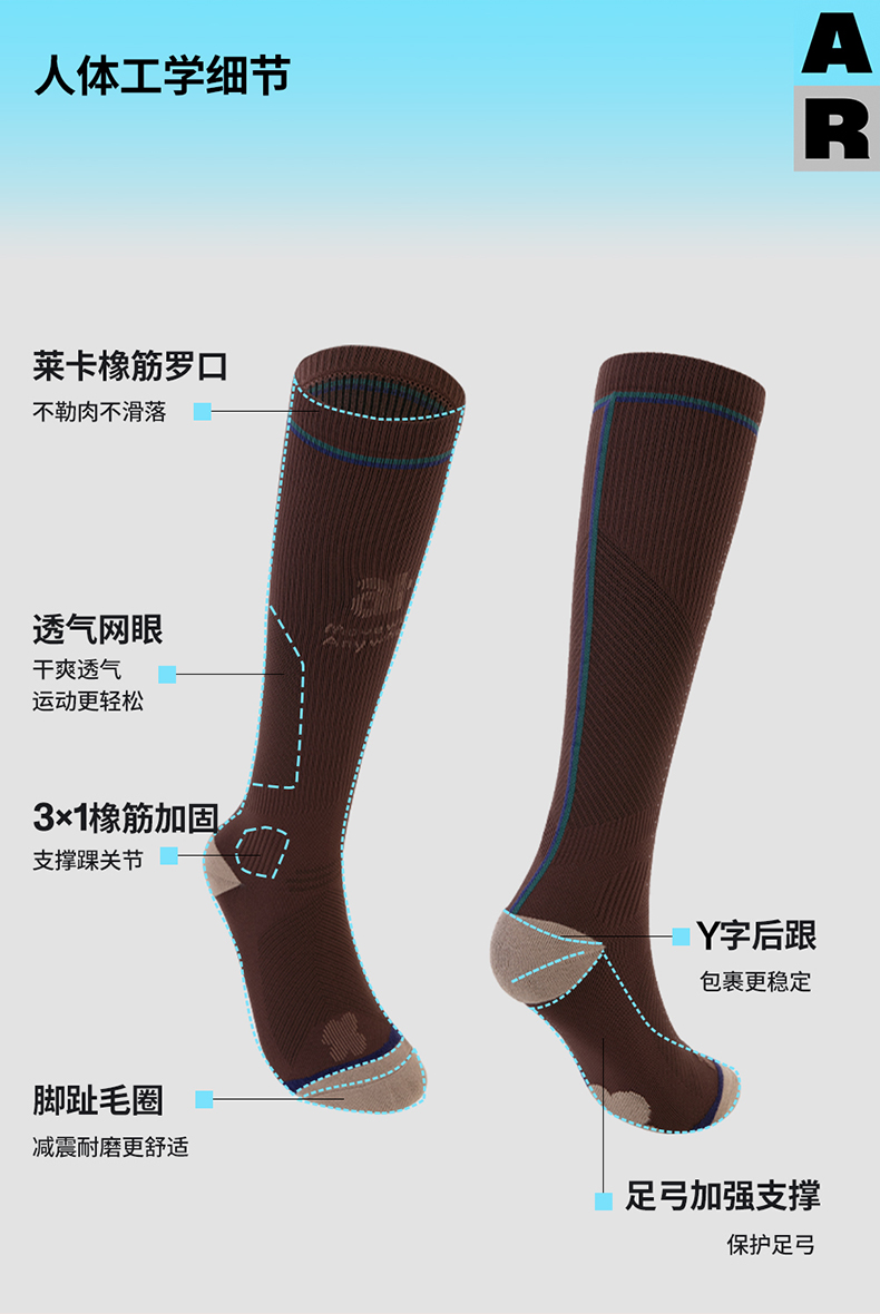 AR壓力小腿襪專業運動加壓小腿襪壓縮襪騎行跑步跳繩毛圈瘦腿長襪
