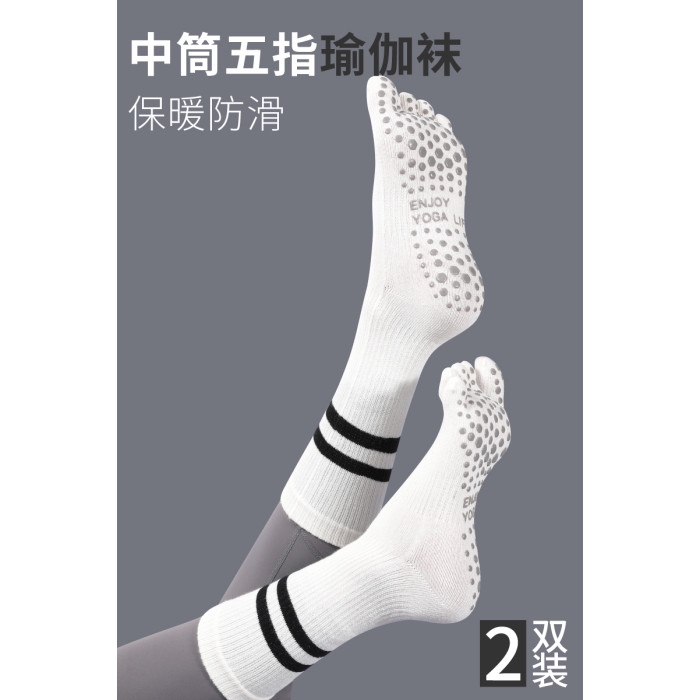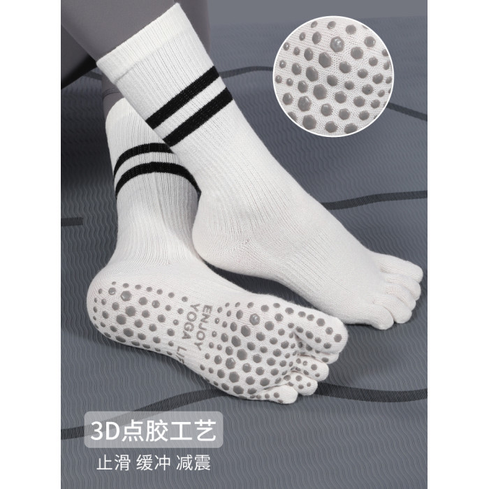 五指瑜珈襪普拉提女式運動襪防滑專業純棉中筒分趾壓力襪健身跑步