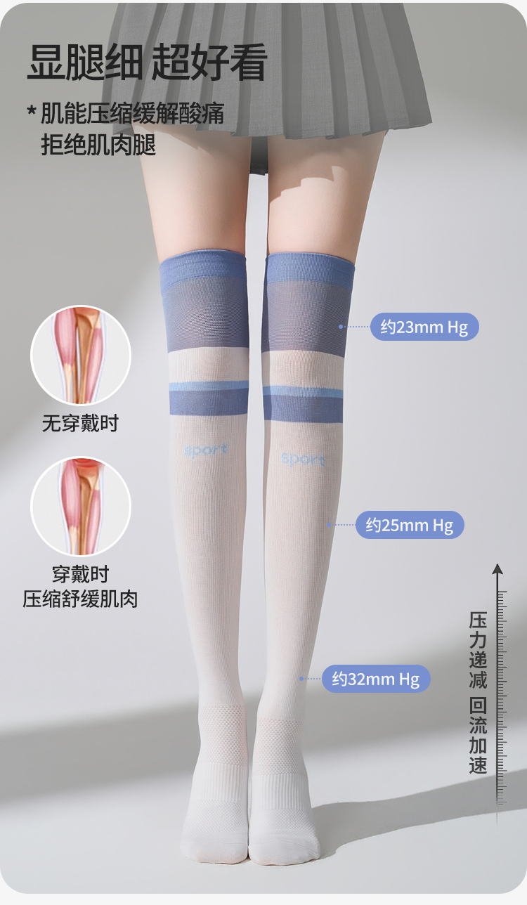 秋冬運動壓力襪健身跳繩登山騎行專業網球襪跑步小腿襪過膝長筒襪